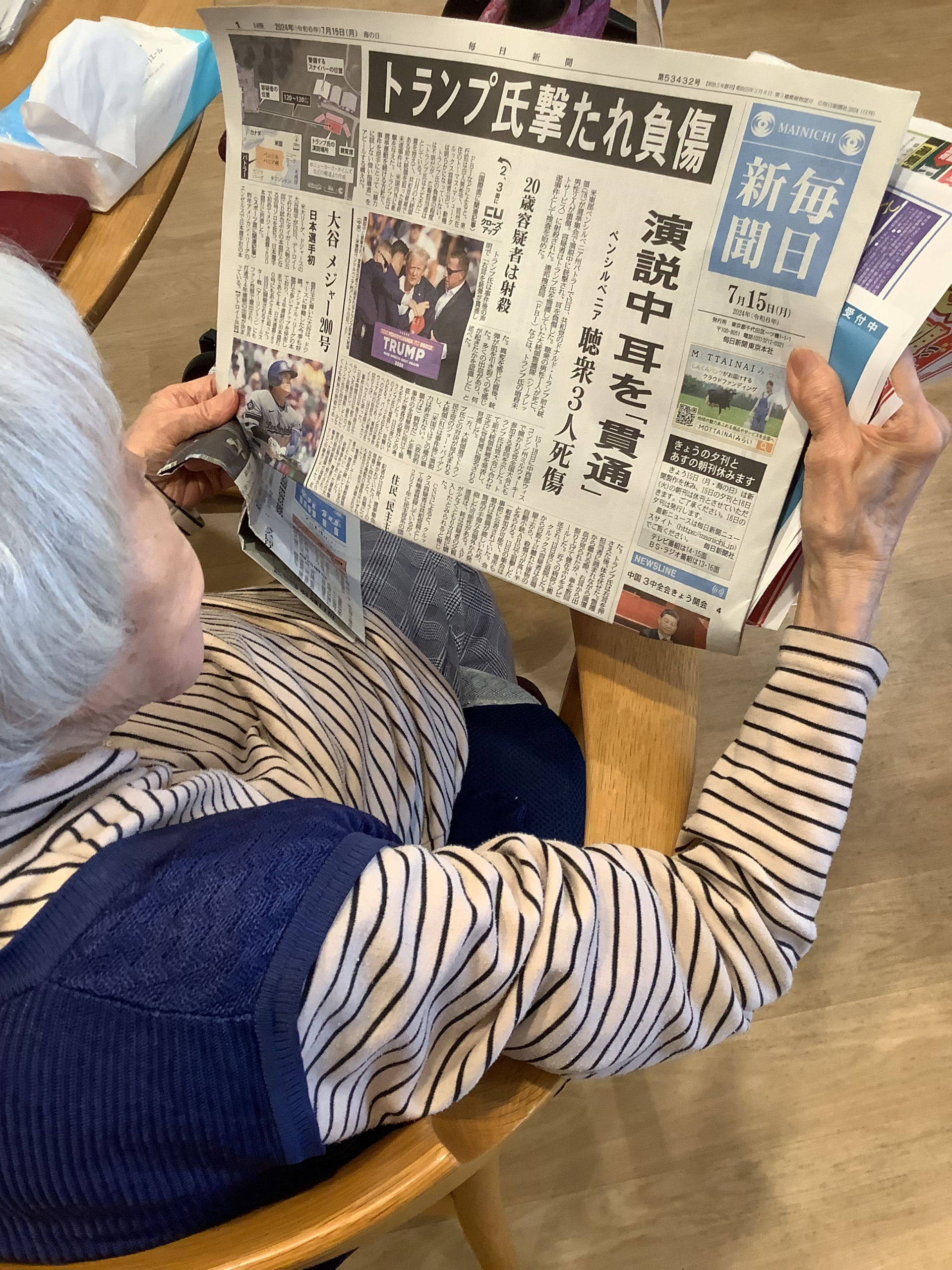 2024.07.17 活動報告 ☆WEST☆ 気になるようです Tweet シェアする アメリカのトランプの記事が気になるようです。 「よくあんな遠い所から狙ったね」「大事にいたらなくて良かった」と・・M様 世の中の情勢を気になるM様でした(*^_^*) GH小日向 きむら 前の記事 2024.07.17 活動報告 ☆WEST☆ また来年(^O^)/ 次の記事 2024.07.17 活動報告 ☆WEST☆ 何気ない日々 一覧へ戻る