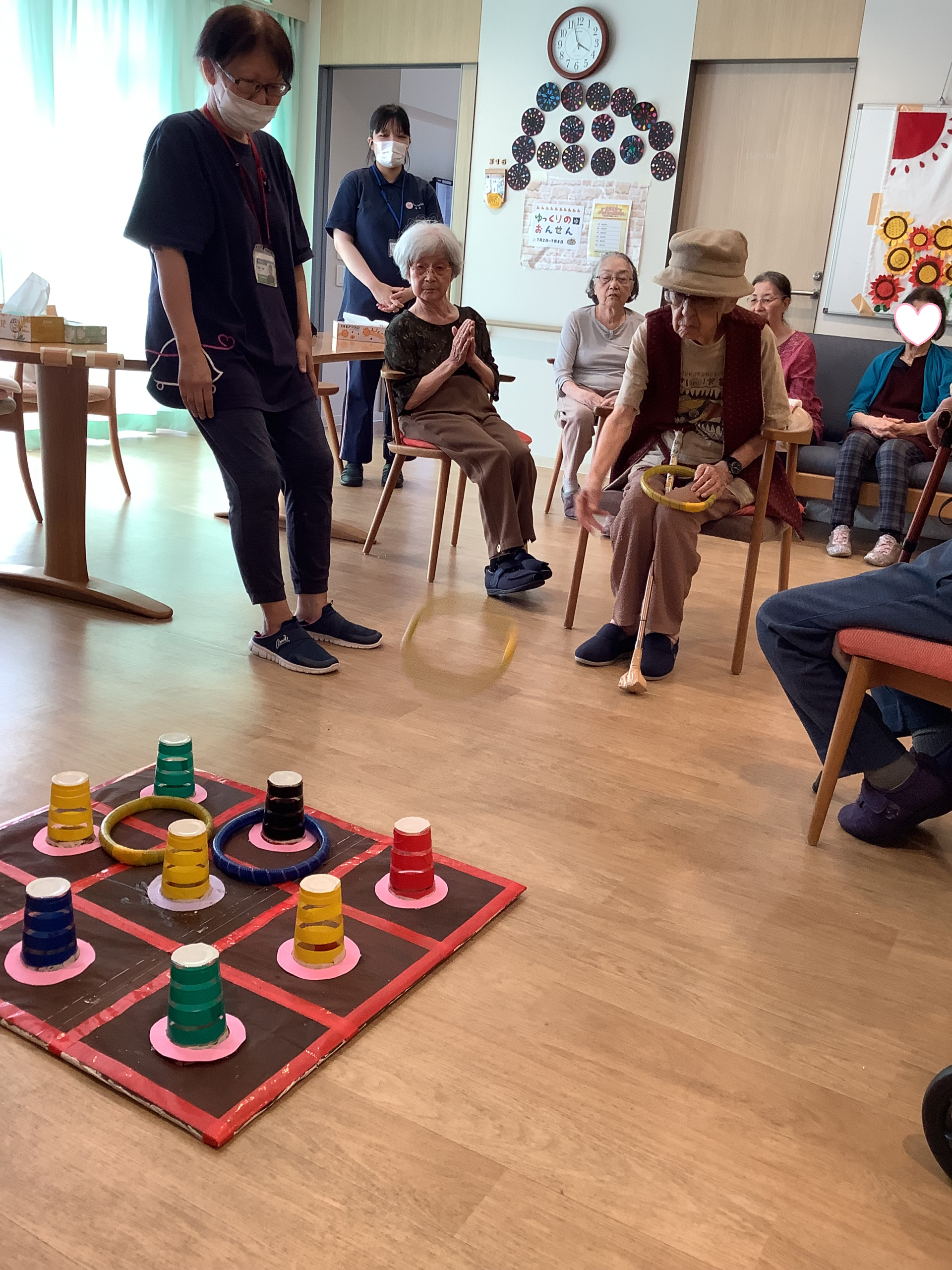 2024.07.18 活動報告 ☆彡WEST☆彡輪投げ Tweet シェアする 梅雨が明けましたね。暑くなります。今日はフロアーでレクレーションです。 輪投を行いましたが、皆様真剣。 今日もお元気でお過ごしです。今年の夏も元気に過ごしていきたいと思います。 秋羽 前の記事 2024.07.19 活動報告 (^0^)EAST 食器洗い!! 次の記事 2024.07.18 活動報告 ☆WEST☆ 習字② 一覧へ戻る