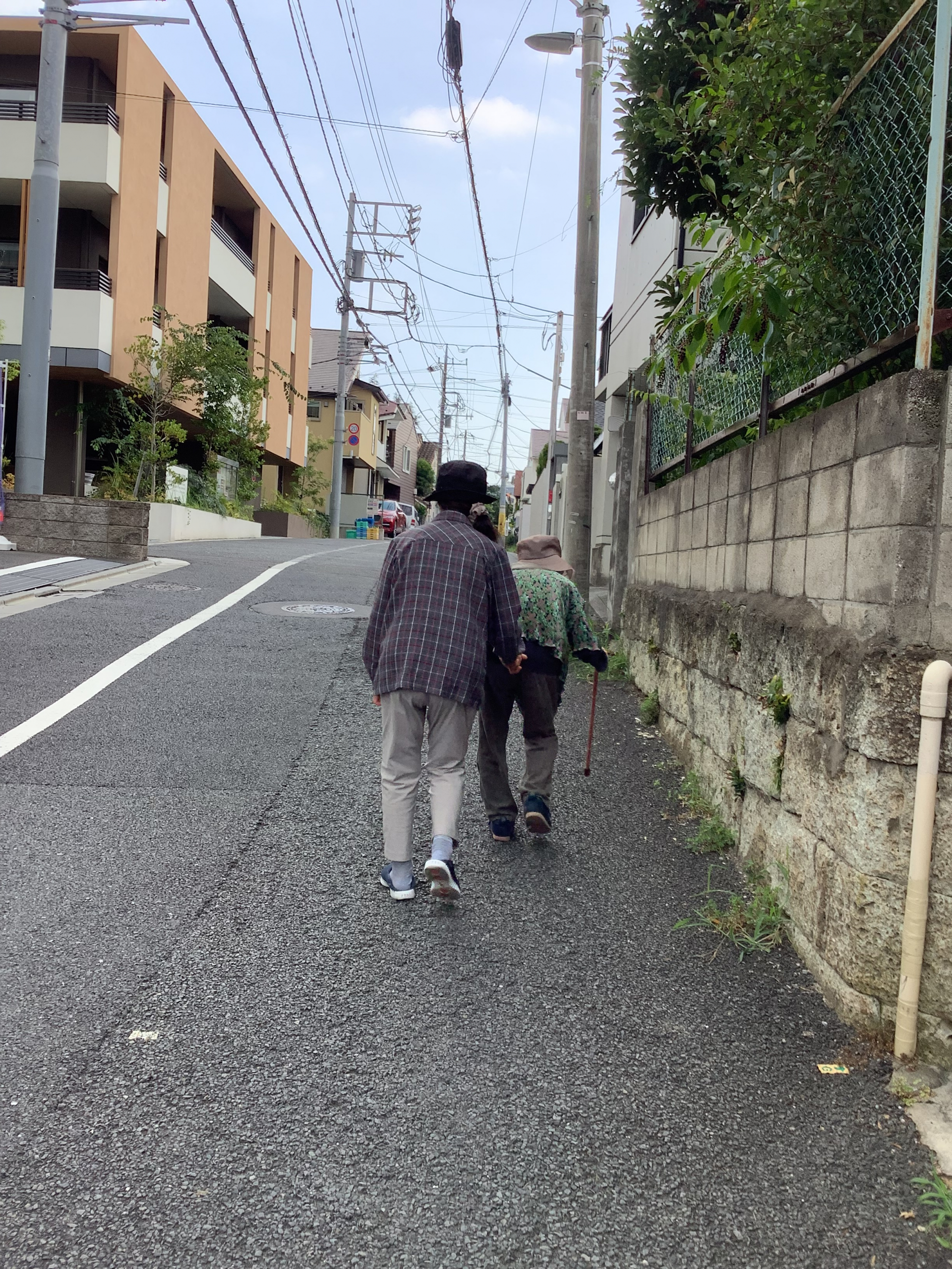 急な坂も何のその、職員の方が必死です。 小日向GH 秋羽