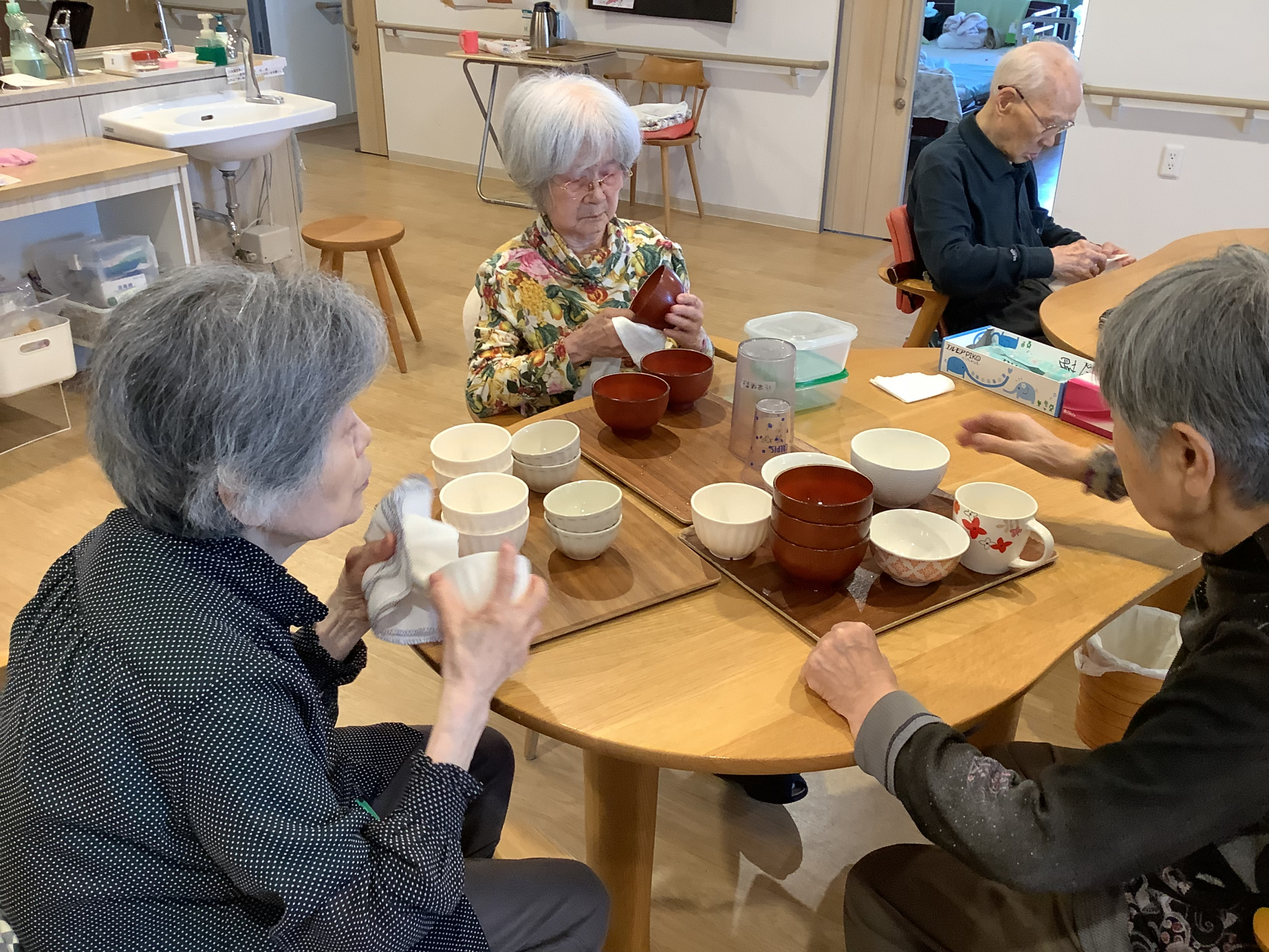 朝食後の食器拭き。。朝からありがとうございます
