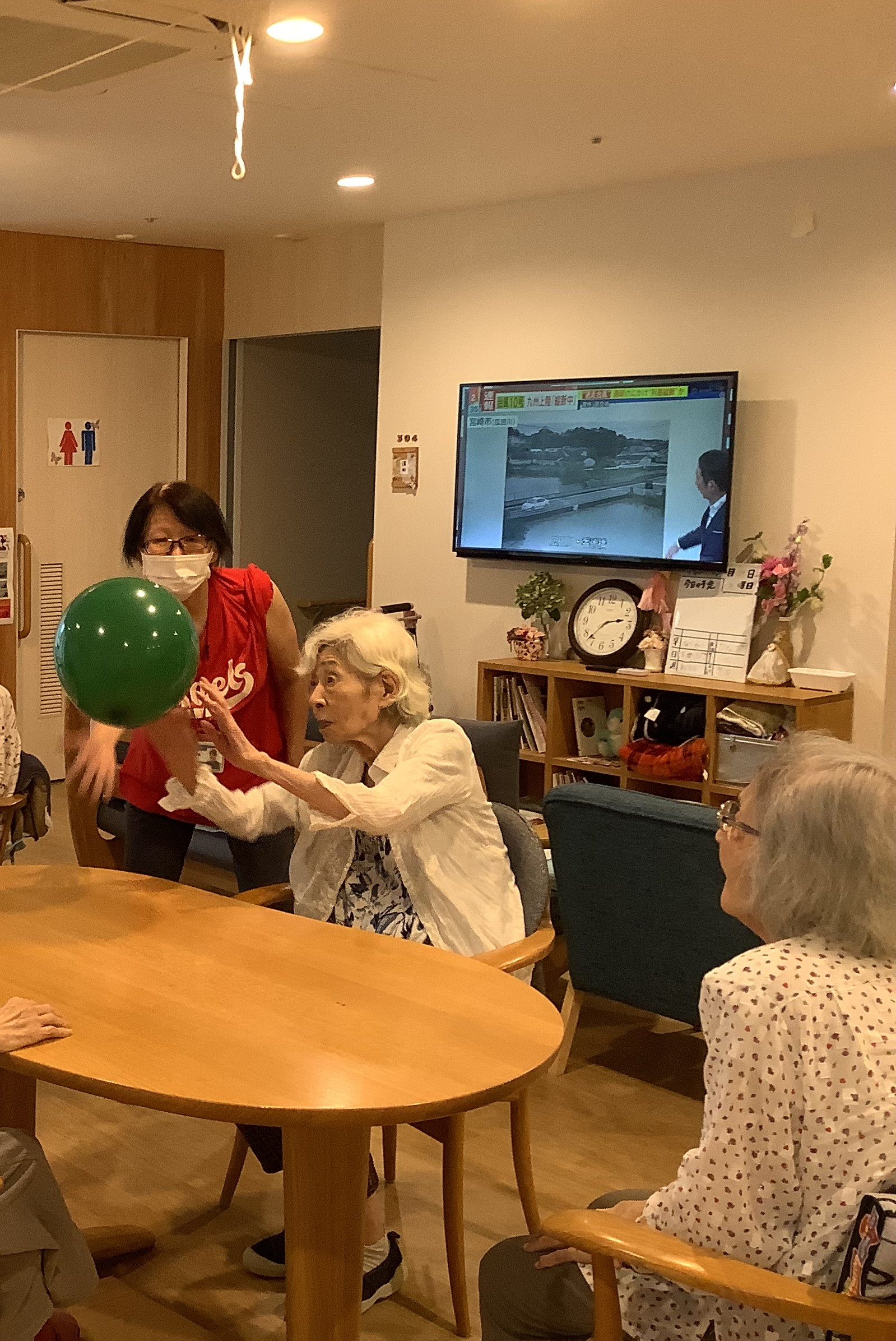 2024.08.29 活動報告 ☆彡風船バレー☆彡 EAST Tweet シェアする 体操後、体を動かしました。風船バレー、皆様お上手。ヘディングする方もおられました((´∀`) 今日も頑張りました。 小日向GH 秋羽 前の記事 2024.08.30 活動報告 ☆彡101歳の推し☆彡 WEST 次の記事 2024.08.29 活動報告 ☆彡お手伝い☆彡 EAST 一覧へ戻る