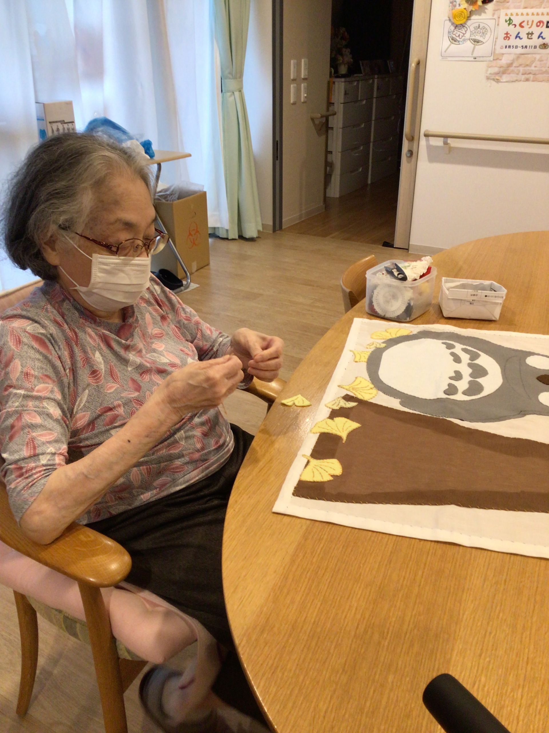 丁寧に丁寧に縫ってくださいました。秋の壁面が終了しましたので、次は冬の壁面飾りに取り掛かります。