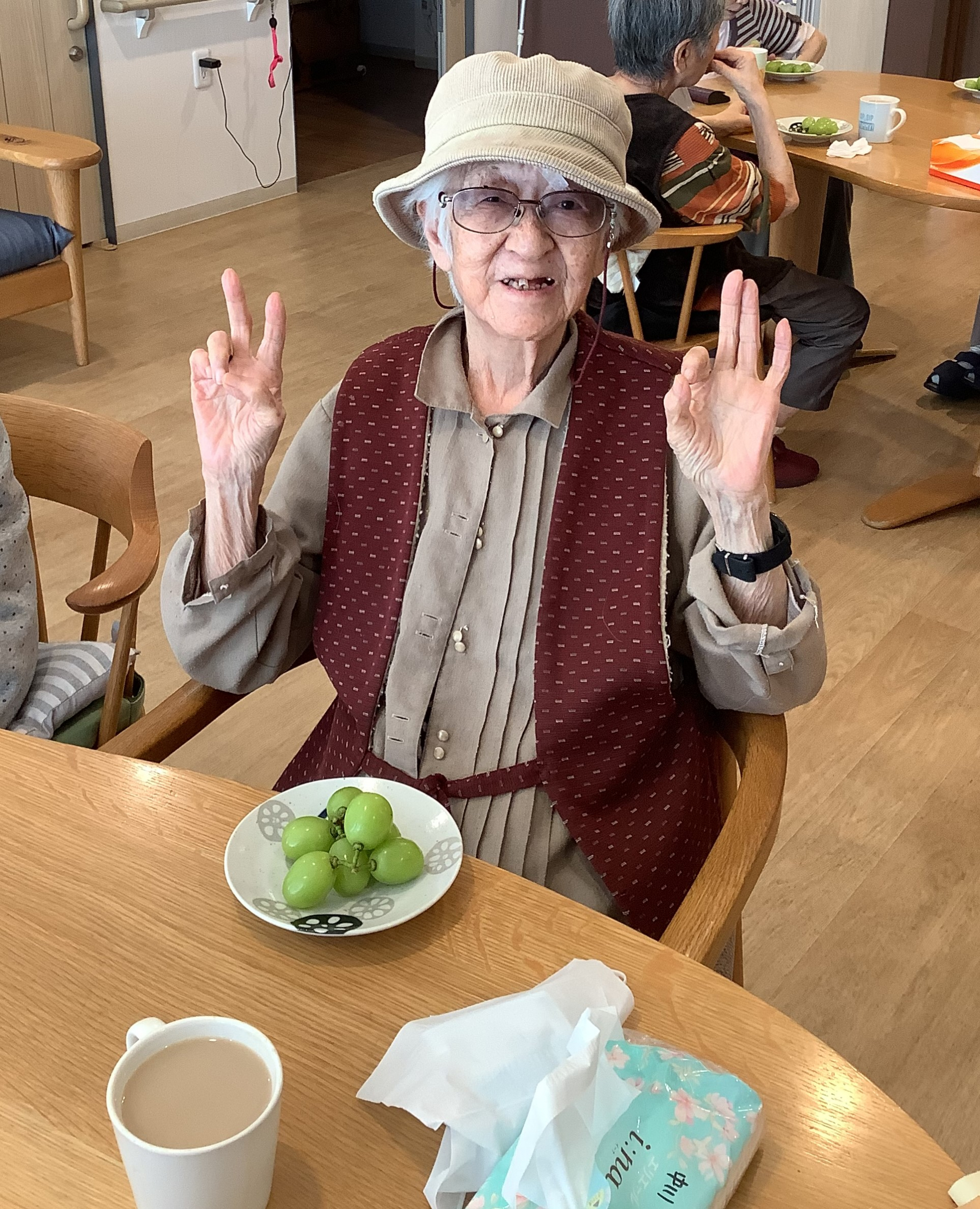 本日 隣の部屋からⅠ様家族より送ったシャインマスカットを頂きま取いた。