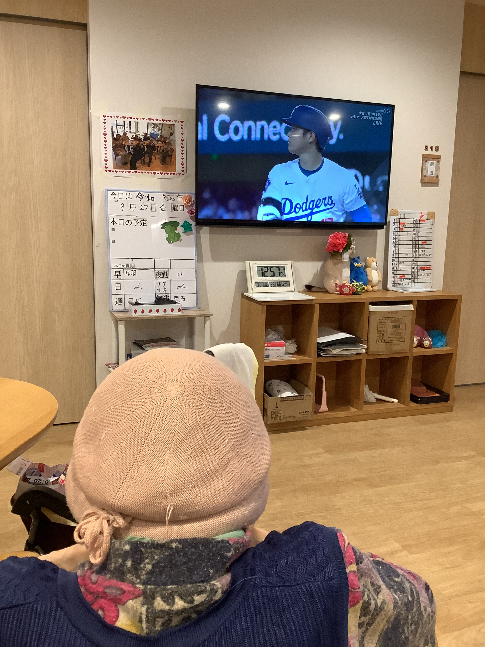 M様は今日も頂上決戦を集中してみています。優勝が決まり二人で大喜び。