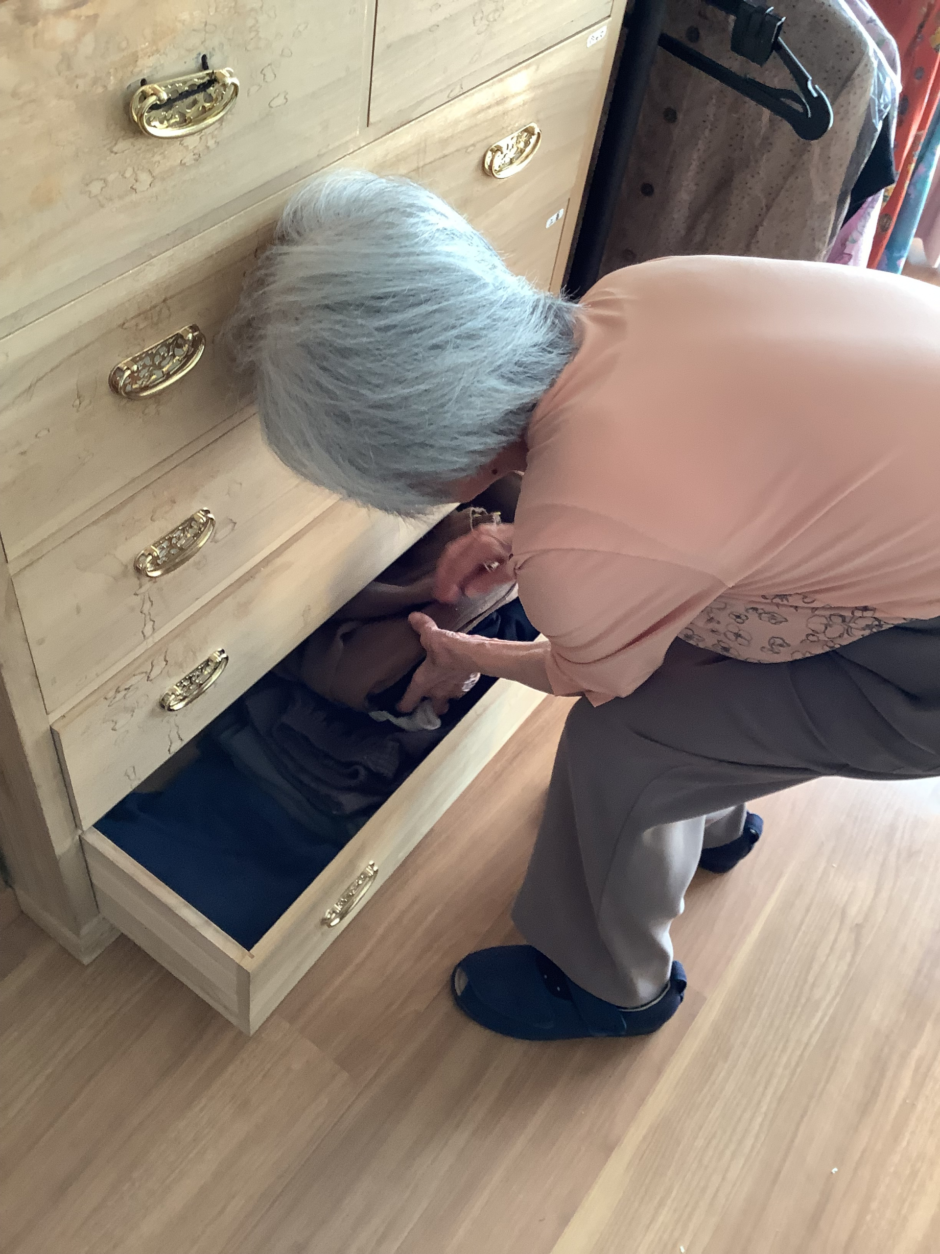 2024.10.26 活動報告 ☆WEST☆ 畳んだ後は・・ Tweet シェアする 洗濯物を畳んだ後は自分の衣類は居室へ。。 パジャマやズボンなど同じ場所にしまいます。 洗濯物をしまうのも毎日の習慣です(*^^*) GH小日向 きむら 前の記事 2024.10.26 活動報告 ☆WEST☆ フクロウの吊るし① 次の記事 2024.10.25 活動報告 GH ボランティアによる落語会! 一覧へ戻る