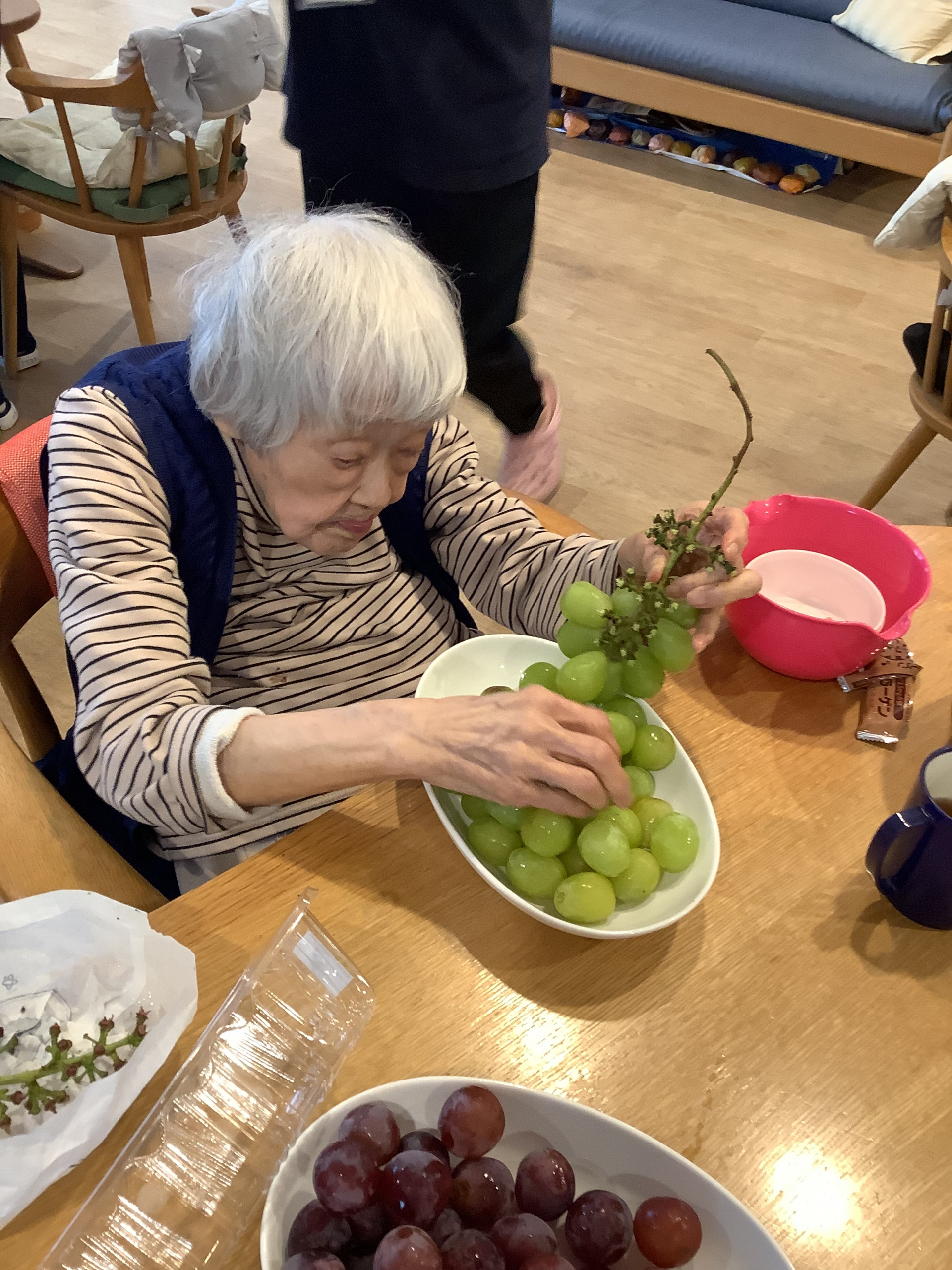 こちらのテーブルでは果物カットを・・りんご・梨・柿・メロン・巨峰・マスカット‼