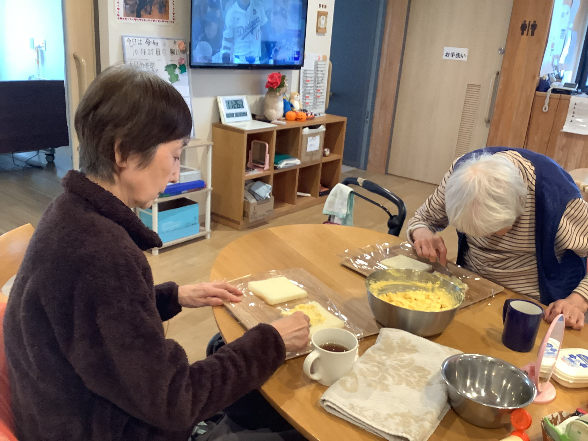 こちらのテーブルはでは玉子サンドを作ってます♬