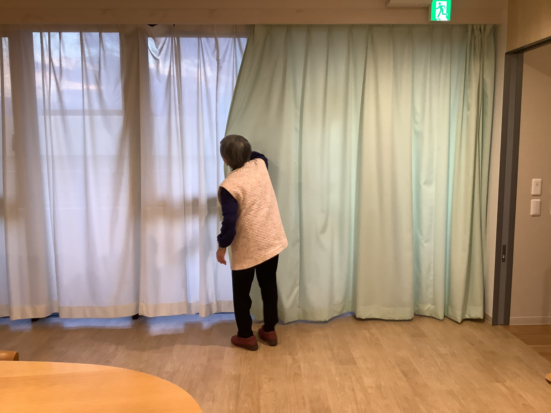 2024.11.07 活動報告 ☆WEST☆ カーテン Tweet シェアする 夕方になりそろそろカーテンを閉めましょう~ すき間がないようにしっかり閉めます ありがとうございます もうそろそろ夕ご飯になりますよ~ GH小日向 きむら 前の記事 2024.11.08 活動報告 ☆彡今日のおやつは煮りんご☆彡 WEST 次の記事 2024.11.07 活動報告 ☆WEST☆ 脳の体操 一覧へ戻る