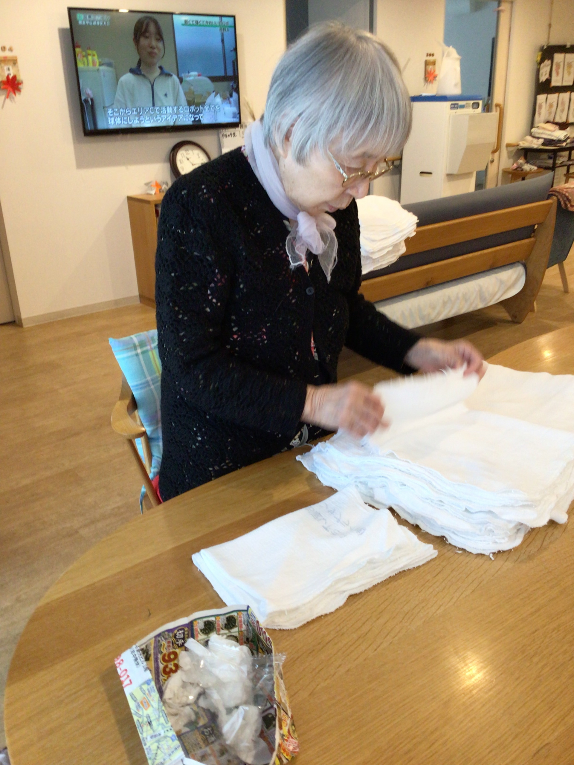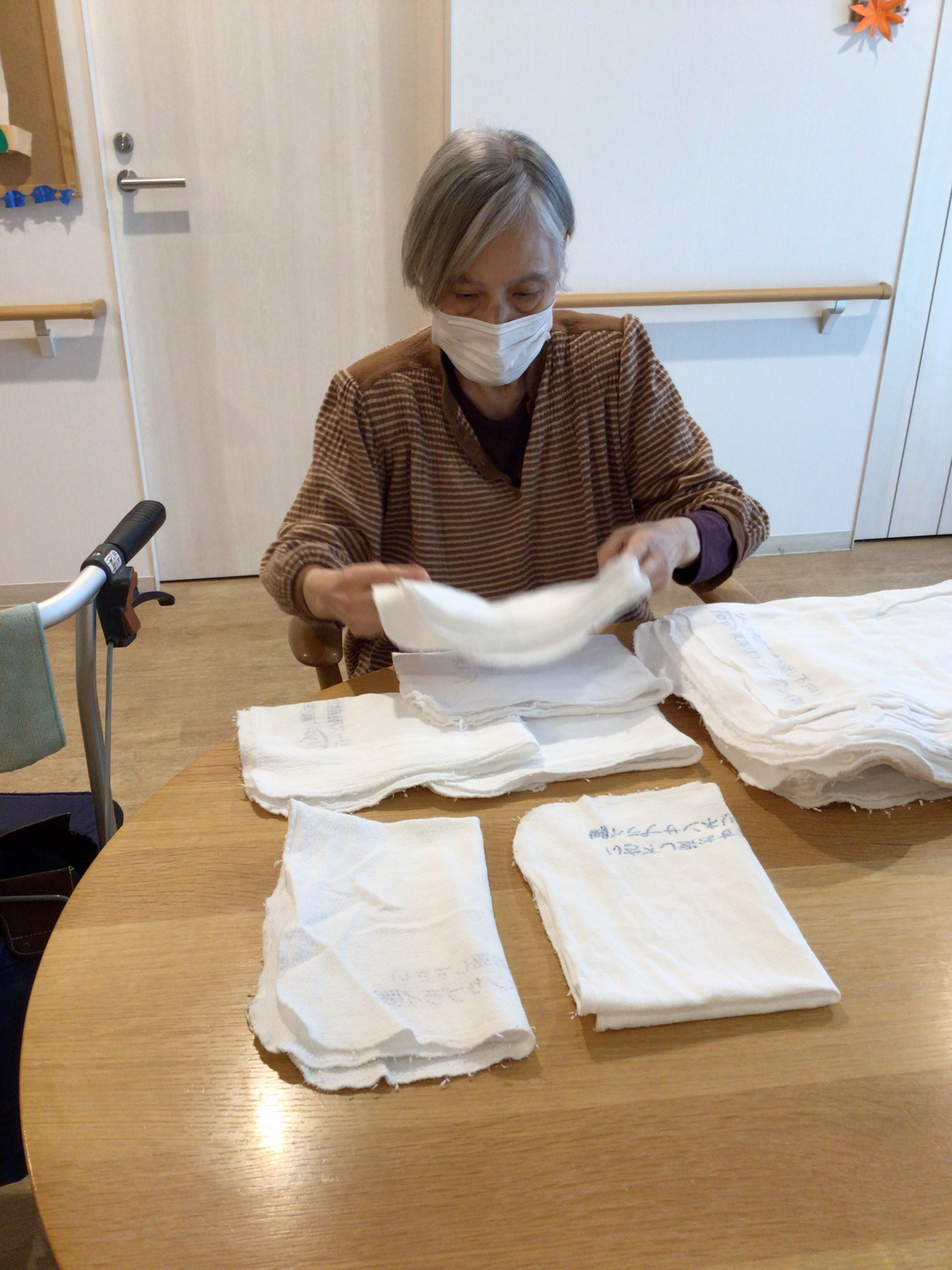 朝の体操をした後タオルを畳んで頂きました!