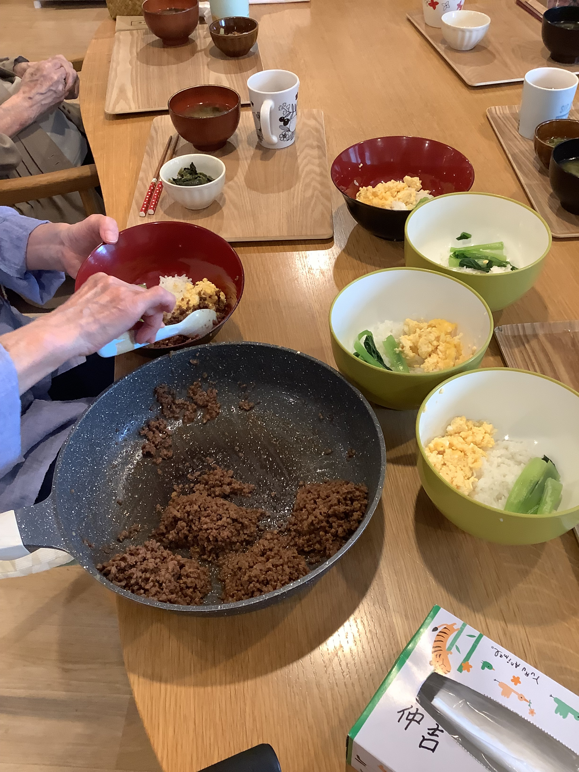 2024.11.14 活動報告 ☆彡WEST☆彡 昼食は三食丼 Tweet シェアする そぼろに玉子、小松菜の三食丼です。美味しいと好評でした。 小日向GH 秋羽 前の記事 2024.11.14 活動報告 ☆彡スイートポテト作り☆彡 WEST 次の記事 2024.11.13 活動報告 昼休みの時間 一覧へ戻る