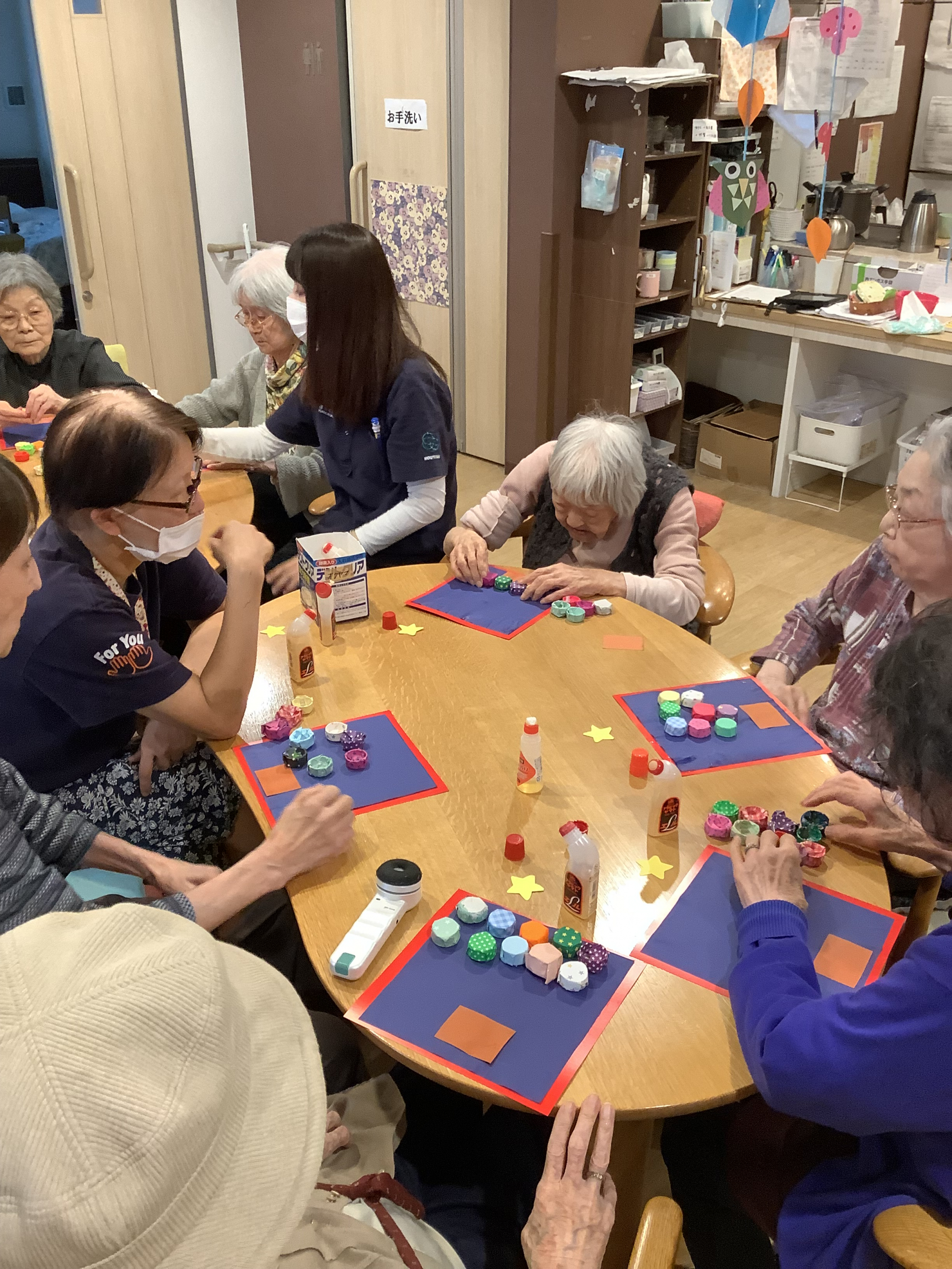 2024.11.17 活動報告 ☆WEST☆ クリスマスの壁飾り① Tweet シェアする 居室に飾るクリスマスの壁飾りを制作をします。 ペットボトルの蓋を使って。。好きな色を選びます(*^^*) 細かい作業ですが丁寧に作業されています。 GH小日向 きむら 前の記事 2024.11.17 活動報告 ☆WEST☆ クリスマスの壁飾り② 次の記事 2024.11.17 活動報告 ☆WEST☆ 大谷選手に夢中 一覧へ戻る