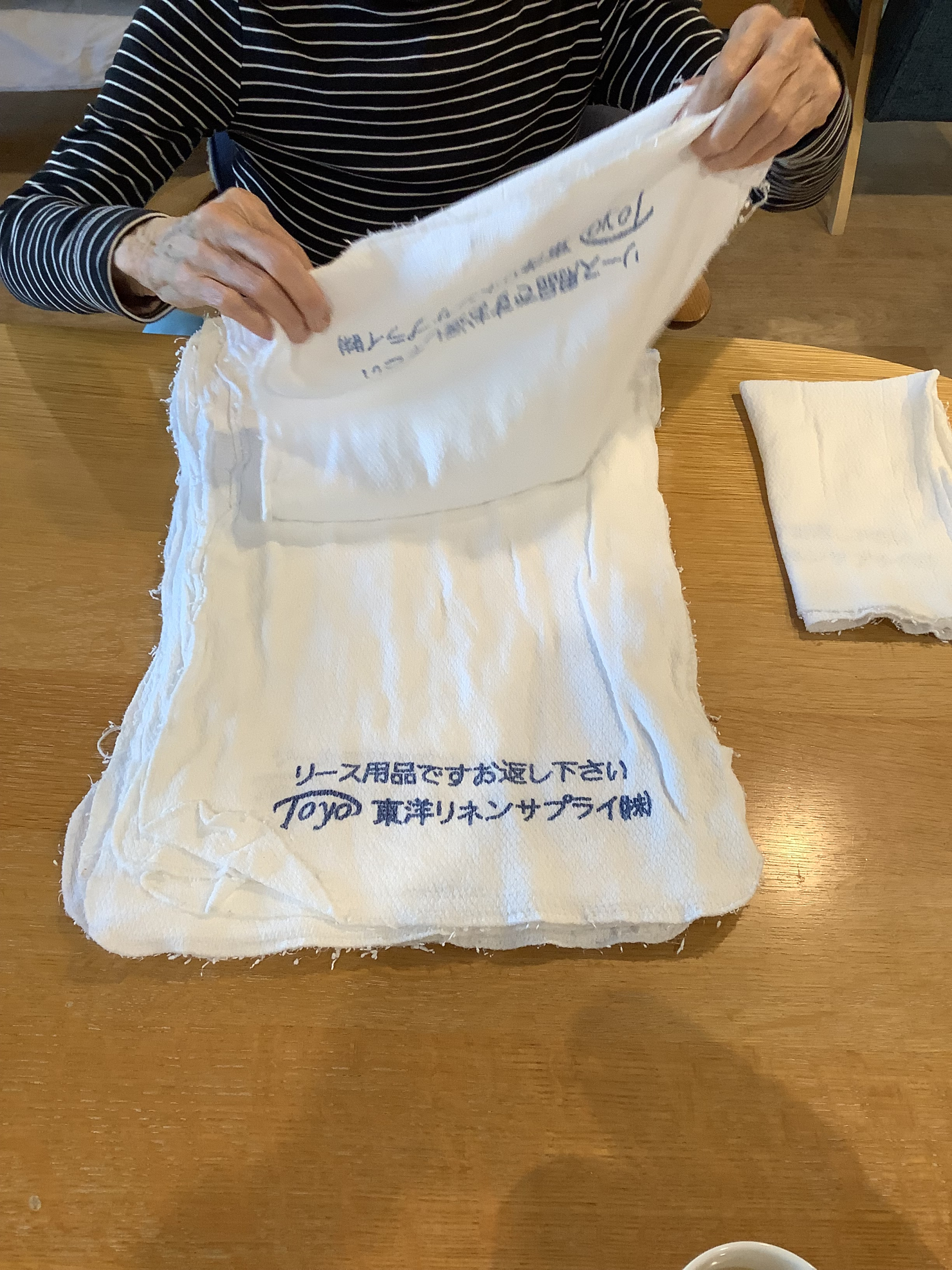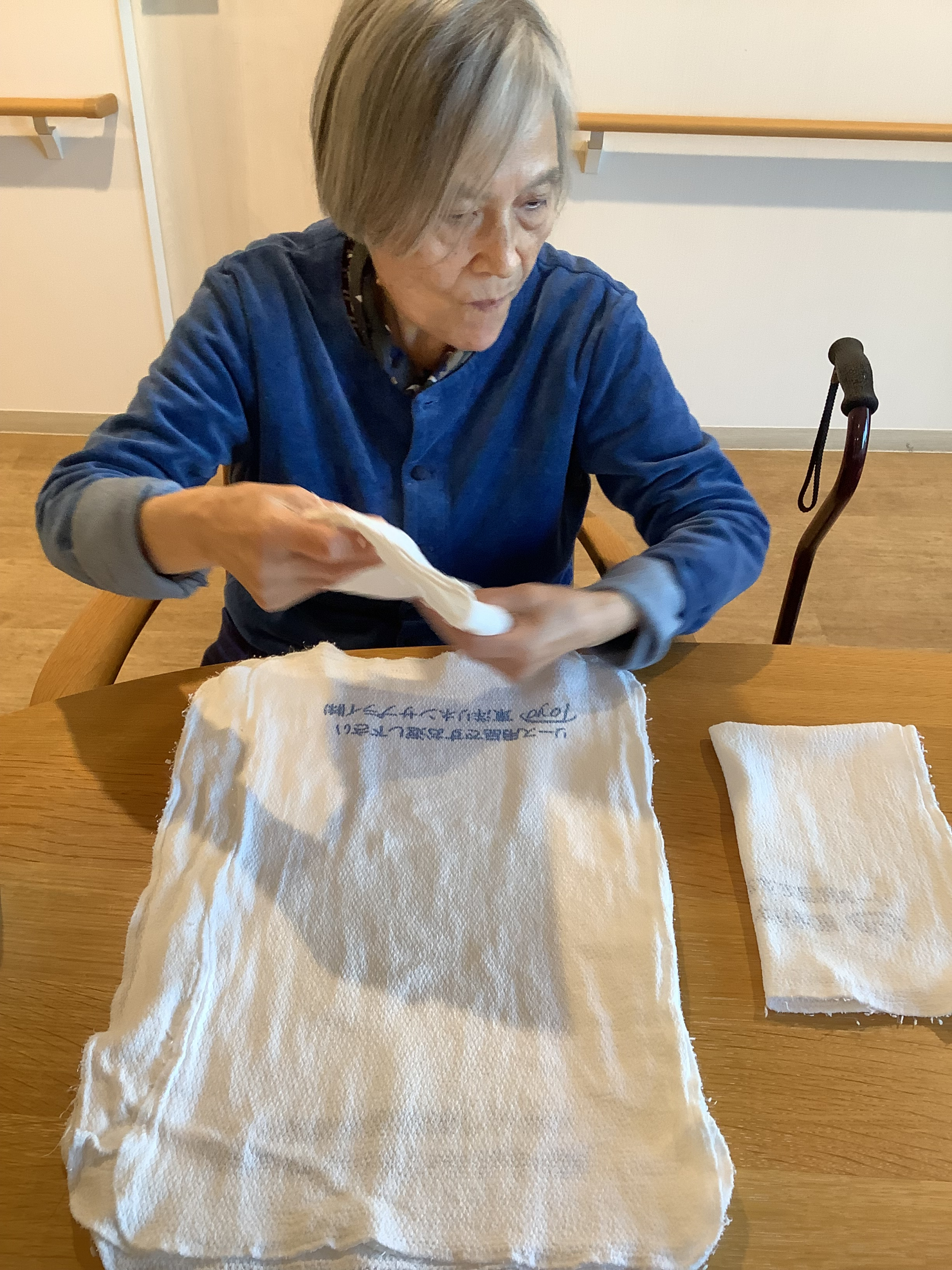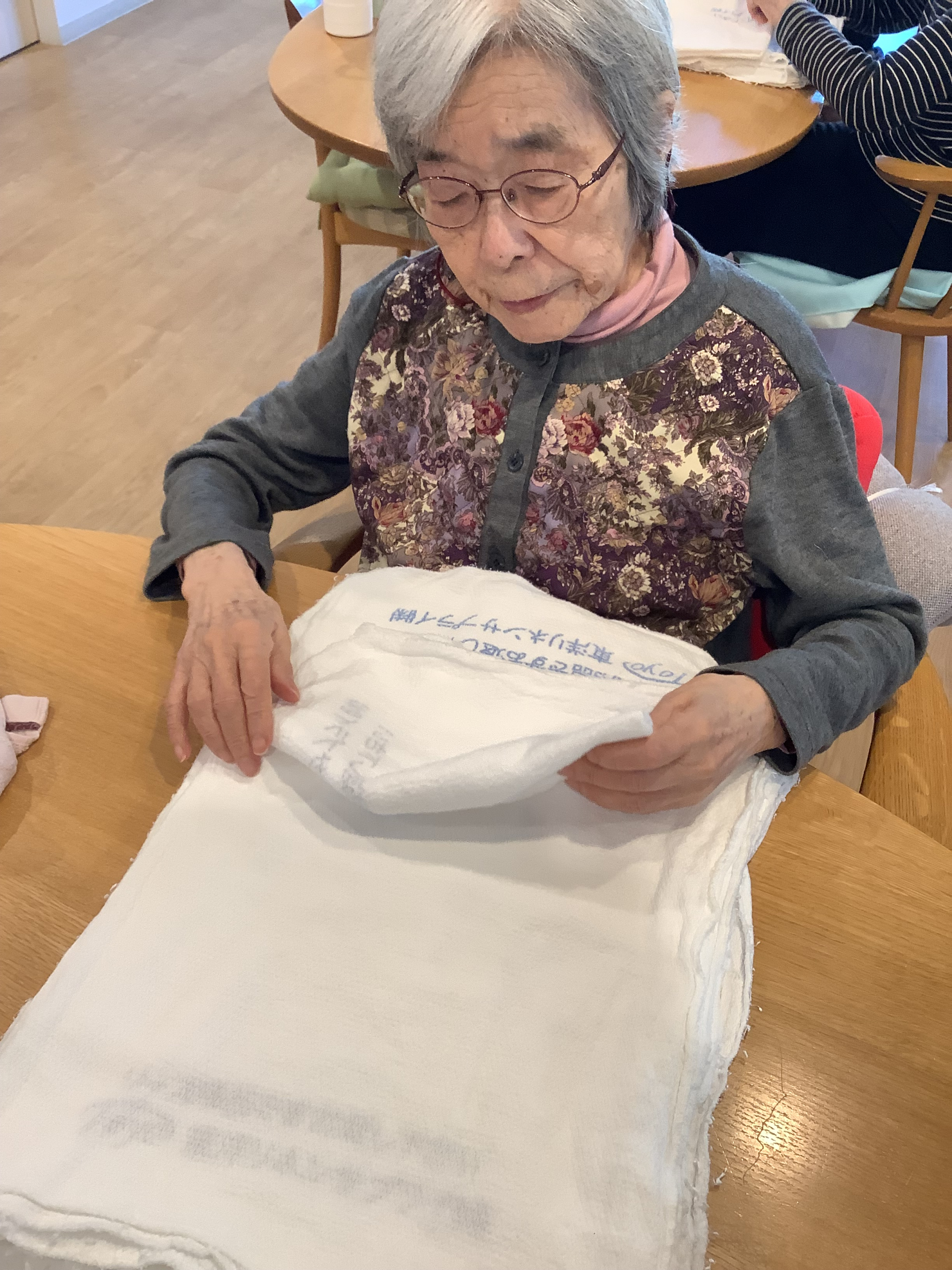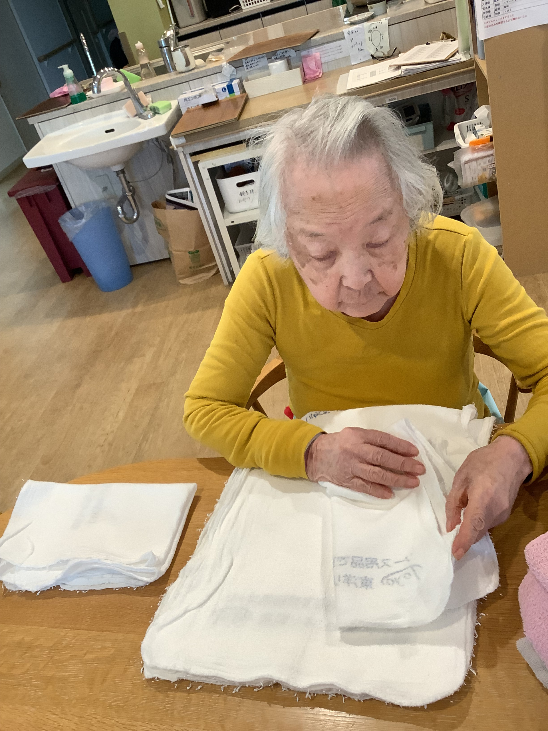 F様とY様はタオルを畳む時に楽しい事をお話しされている、、