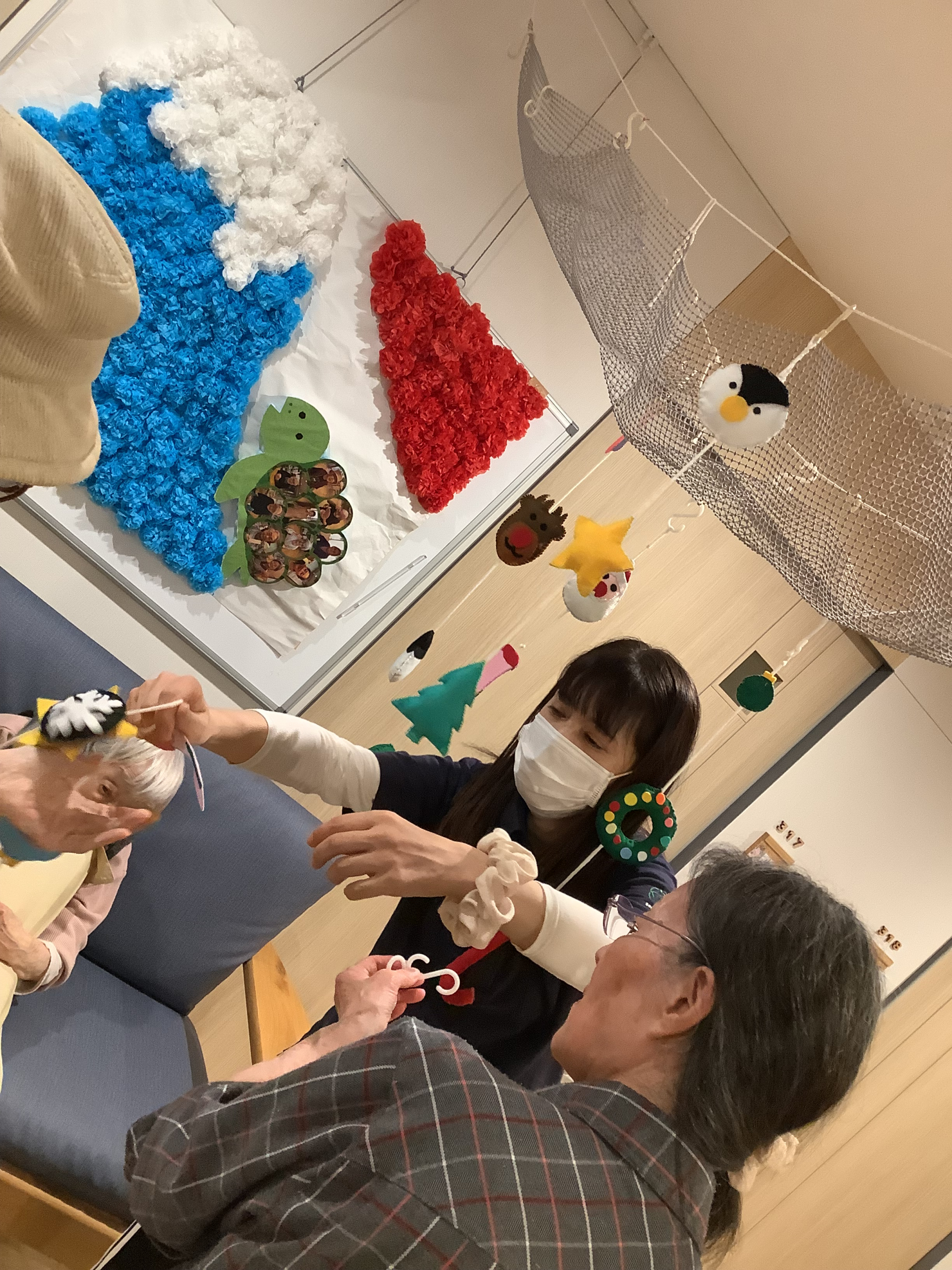 2024.11.23 活動報告 ☆WEST☆ クリスマスの吊るし Tweet シェアする クリスマスツリーを飾りの次は・・ 手作りクリスマスの吊るしを飾りましょう(#^^#) ほし フェルトでとても温かみがあります。。 「可愛いね」とM様。暫く見ておられました☆ GH小日向 きむら 前の記事 2024.11.23 活動報告 ☆WEST☆ 入浴準備♬ 次の記事 2024.11.23 活動報告 ☆WEST☆ クリスマスツリー② 一覧へ戻る