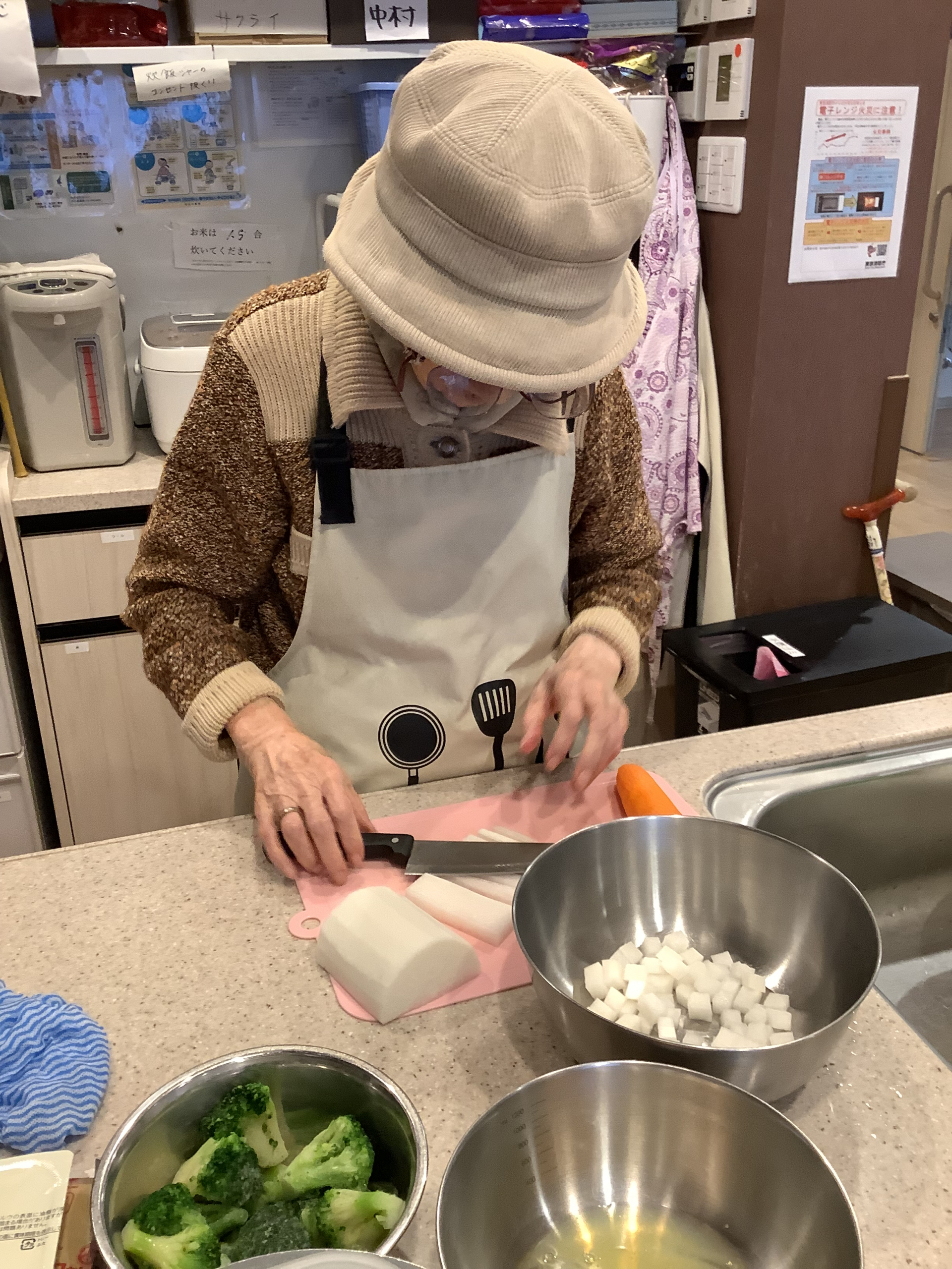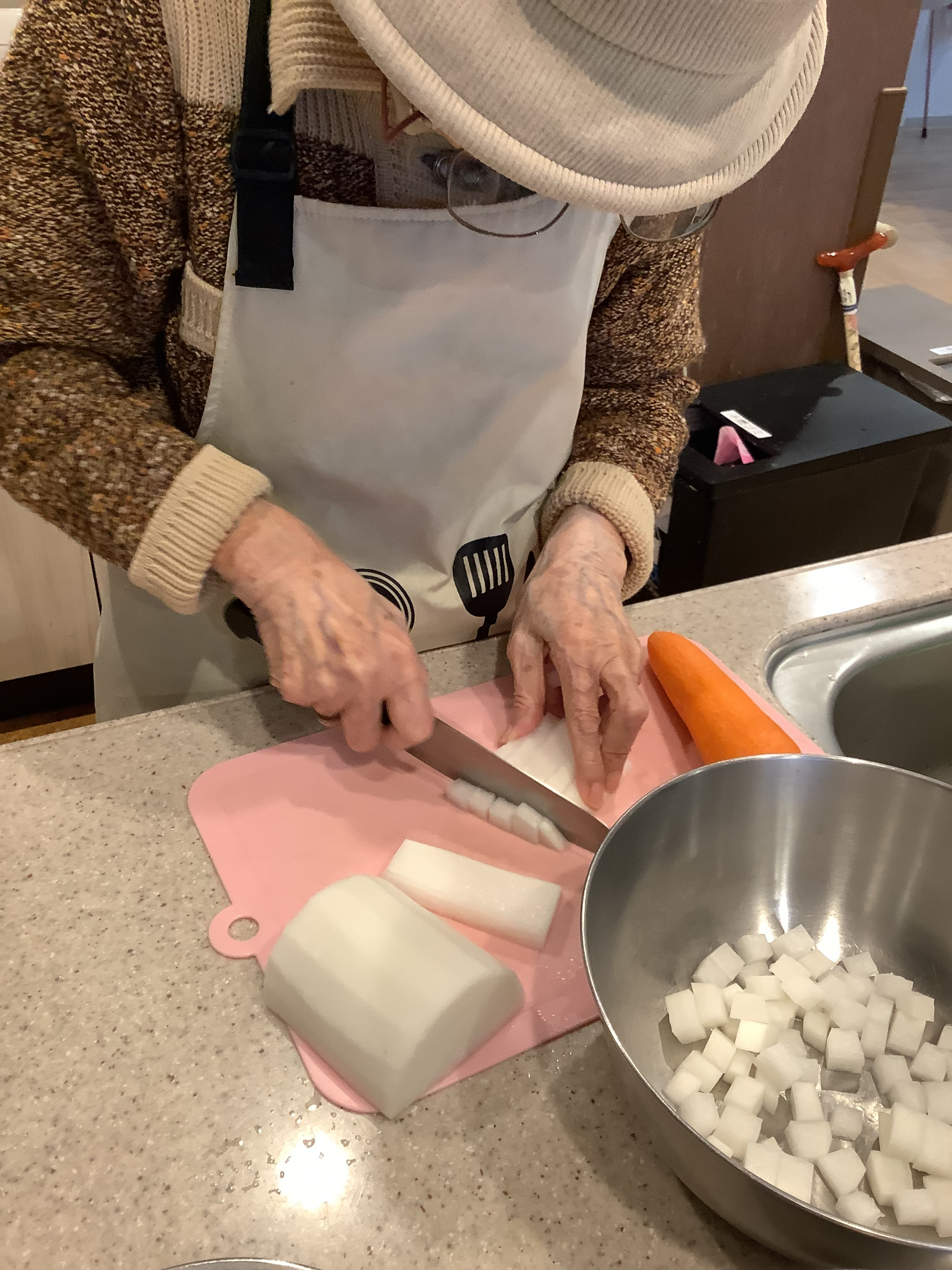 2024.12.19 活動報告 ☆WEST☆ 今日のランチ担当 Tweet シェアする 本日のランチ担当はN様。。 エプロンをつけて料理開始です! 大根をサイコロ状に切って・・ 大根はスープに入れる予定です(#^^#) GH小日向 きむら 前の記事 2024.12.19 活動報告 ☆WEST☆ 日向ぼっこ 次の記事 2024.12.18 活動報告 本日のEAST 体操 一覧へ戻る