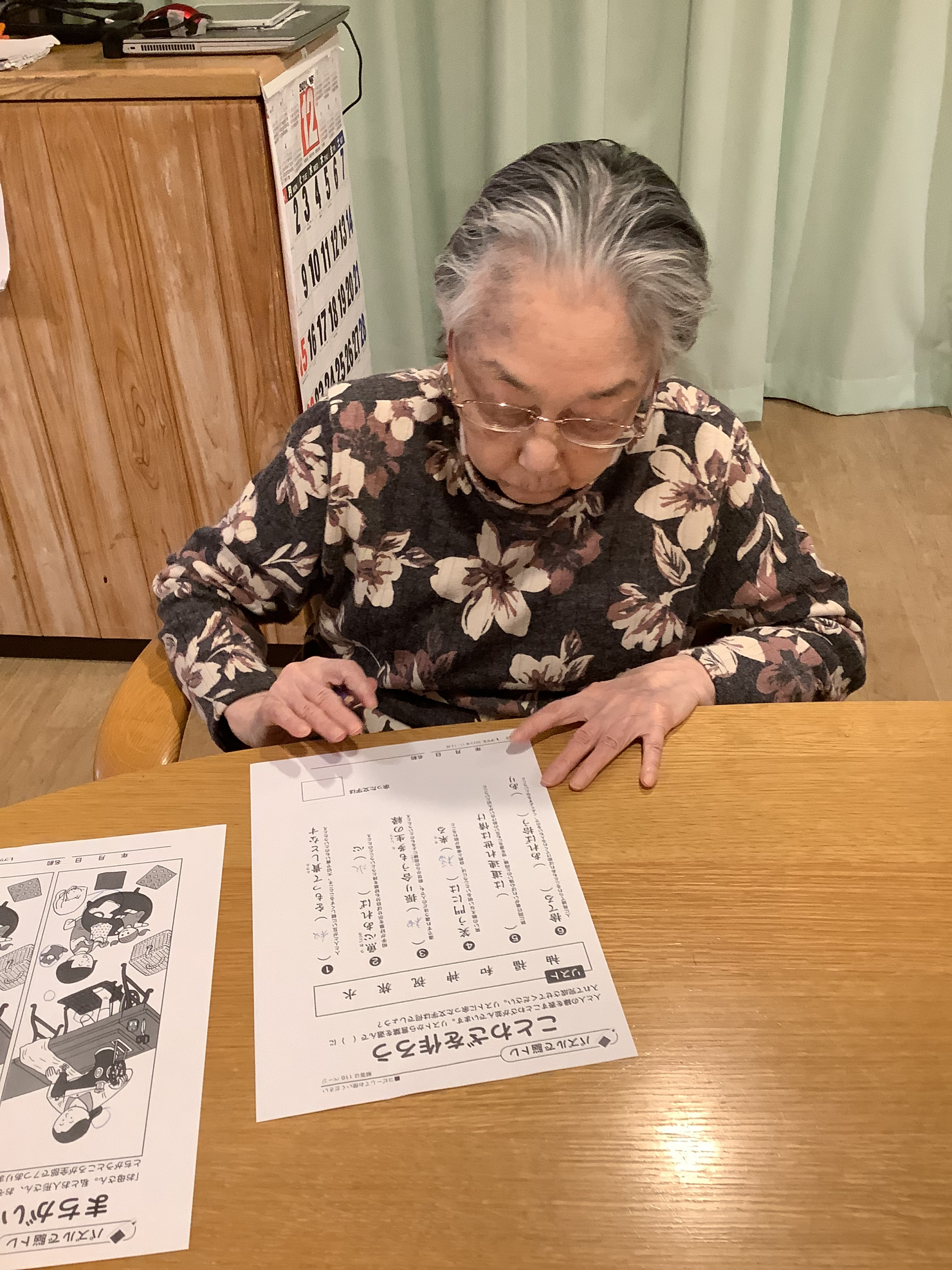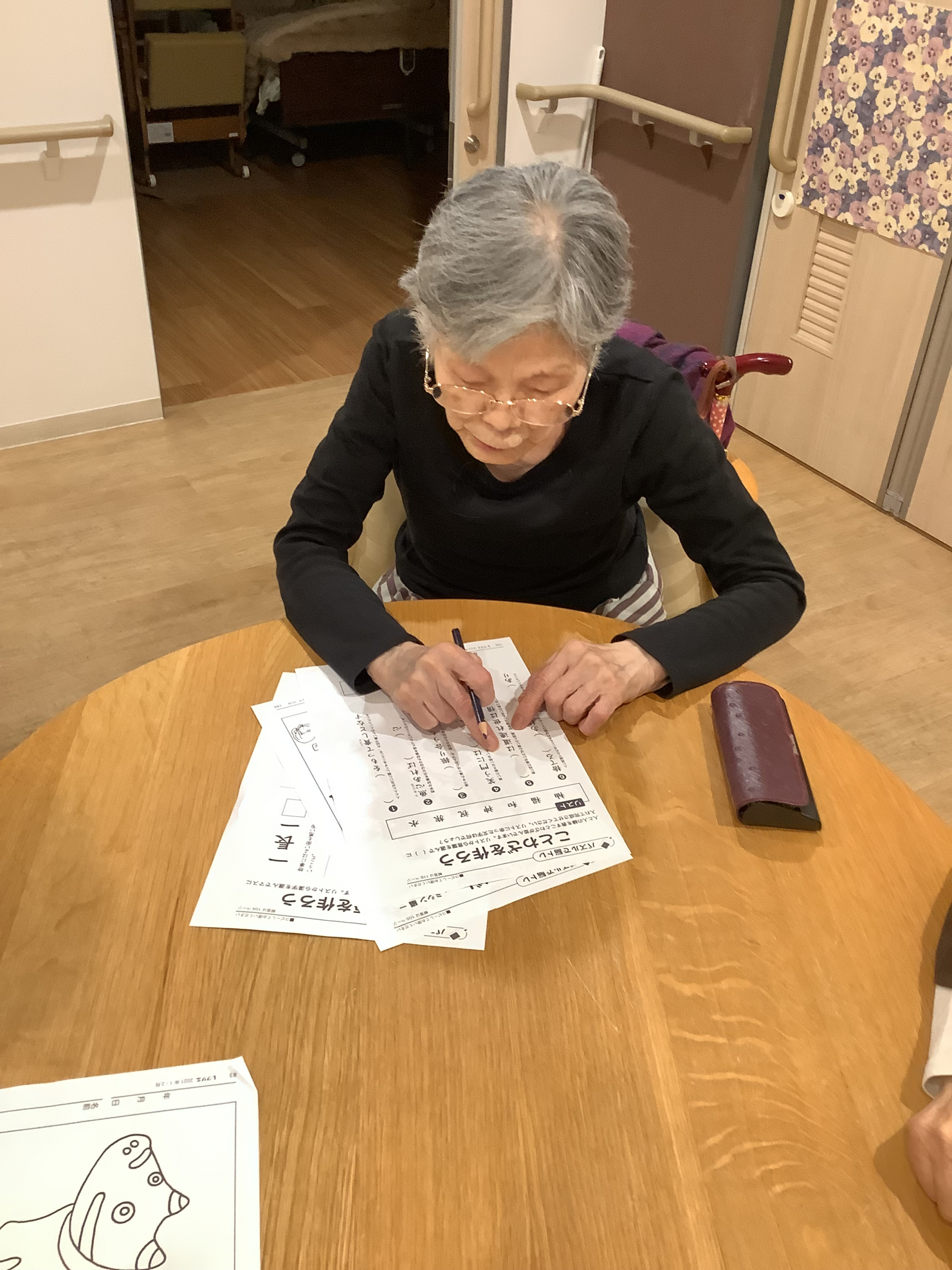 2024.12.26 活動報告 ☆WEST☆ 夕食前のひと時 Tweet シェアする 夕食前のご様子になります。 塗り絵を楽しまれる方・脳トレに挑戦されている方がいらっしゃいます。 N様は塗り絵を楽しまれています。 GH小日向 きむら 前の記事 2024.12.27 活動報告 本日のEAST 次の記事 2024.12.26 活動報告 本日のEAST 訪問美容 一覧へ戻る