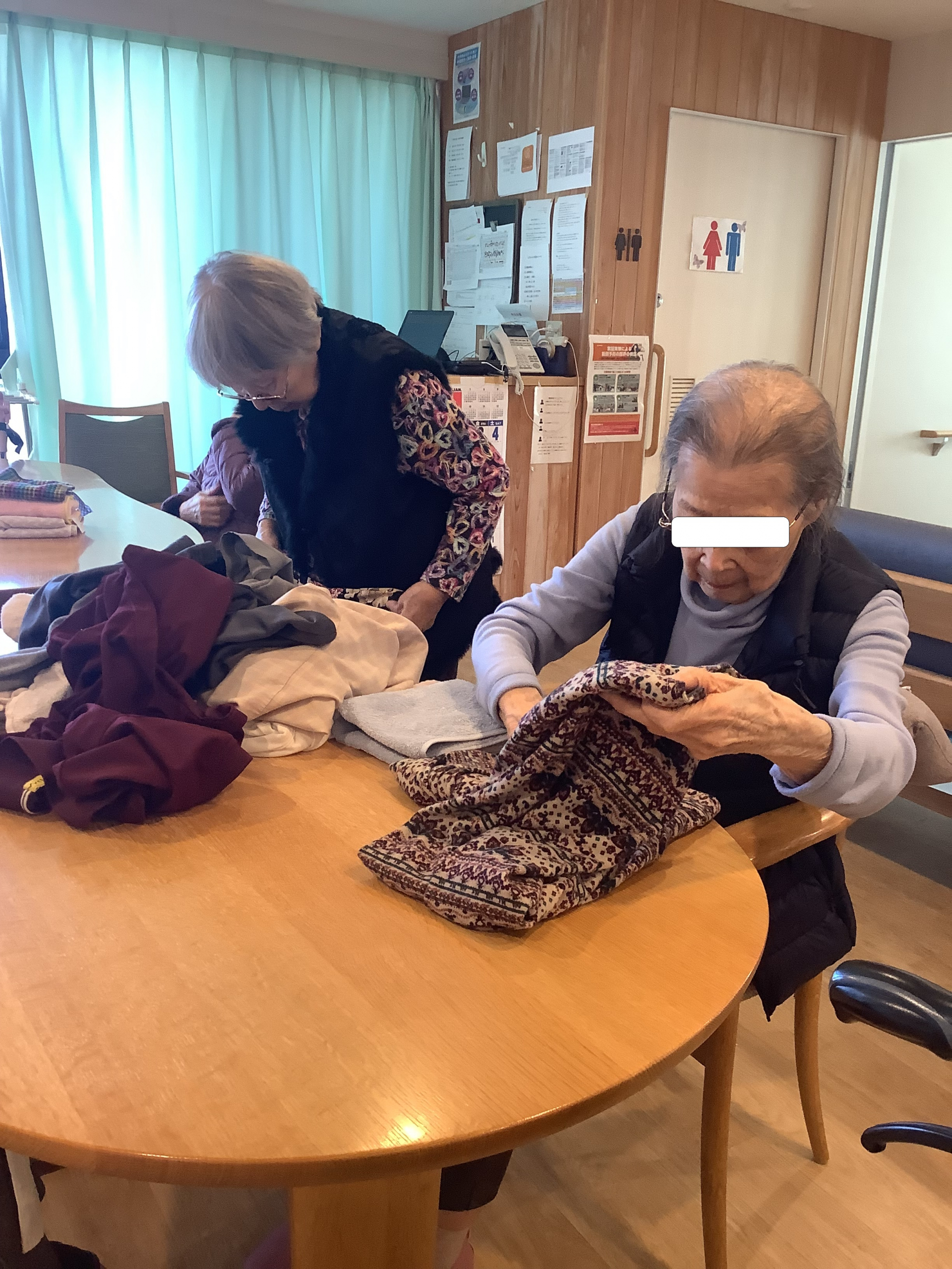 お茶の時間後少しタオルと洗濯物を畳んで頂きました!!