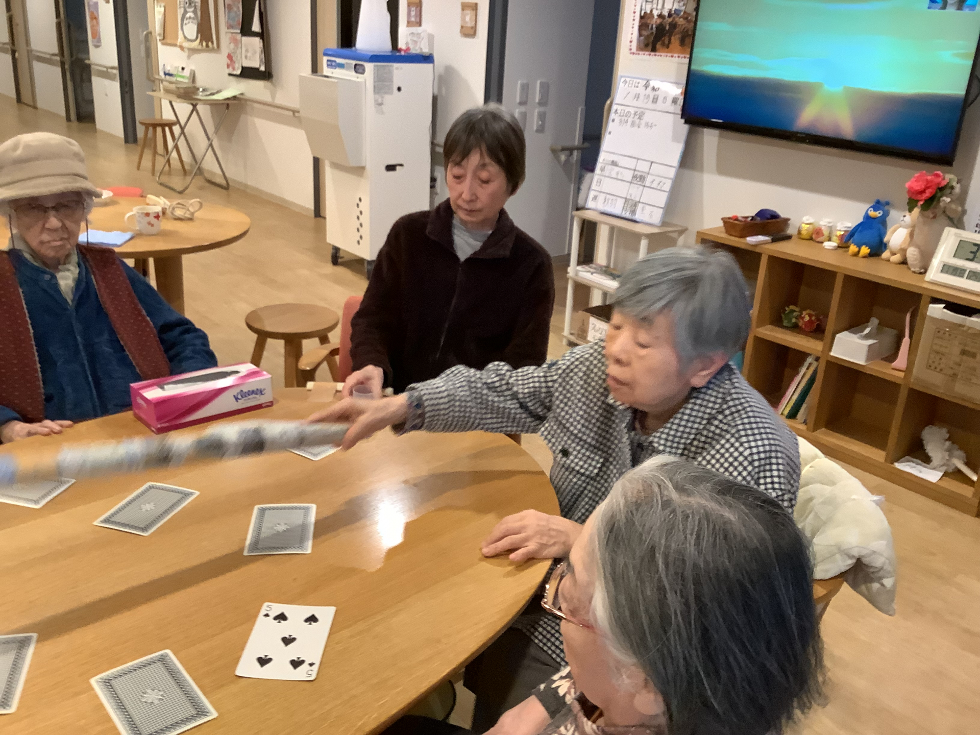 2025.01.19 活動報告 ☆彡WEST☆彡 Tweet シェアする ベランダ散歩 い 体操も熱心に。 今日は家事も多め。皆さんと協力して行います。 家事が終わったらトランプ遊び。 今日も楽しく過ごした1日でした。 小日向GH 秋羽 前の記事 2025.01.21 活動報告 お散歩 次の記事 2025.01.19 活動報告 手玉ターワバランスゲーム 一覧へ戻る