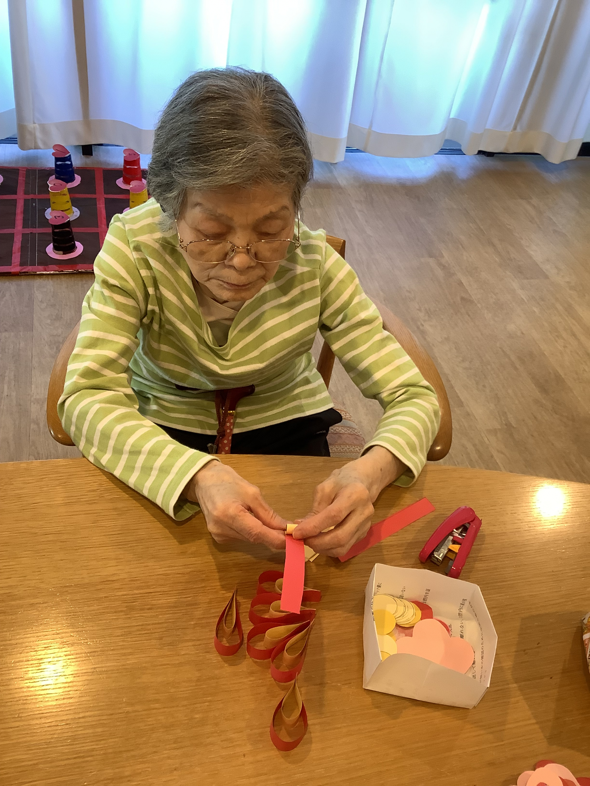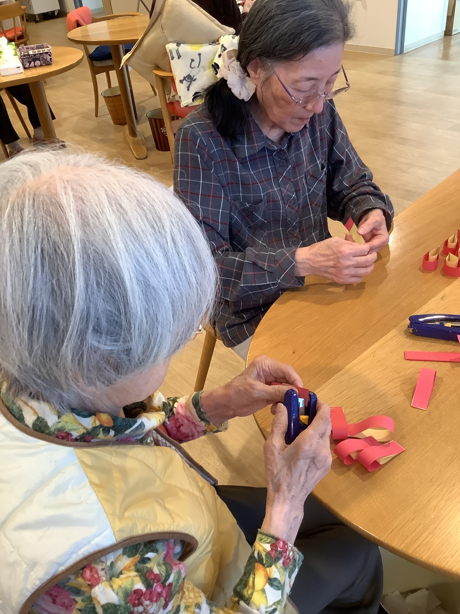 ホチキスを使い花びらを作製していきます。。