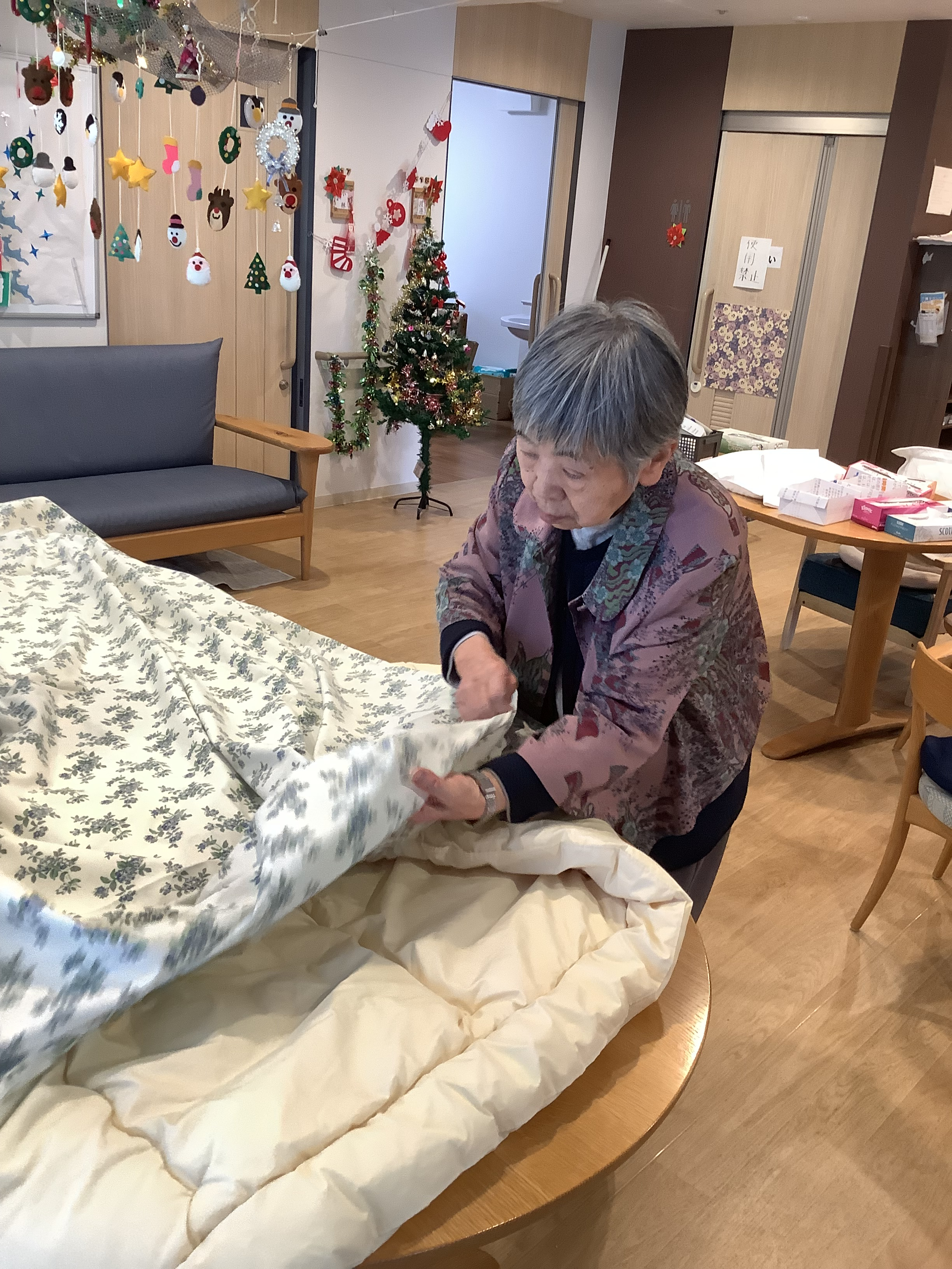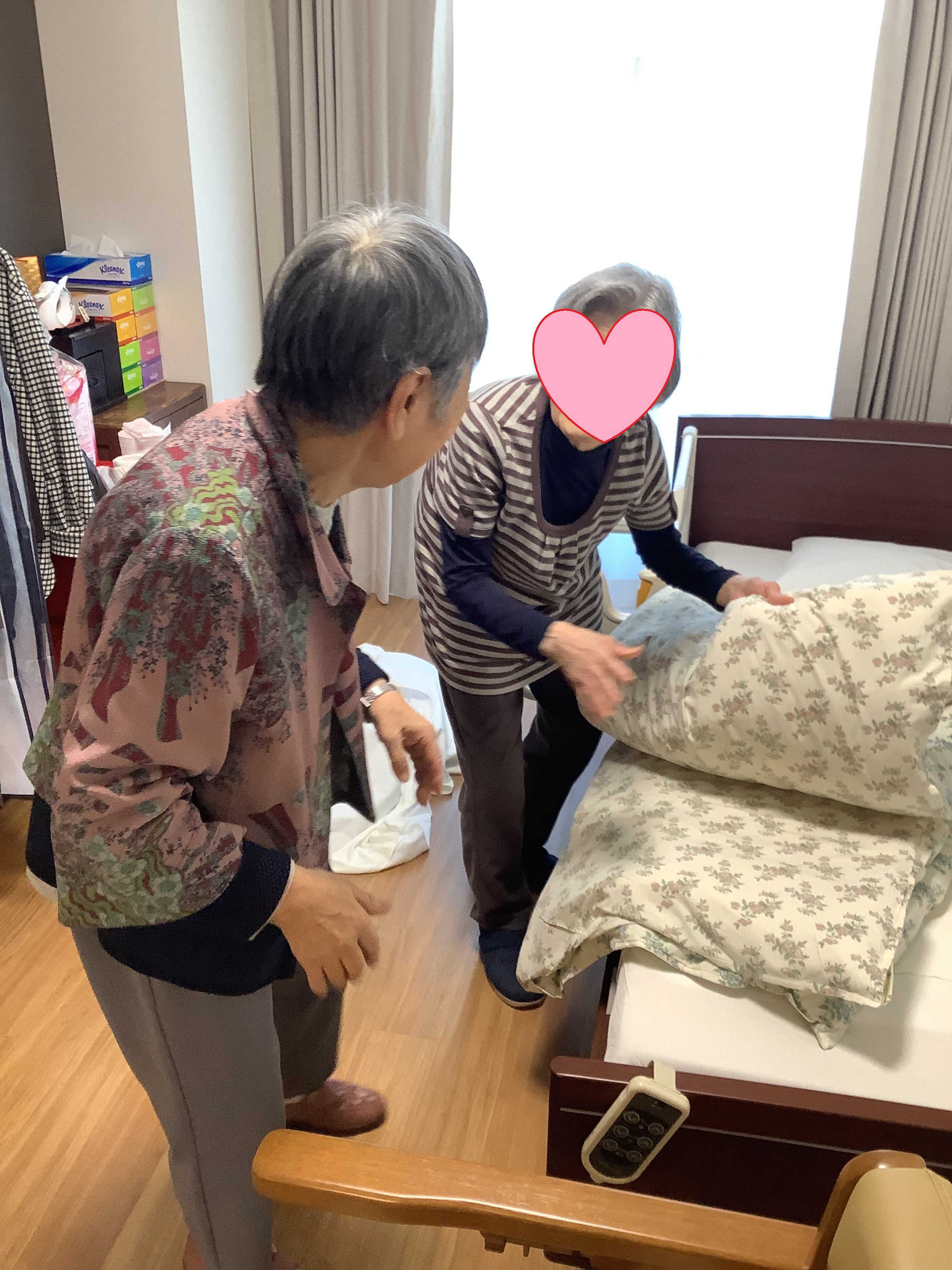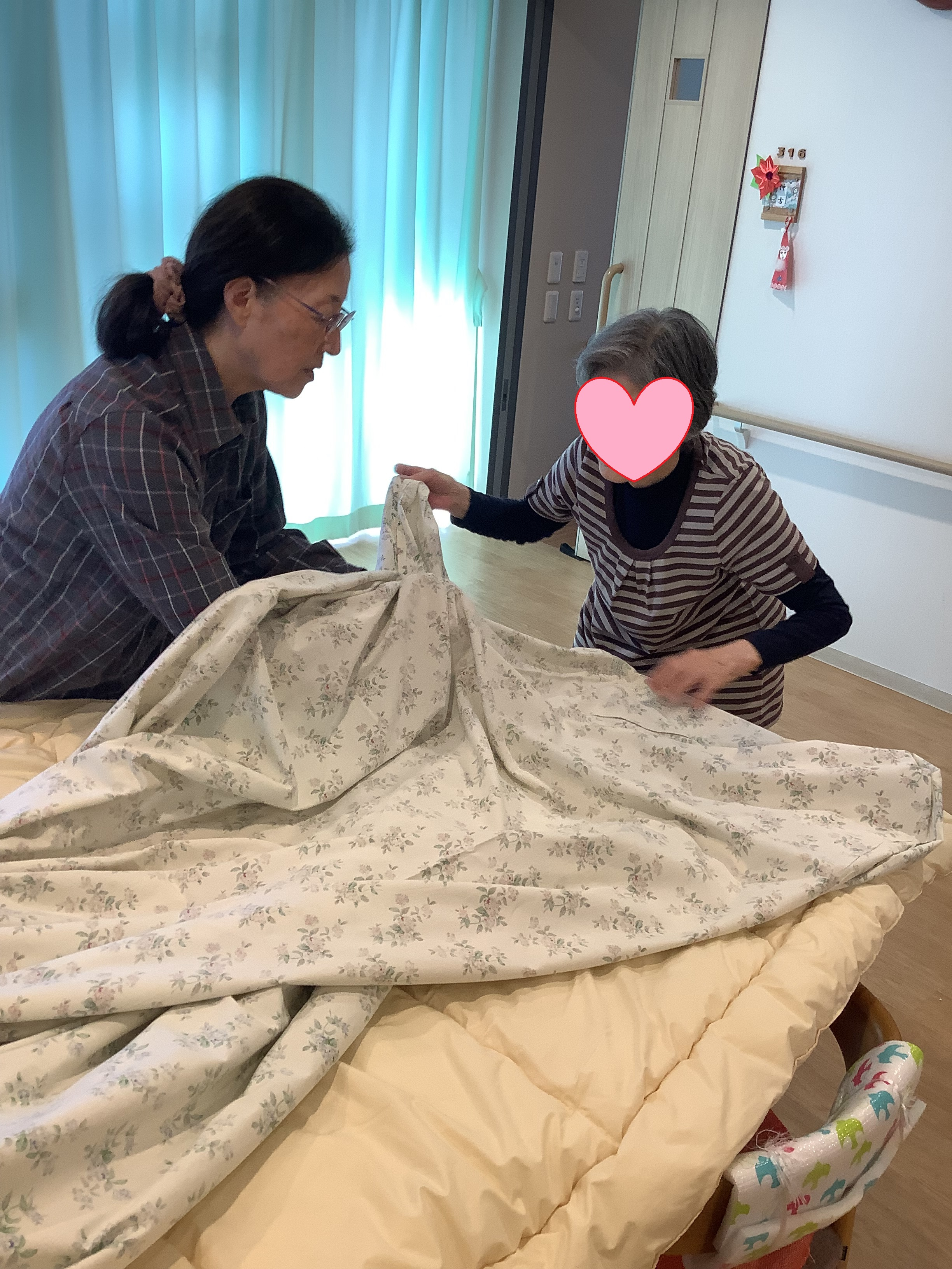 2023.12.20 活動報告 ☆WEST☆ みんなでシーツ交換 Tweet シェアする シーツ交換の準備をしていたら「みんなでやれば早く終わるよ」と。。 お願いします!! 「端を持つのは任せて!」とN様。 (人''▽`)ありがとう☆ とても助かりました☆ きむら 前の記事 2023.12.20 活動報告 ☆WEST☆ 写真撮影会☆ 次の記事 2023.12.20 活動報告 ☆WEST☆ 穏やかな日々② 一覧へ戻る