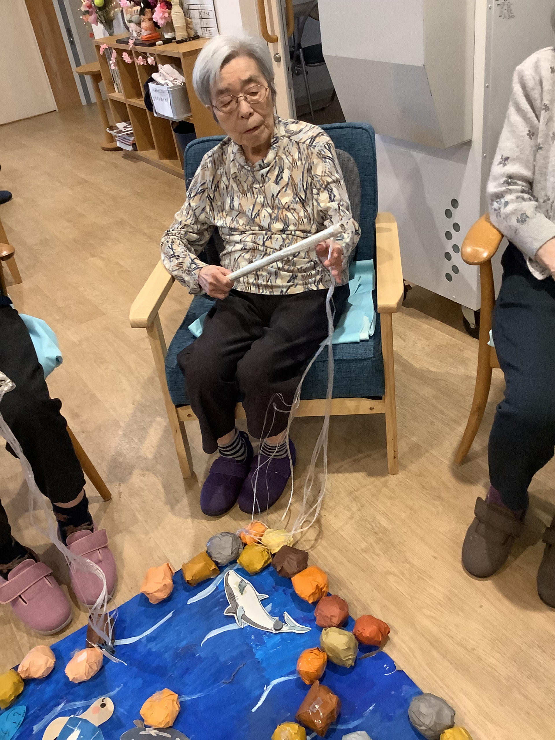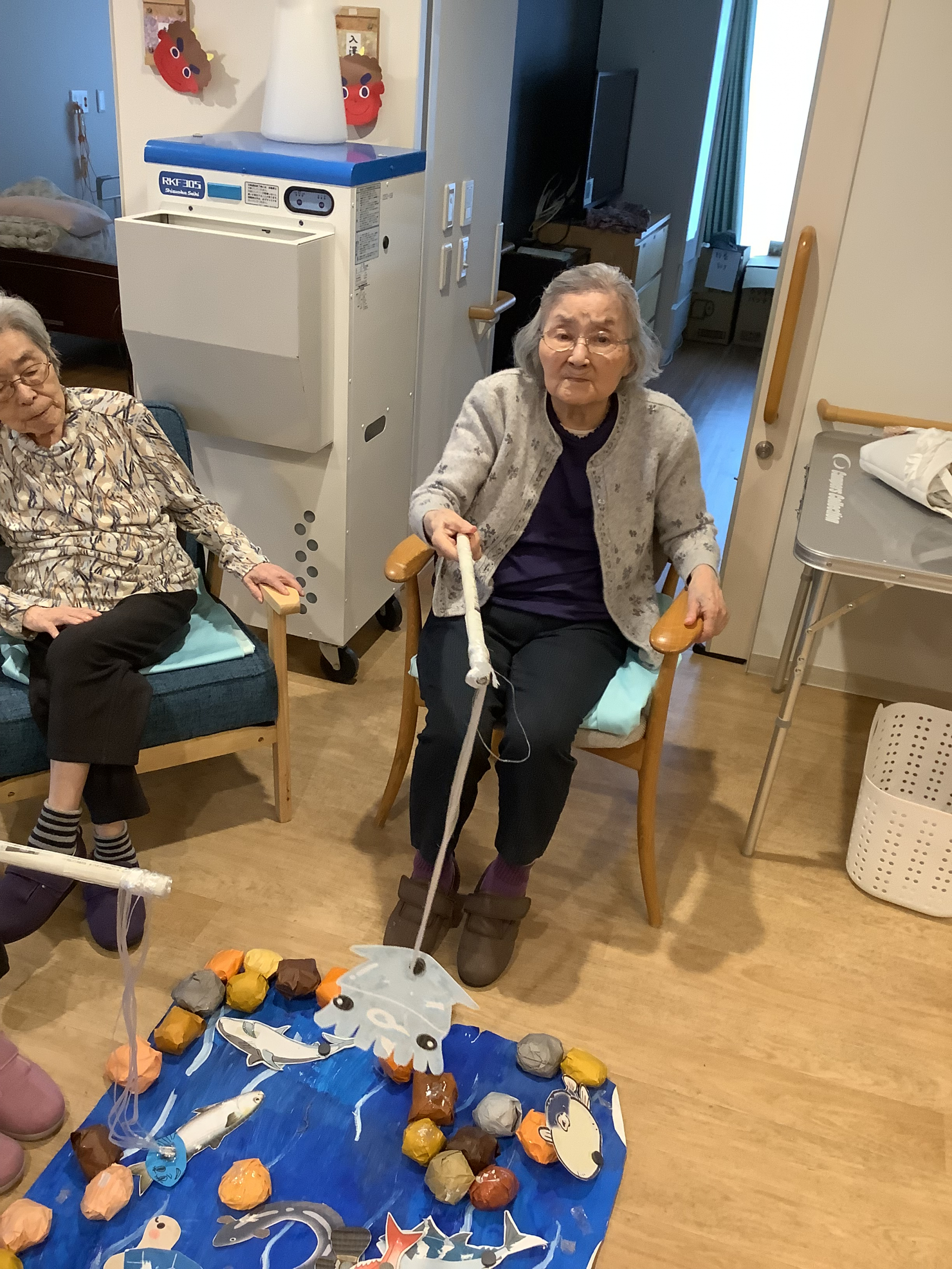 本日雨が降り続いてるので,フロアで魚釣りゲームを楽しくやりました!