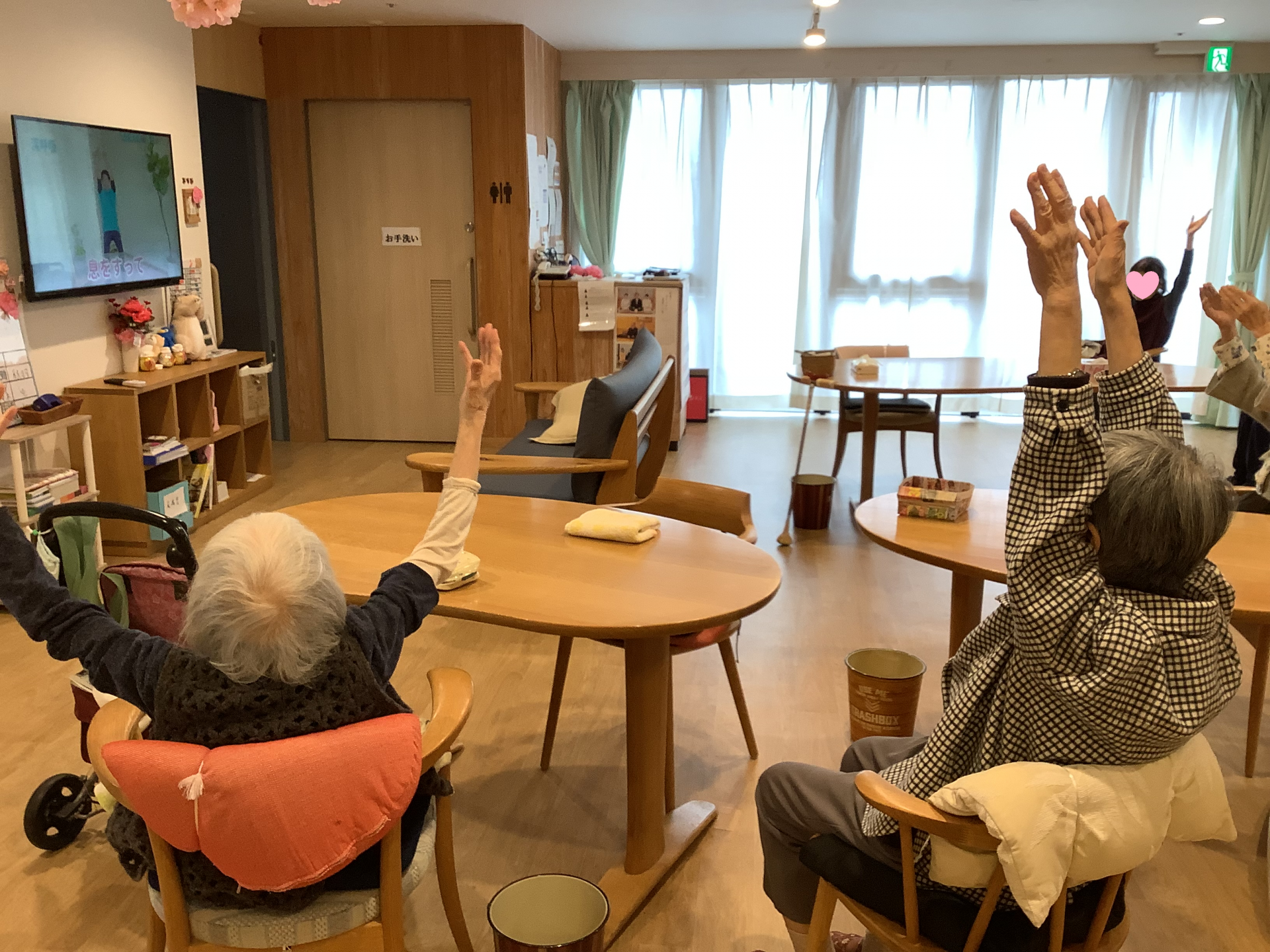 音楽に合わせての体操やストレッチなど毎日頑張ってます!