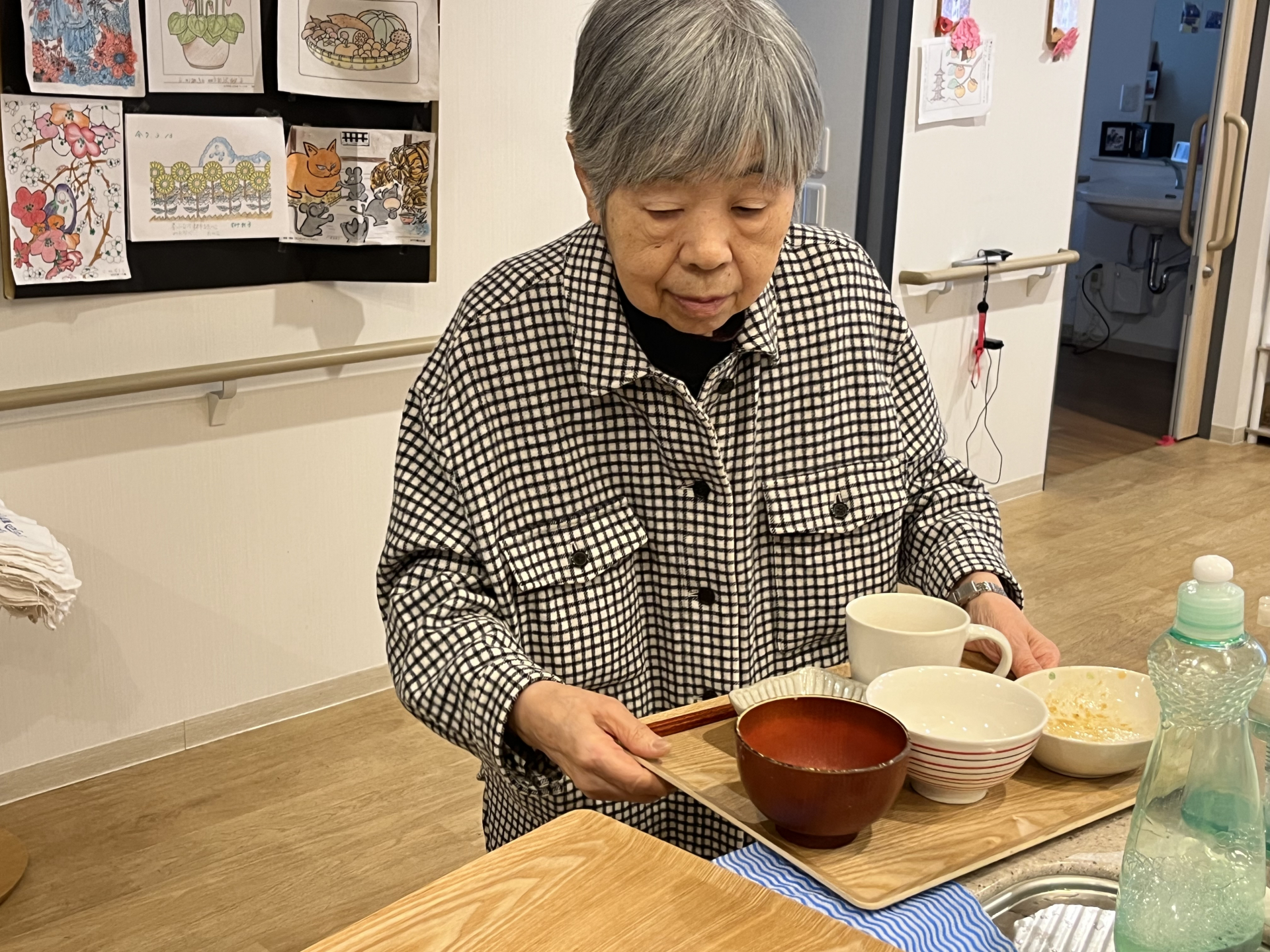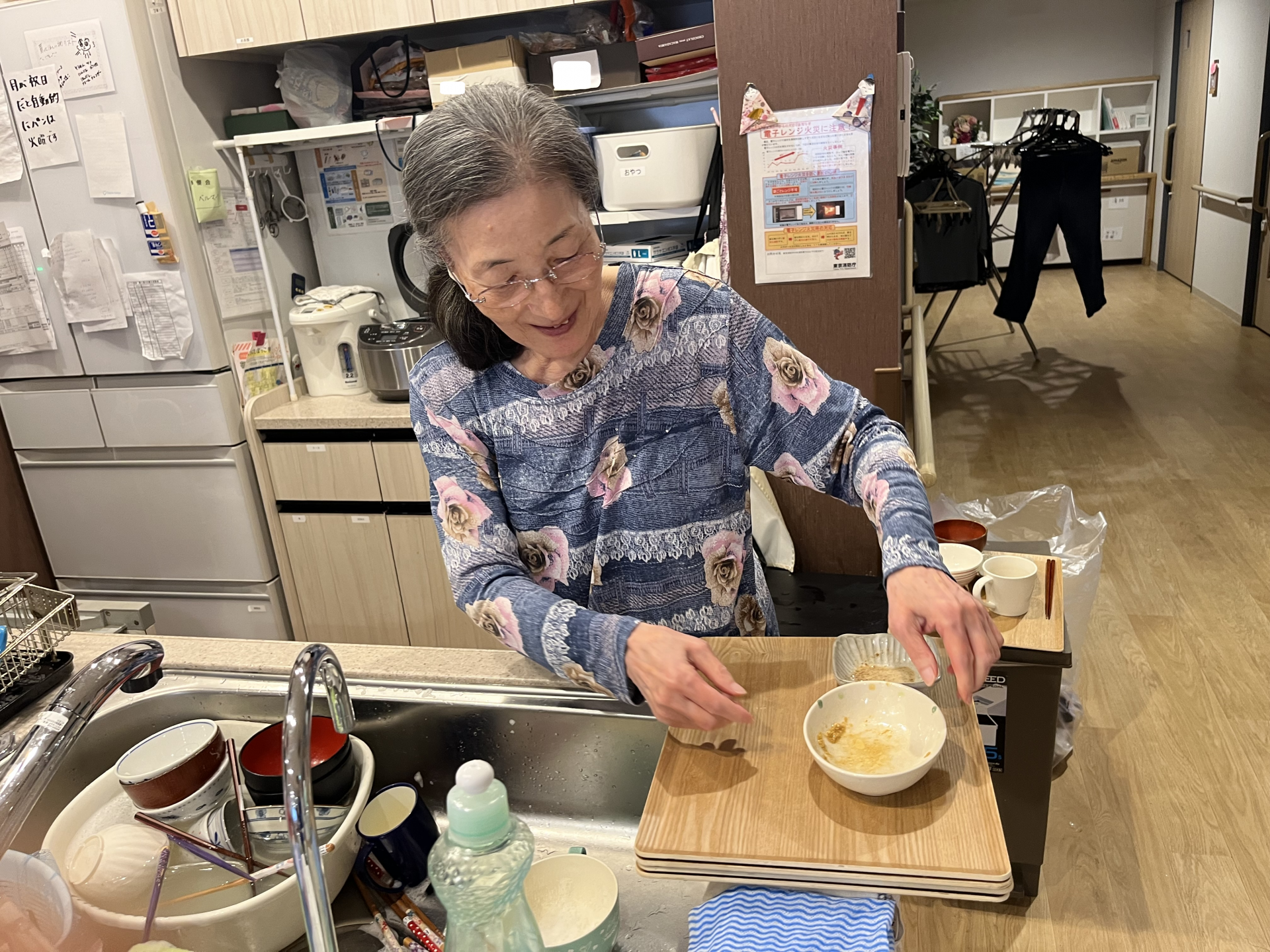 食事の後は自分の食器や他の方の食器をキッチンまで運んでくれてます。。