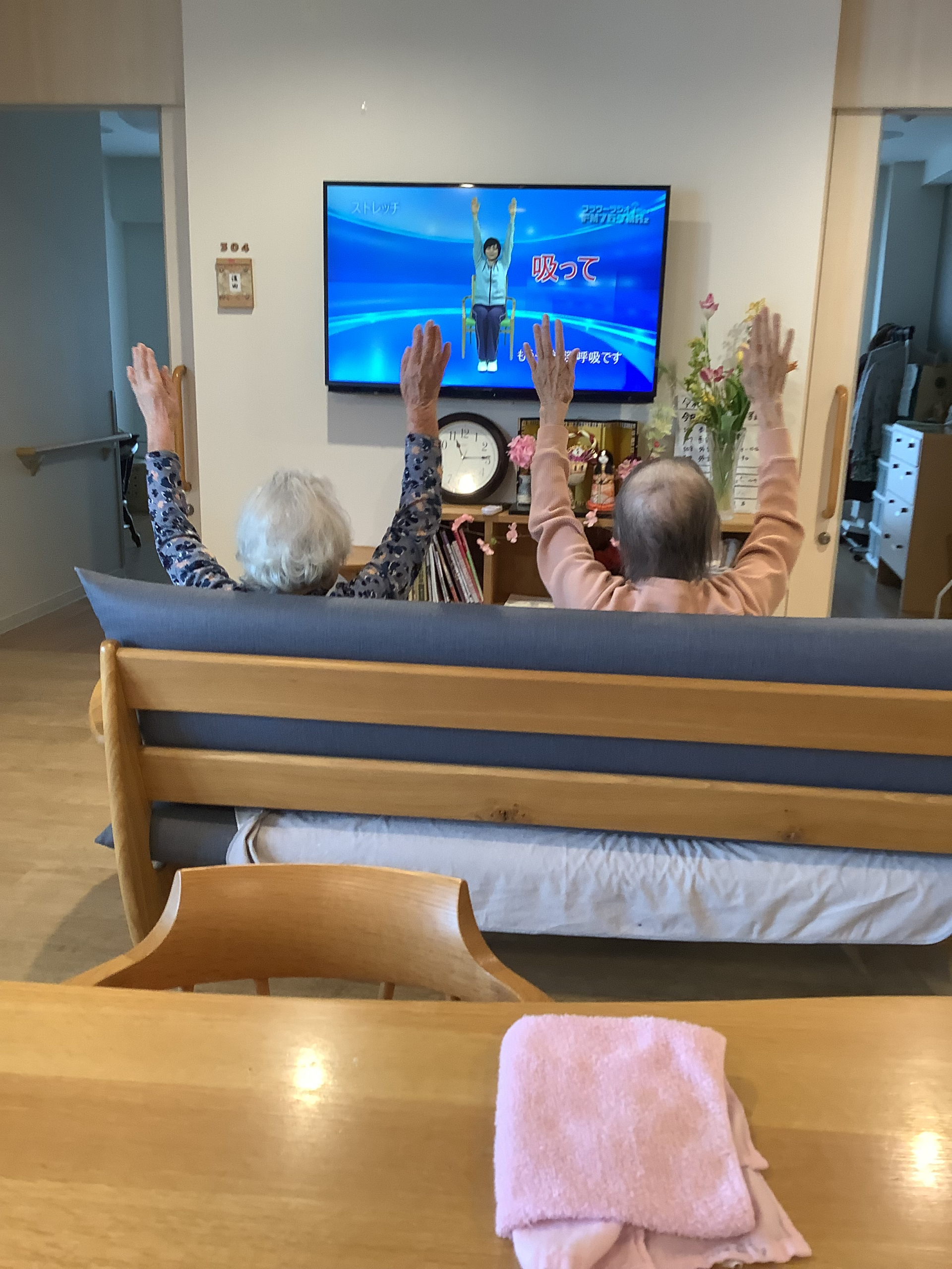 体操も丁寧に。今日もお疲れ様でした。 小日向GH 秋羽