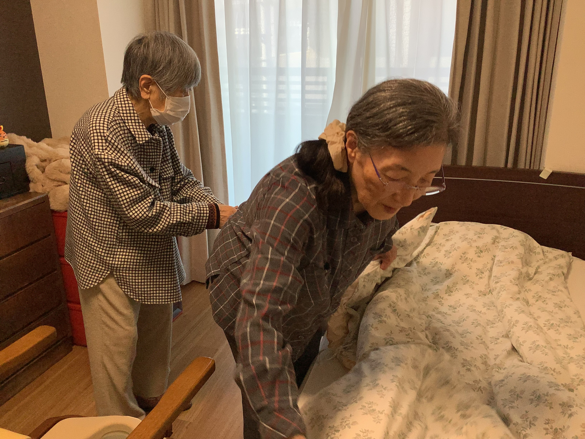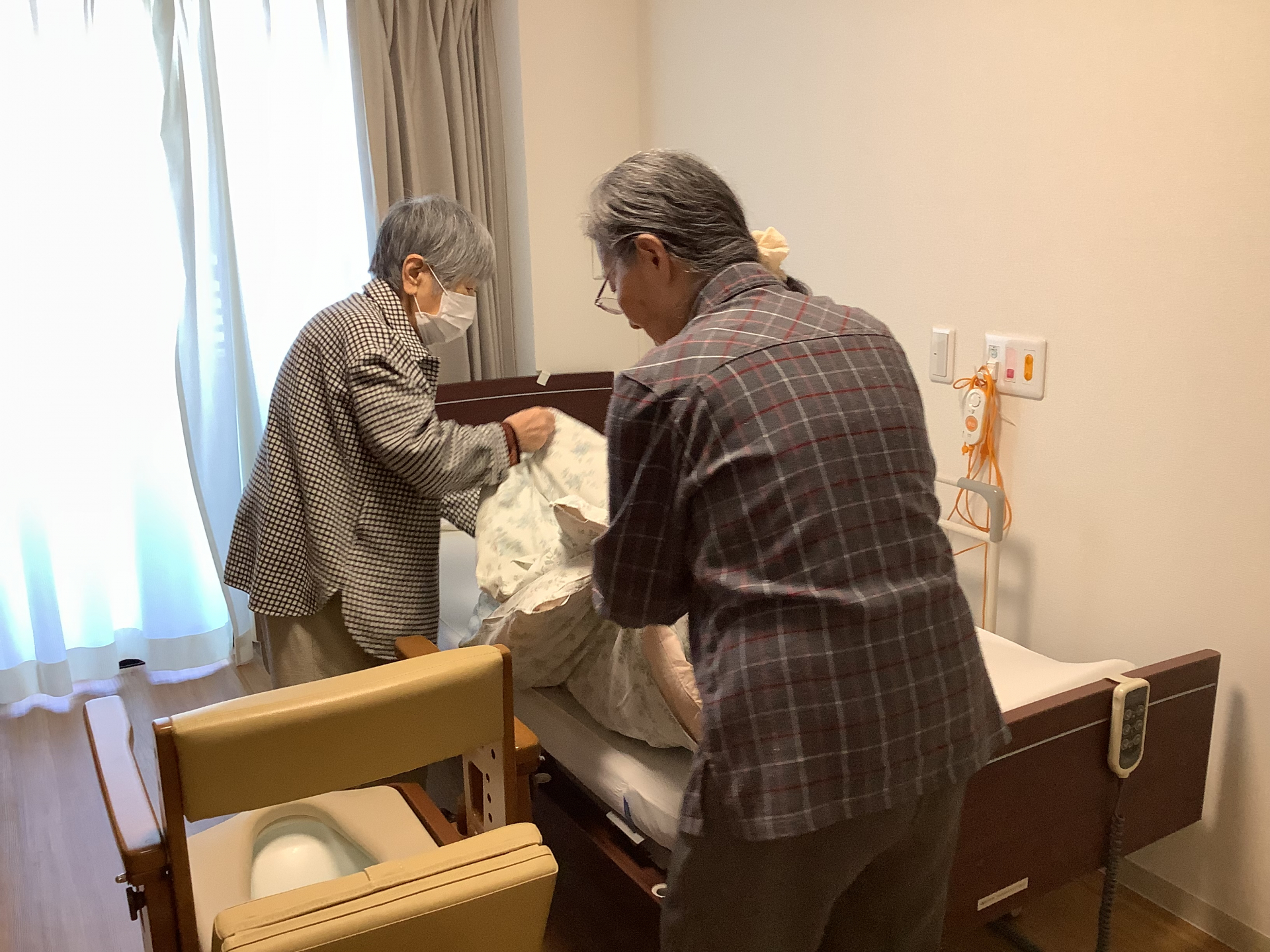 シーツ交換も協力して。。
