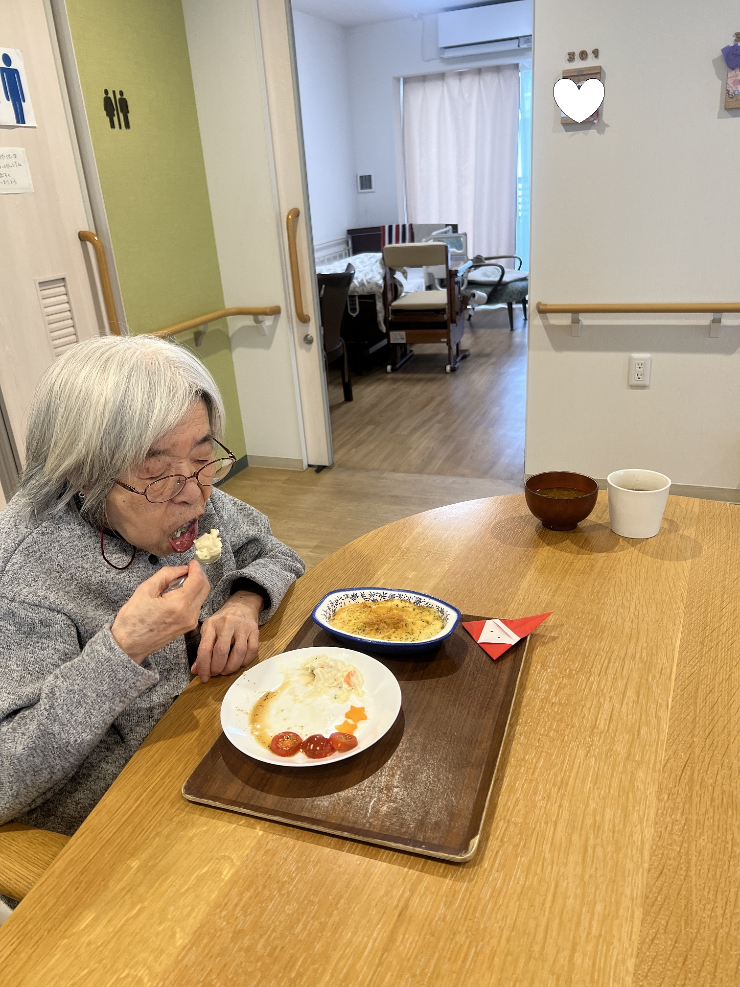 Y様はお皿にキャロット☆とトマトを載せて有り、、