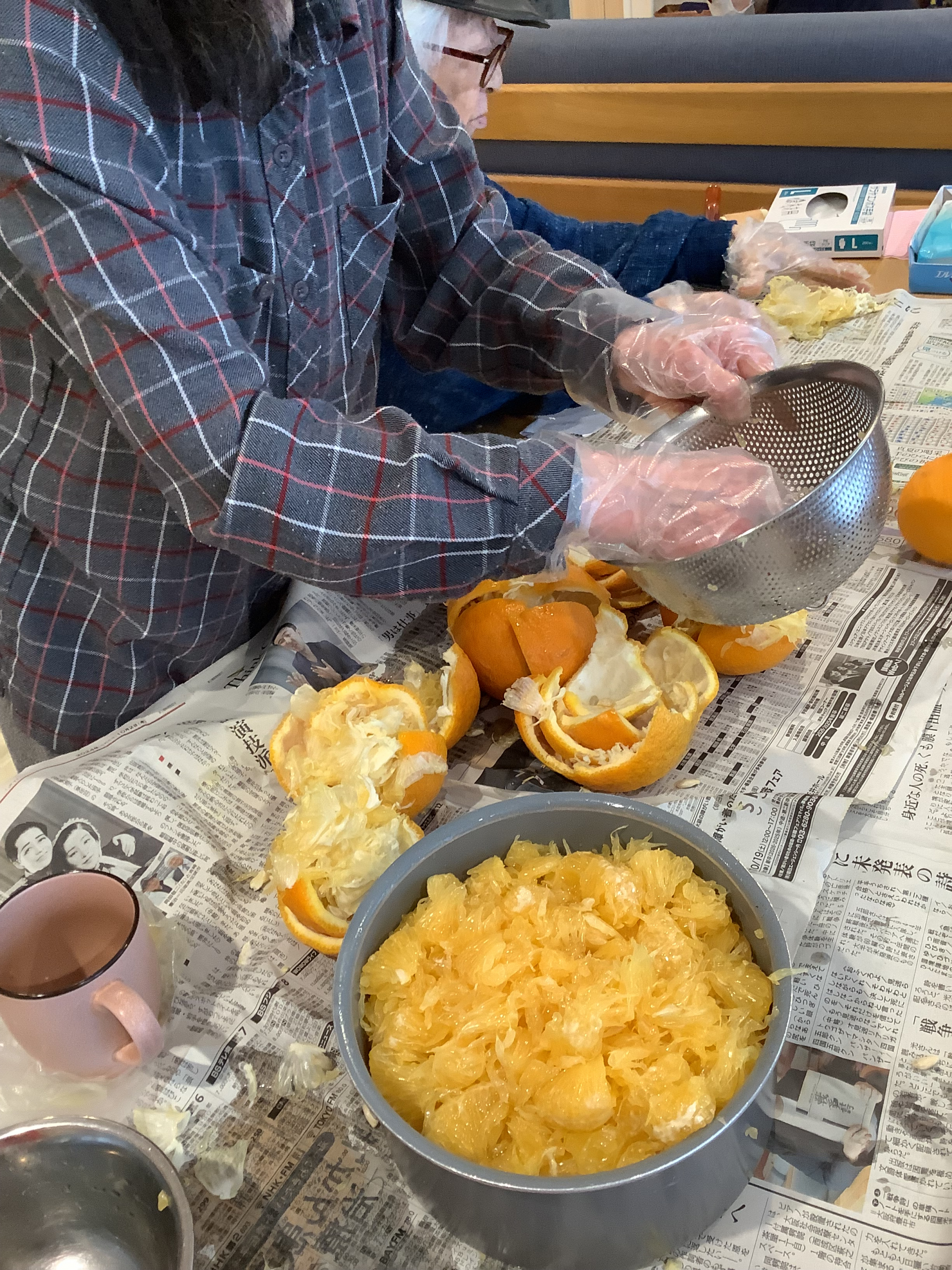 2025.05.02 活動報告 ☆彡甘夏☆彡WEST Tweet シェアする М様のご家族よりたくさんの甘夏を頂いたので、さて小日向キッチンの開催 協力して皮をむき身を取り出します。 鍋に一杯です。これをシロップ漬けにして頂きます。 つづく 小日向GH 秋羽 前の記事 2025.05.02 活動報告 ☆彡甘夏のシロップ漬け☆彡ご馳走様 次の記事 2025.05.02 活動報告 書道 一覧へ戻る