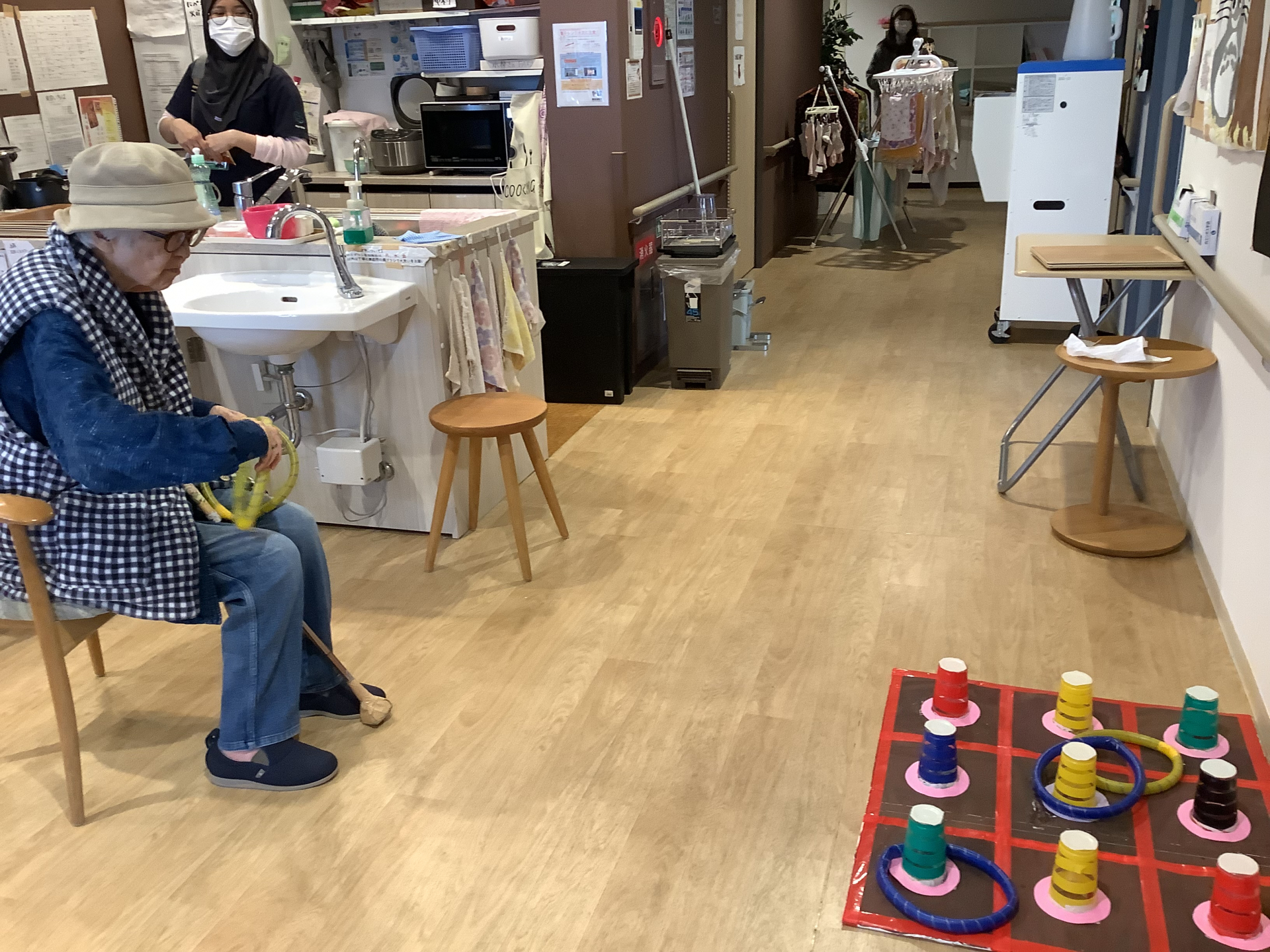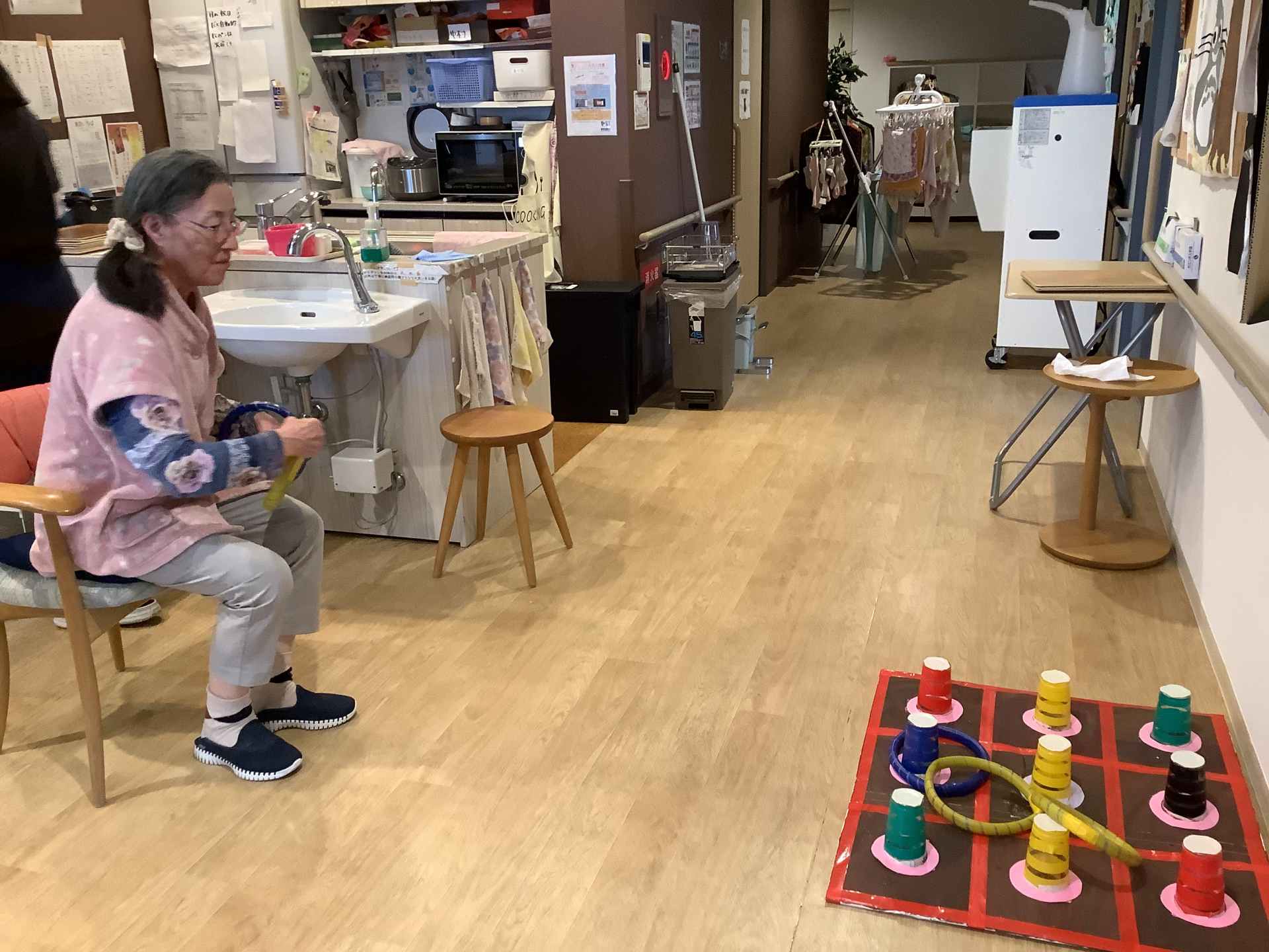 本日はあいにくの雨・・室内で輪投げゲームに挑戦‼