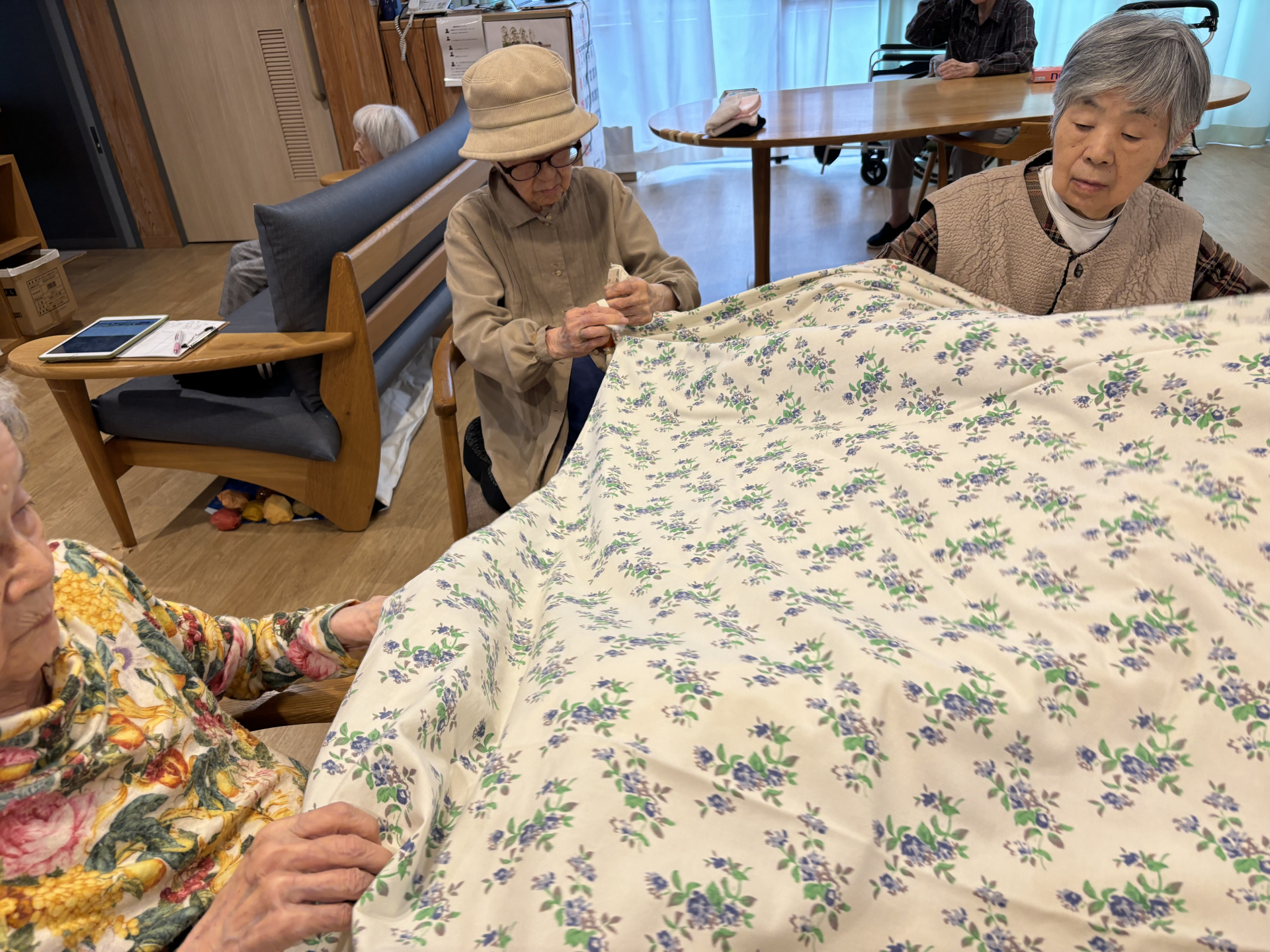 リネン交換も協力して行っていきます♬