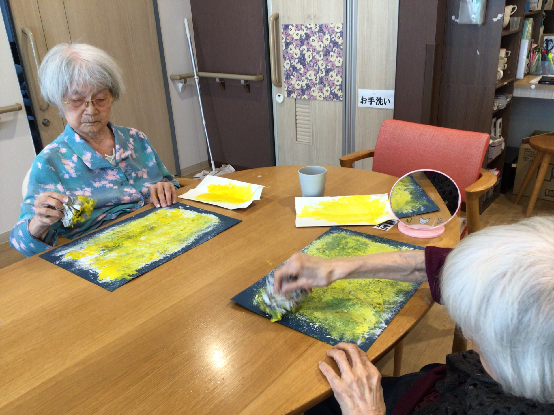 乾いた白い箇所に黄色い絵の具をポンポンポン♬