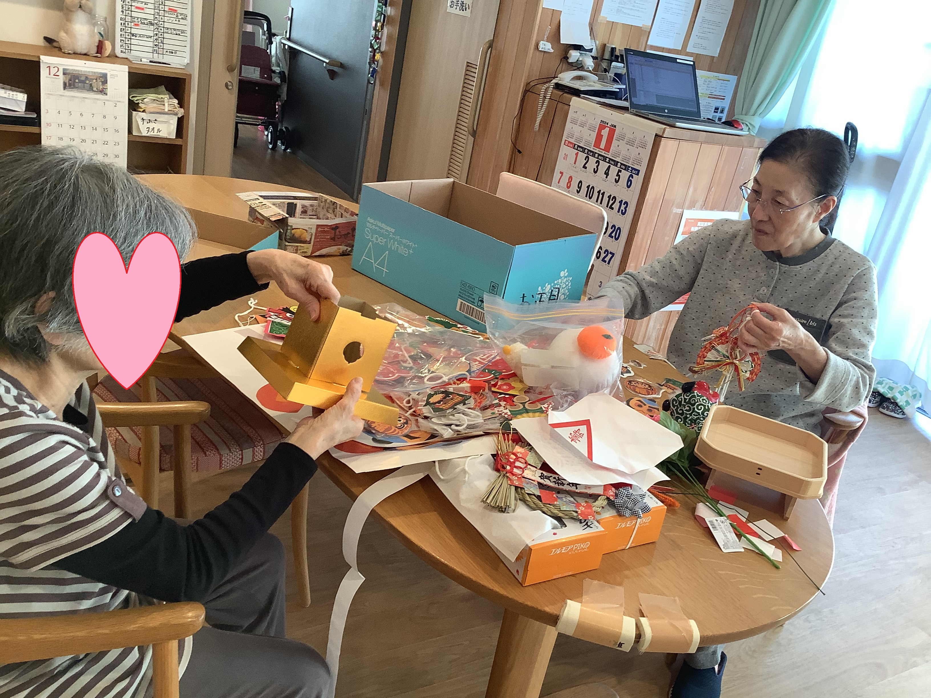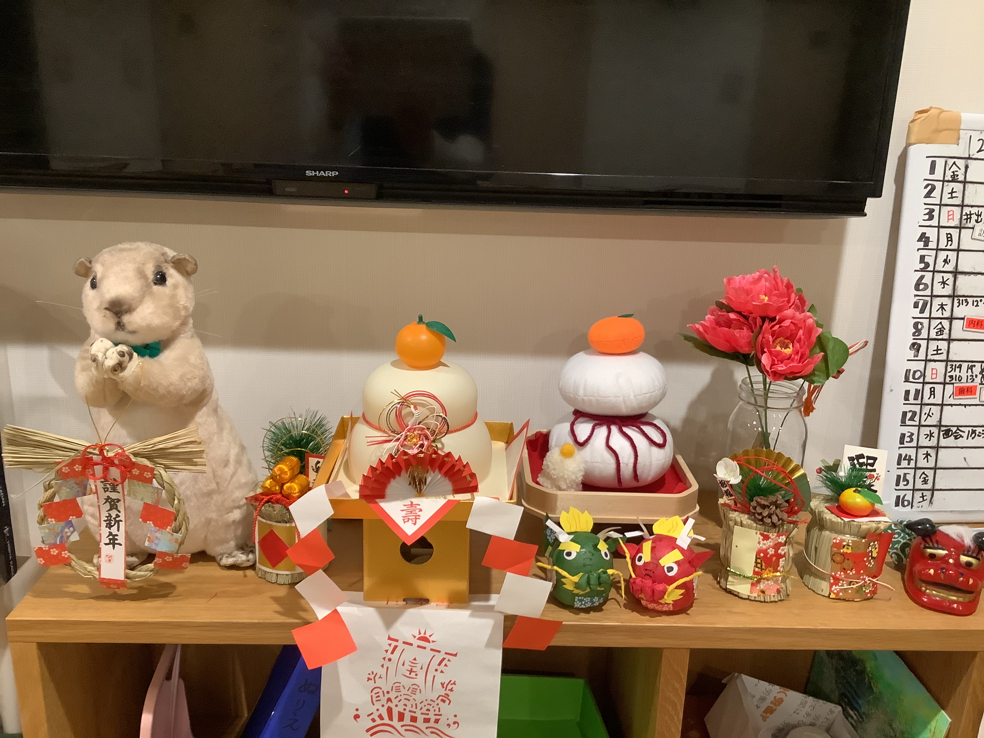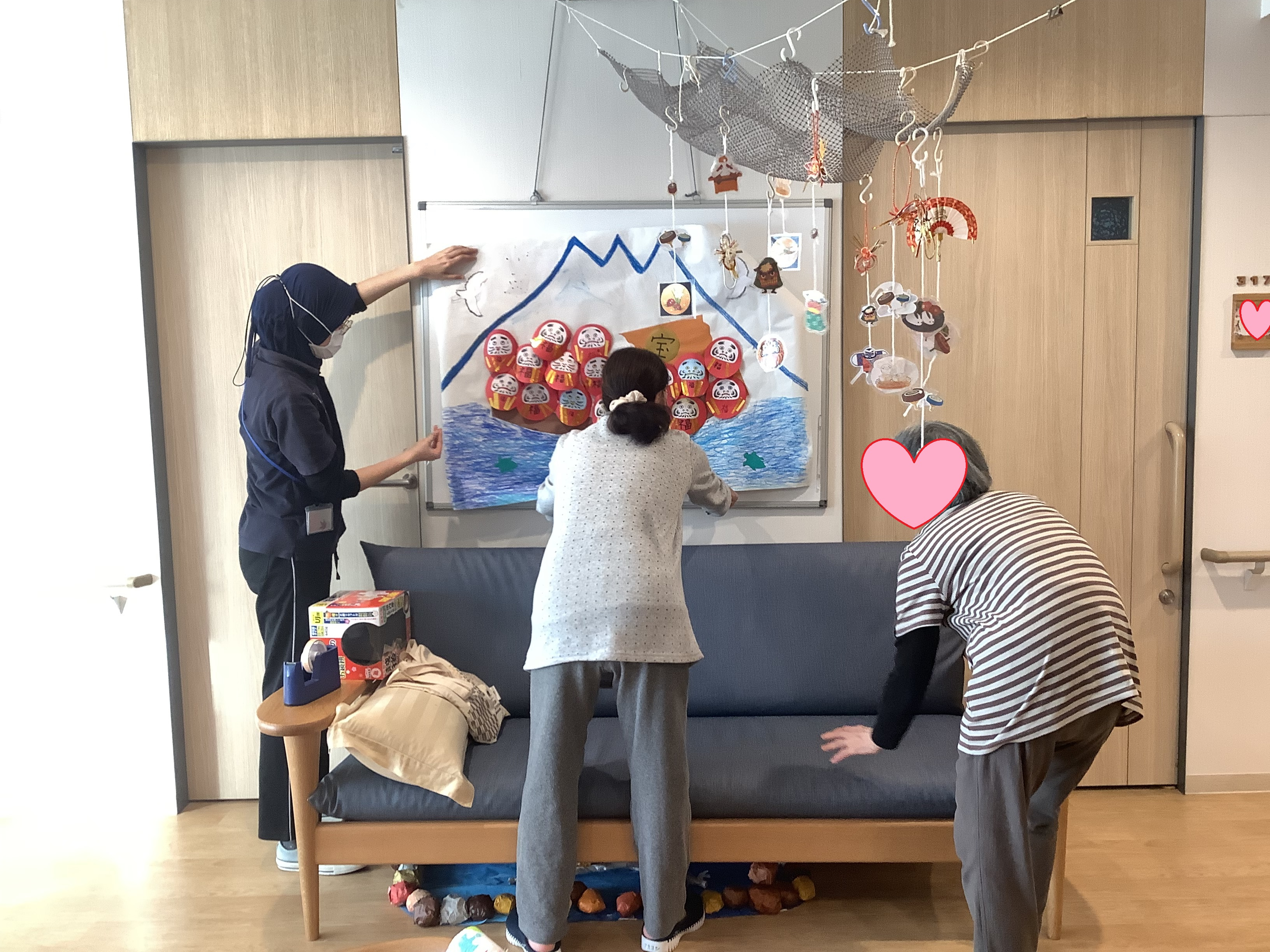 2023.12.30 活動報告 ☆WEST☆ お正月の準備 Tweet シェアする 今年も残り2日・・お正月を迎える準備を・・ フェルトを使い手作り鏡餅♬ ダルマの宝船を飾り・・ 張り子の辰も飾り完成カワ(・∀・)イイ!! きむら 前の記事 2023.12.30 活動報告 ☆WEST☆ だるま① 次の記事 2023.12.29 活動報告 ☆EAST☆ 夕方のご様子 一覧へ戻る