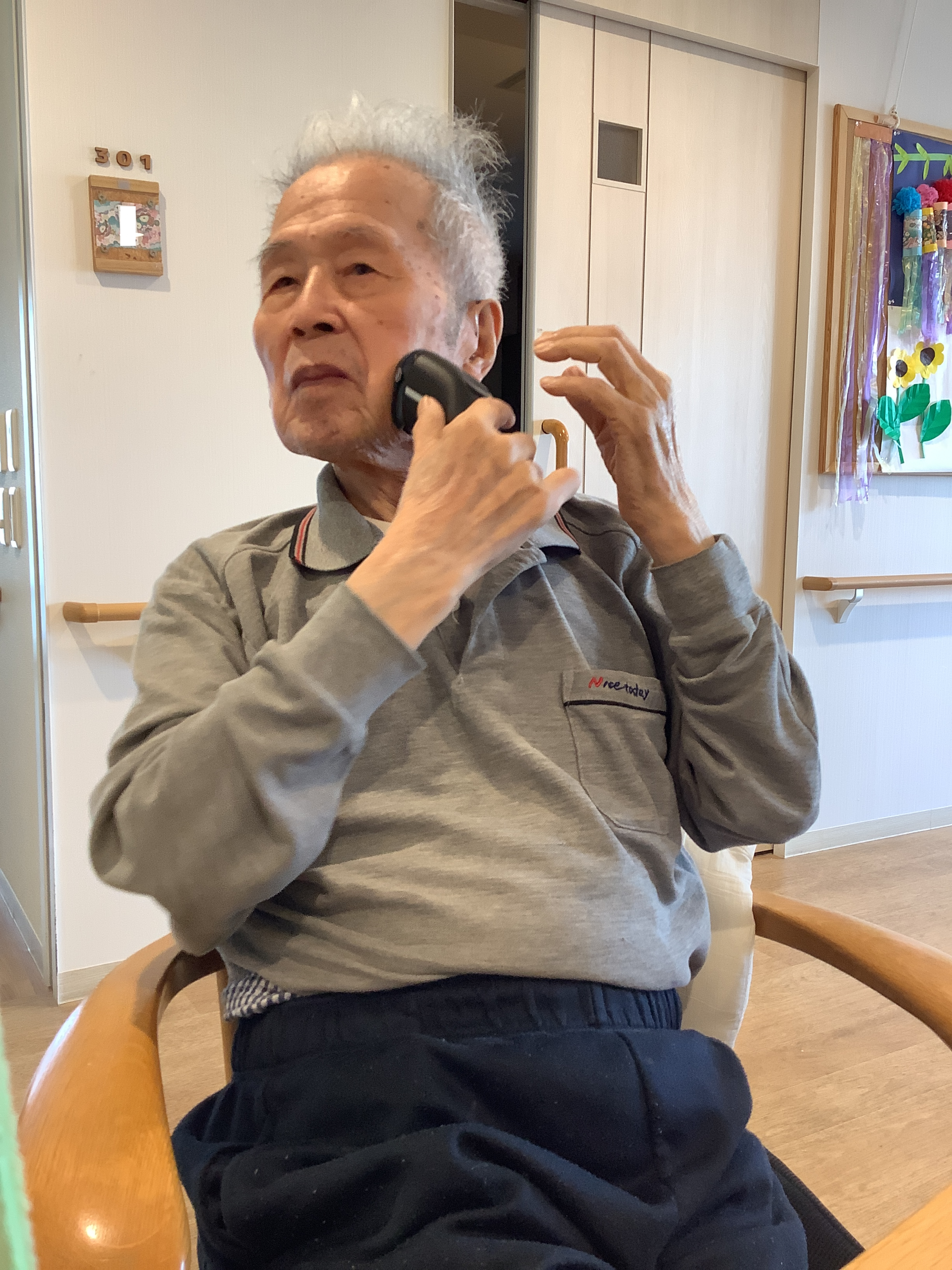 S様がリビングでゆっくりと髭剃りをされていました。。。