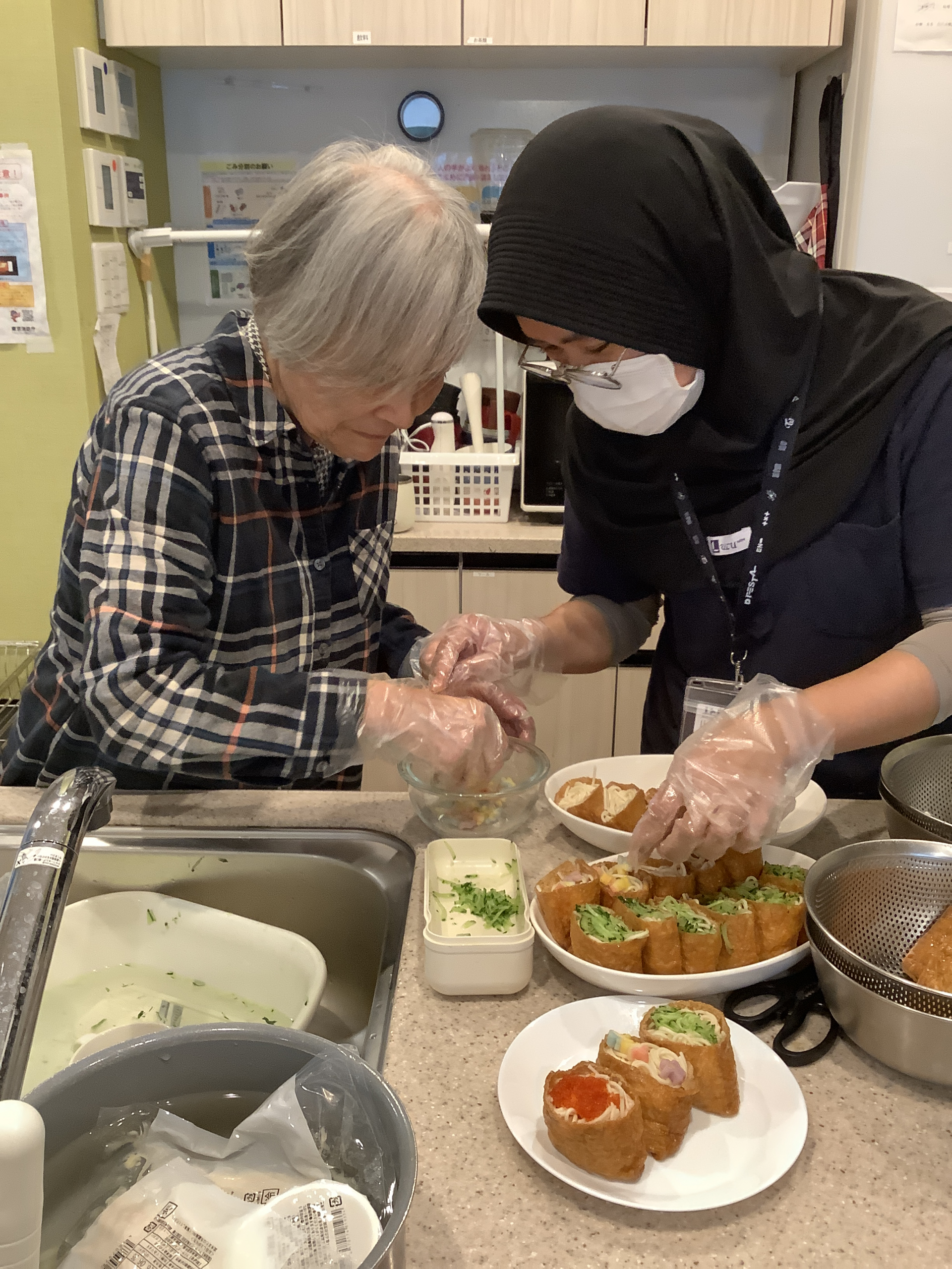 夕方には,さっぱりとした「いなりそうめん」を召し上がりました。