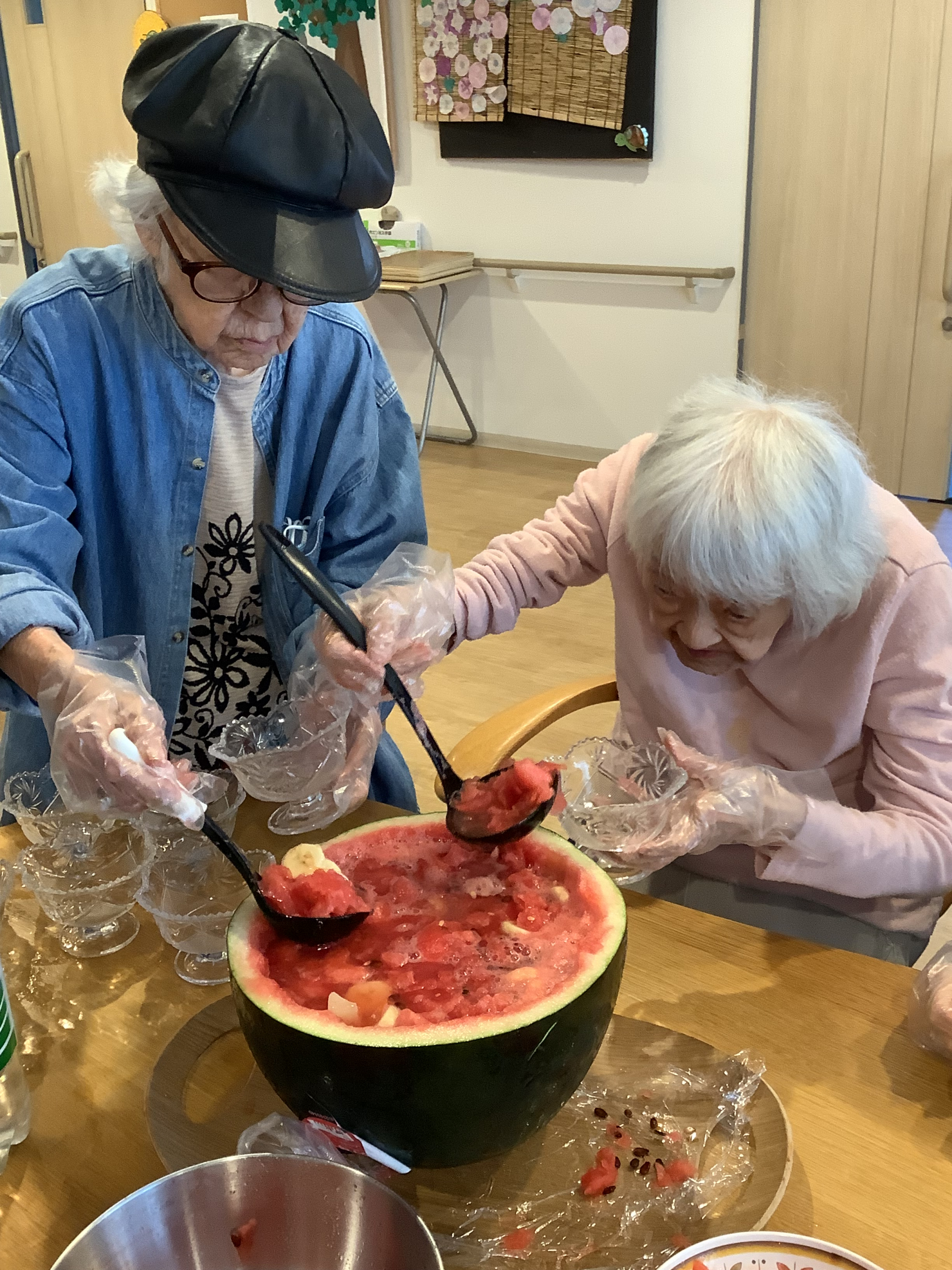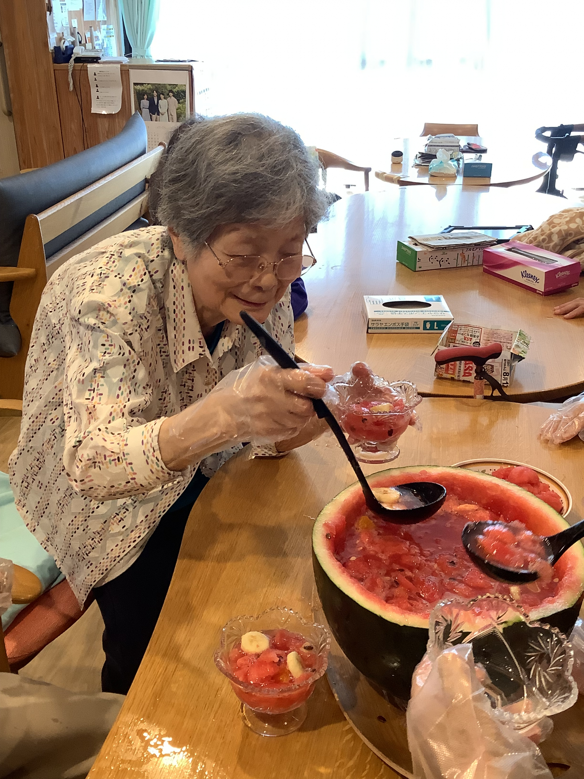 フルーツポンチが完成したら自分の分は自分で取り分けます(#^.^#)