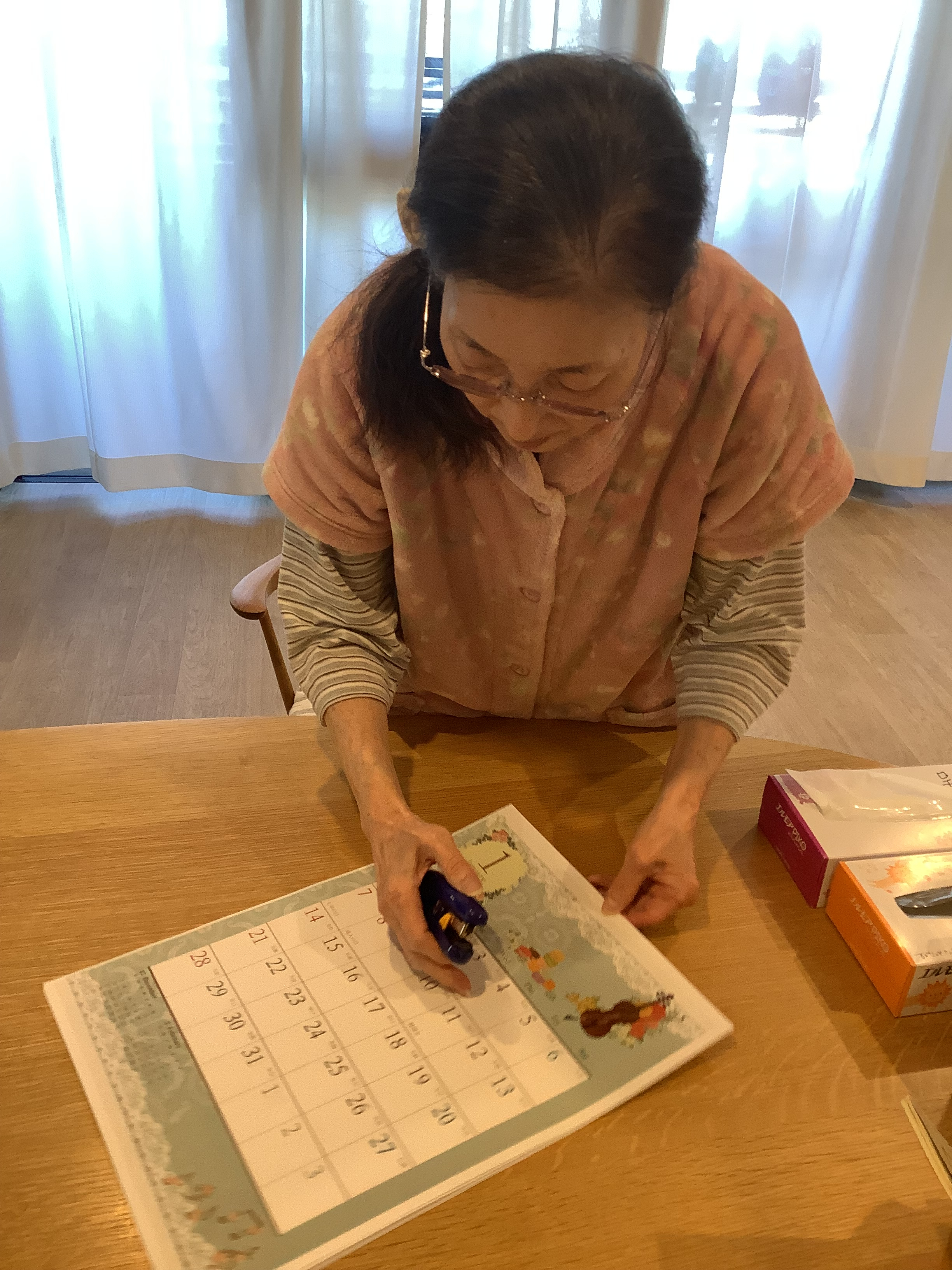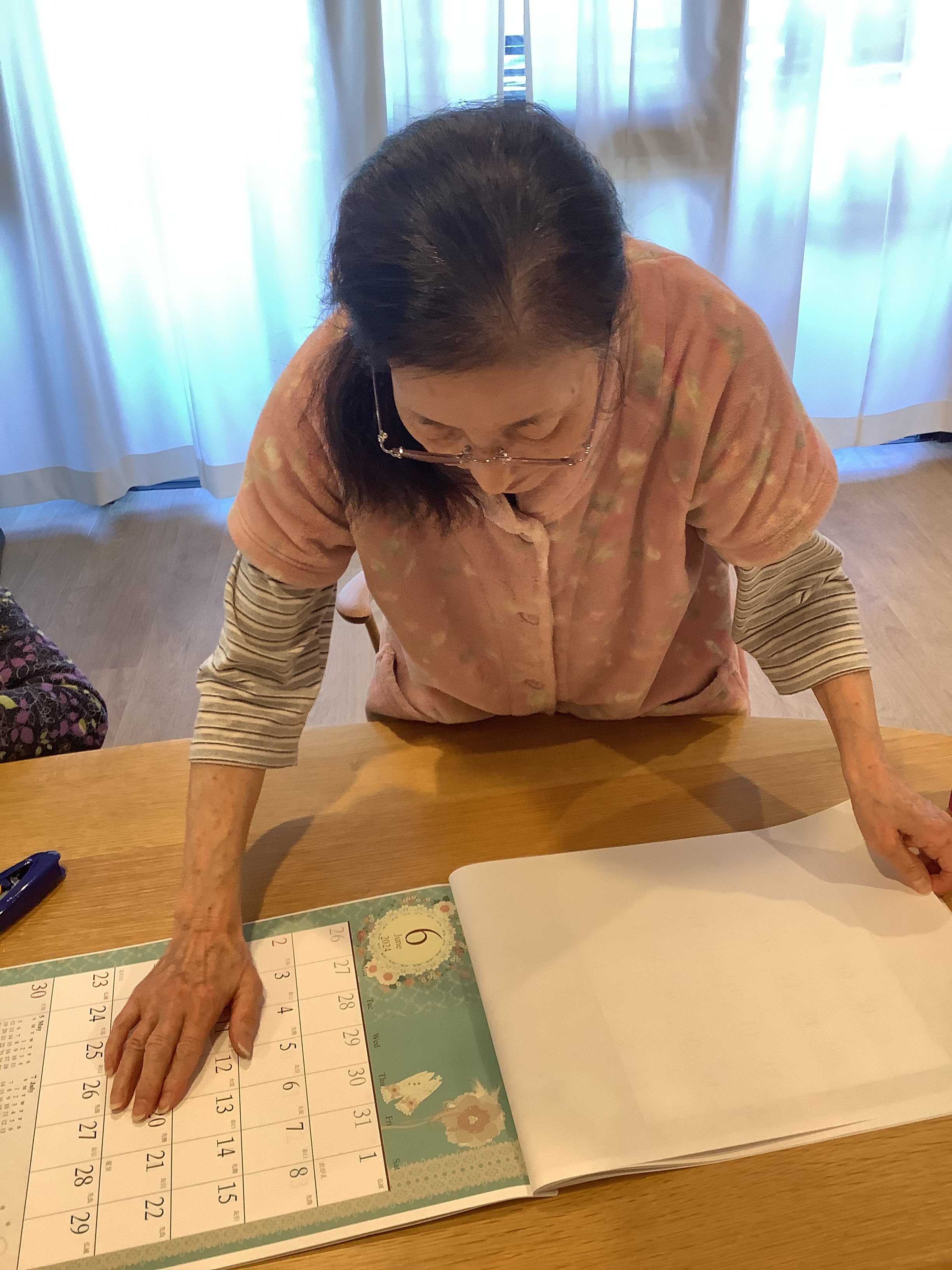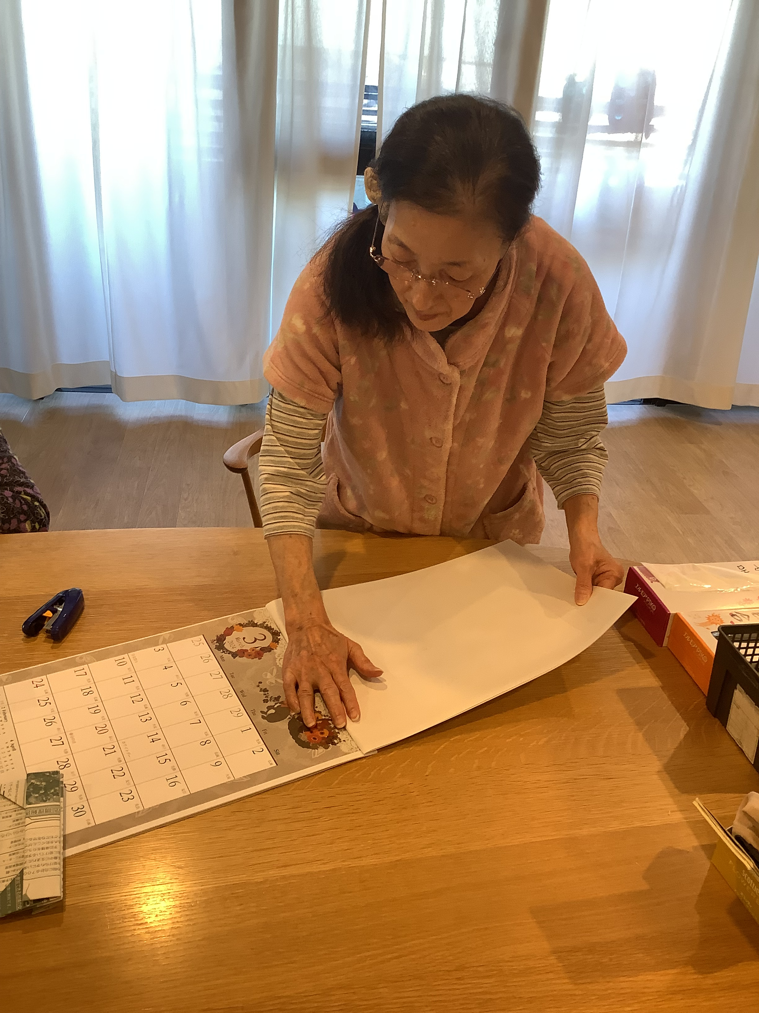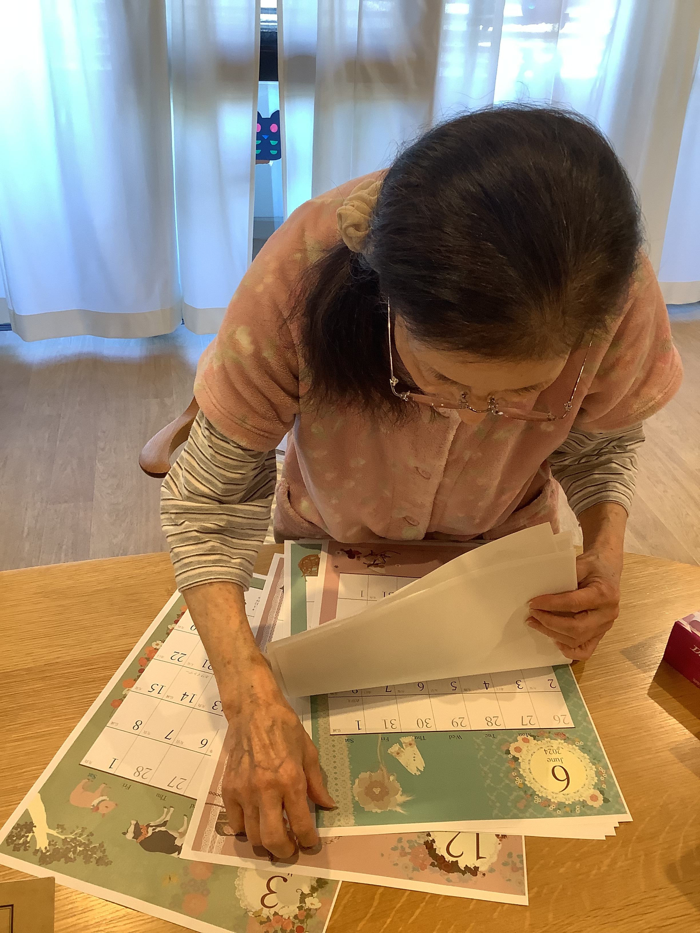 2024.01.06 活動報告 ☆WEST☆ 大きいカレンダー Tweet シェアする 「大きくてメモが書けるカレンダーが欲しいな」とN様。 早速作りましょう! 均等に折り目を折って・・ 出来上がると早速部屋に飾って下さいました♬ きむら 前の記事 2024.01.06 活動報告 ☆WEST☆ お正月を楽しもう♪ 次の記事 2024.01.06 活動報告 ♡EAST♡ 本日のフロアー 一覧へ戻る