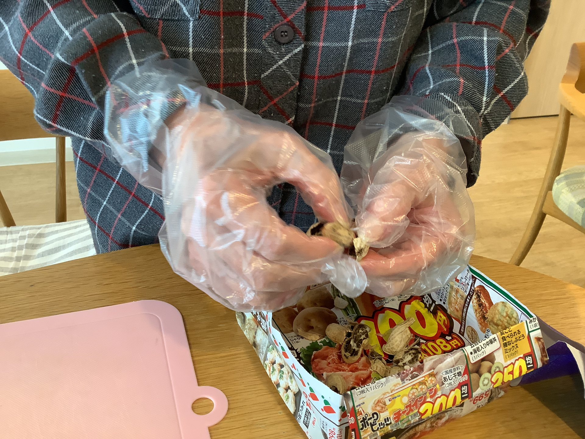 とても細かい作業ですが根気よく殻をむいてくれてます