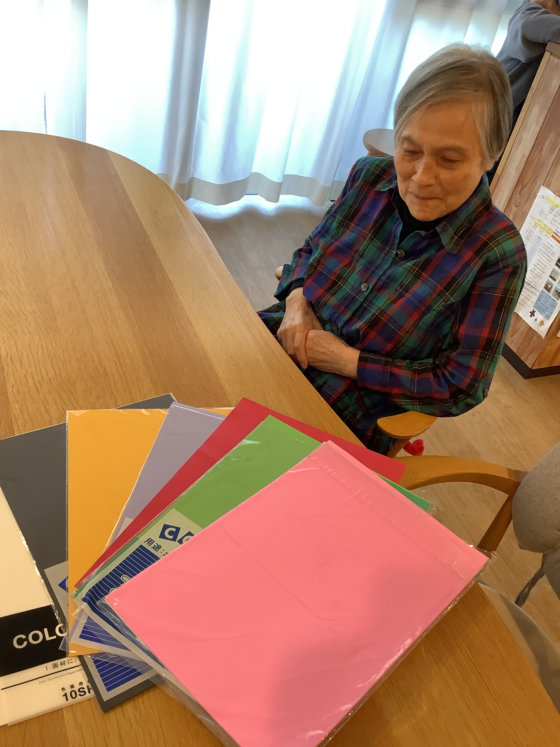 まずは、皆様にお好きな色の画用紙を選んで頂きます。