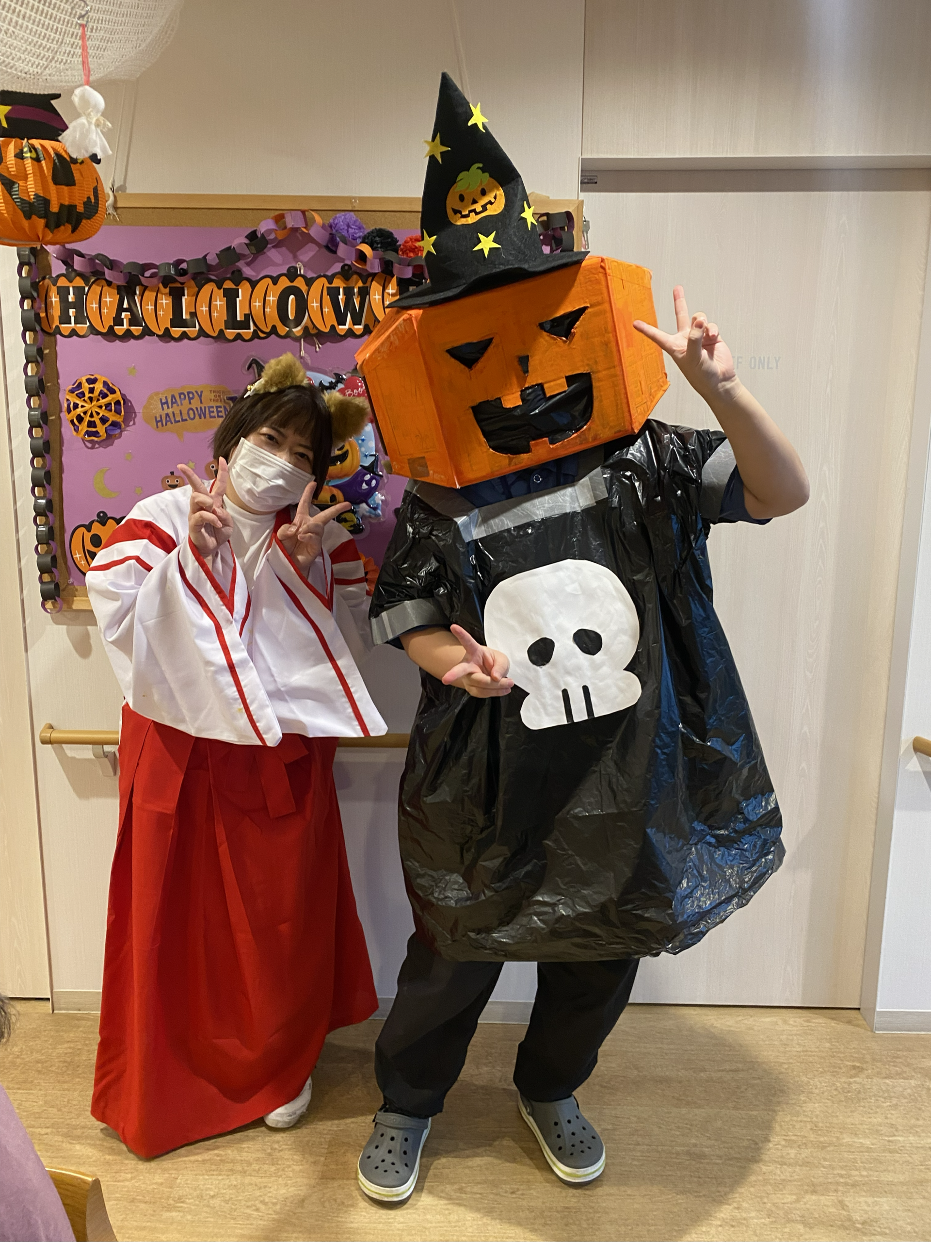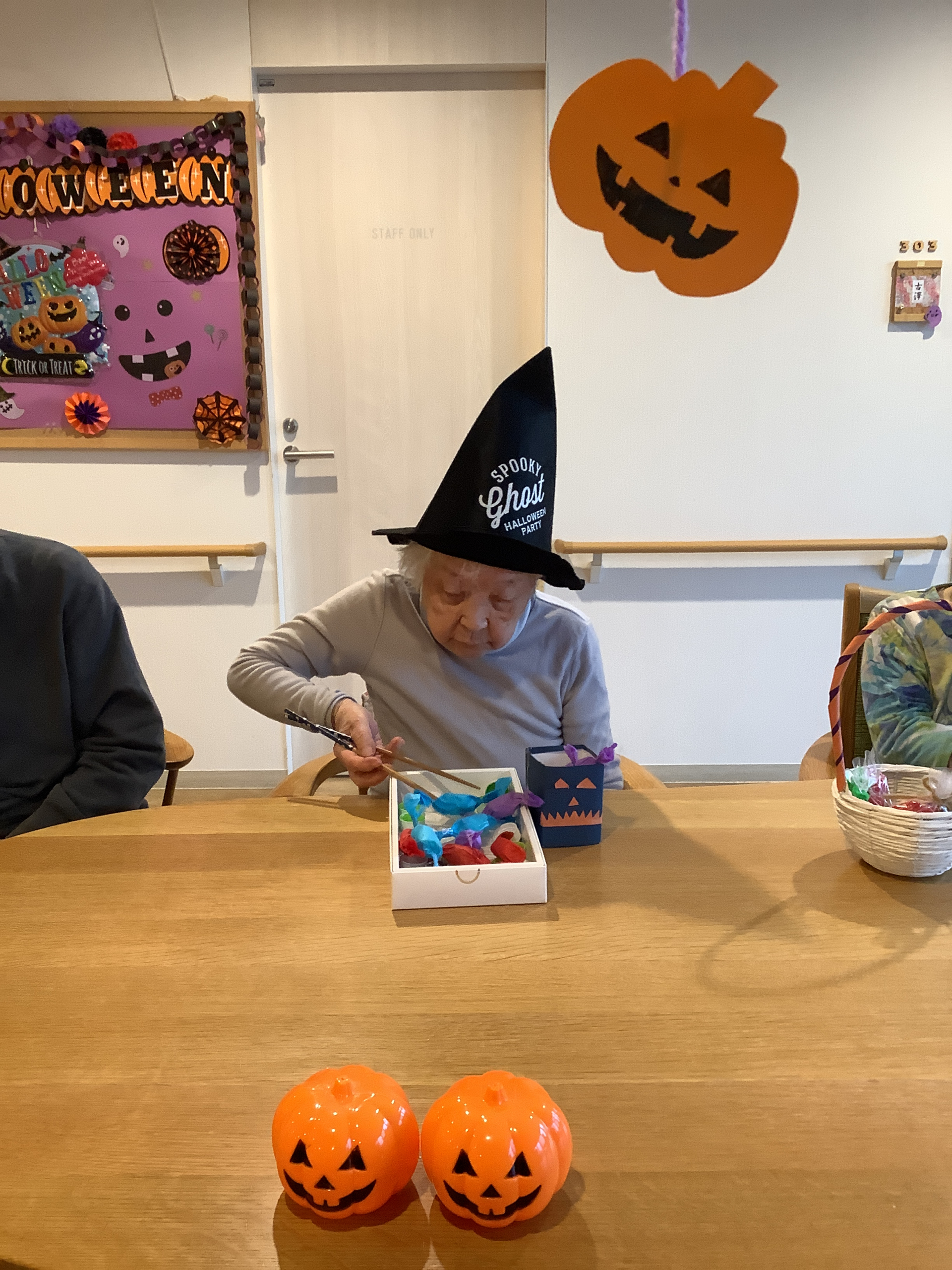 午後からみんなでカボチャマフィンを作り,可愛いお帽子をかぶってゲームをしたり写真もいっぱい撮りました。