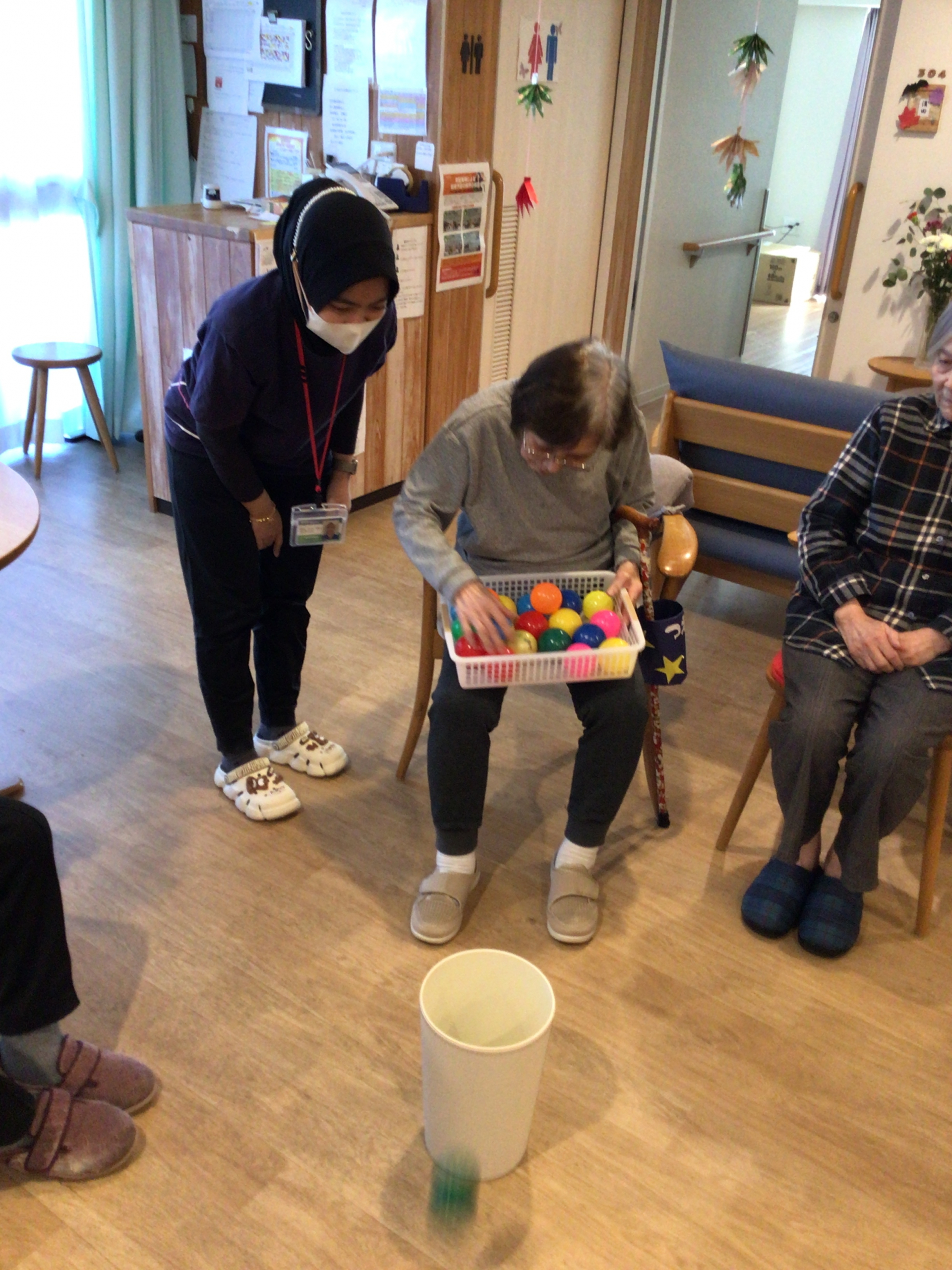 玉入れゲームをやったら手の運動になりましたト聞こえました。