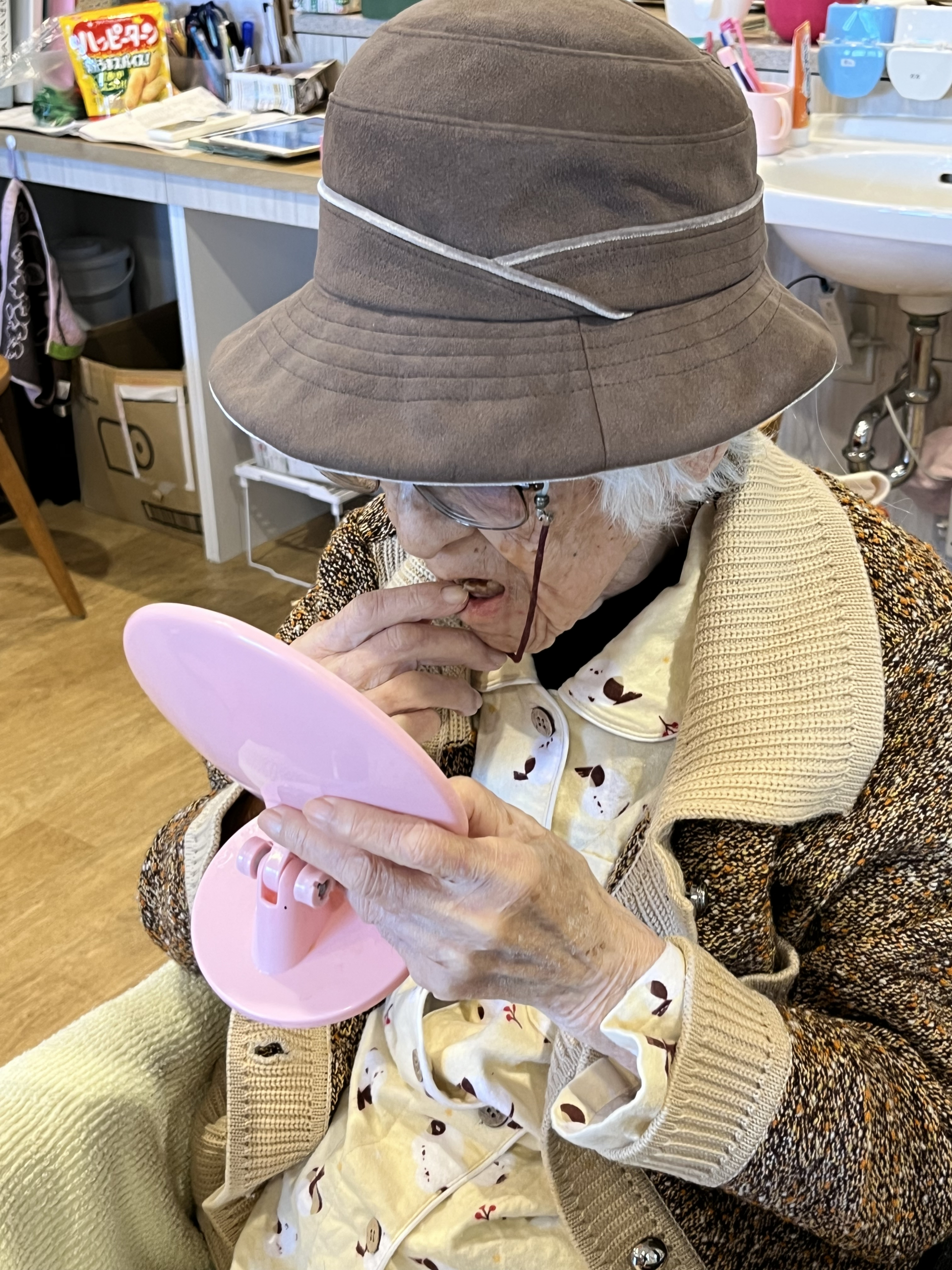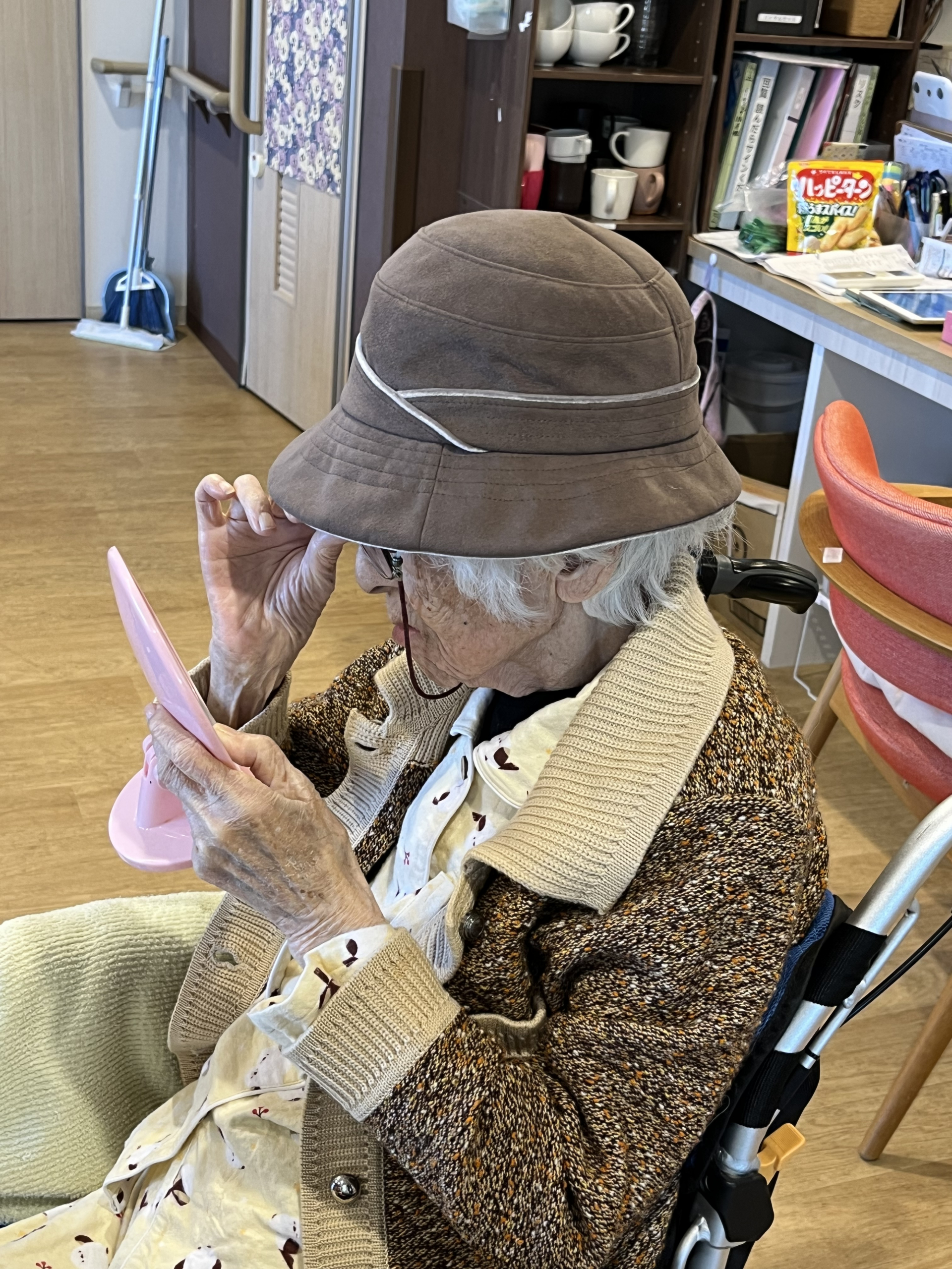 鏡で身だしなみチェック中のN様!