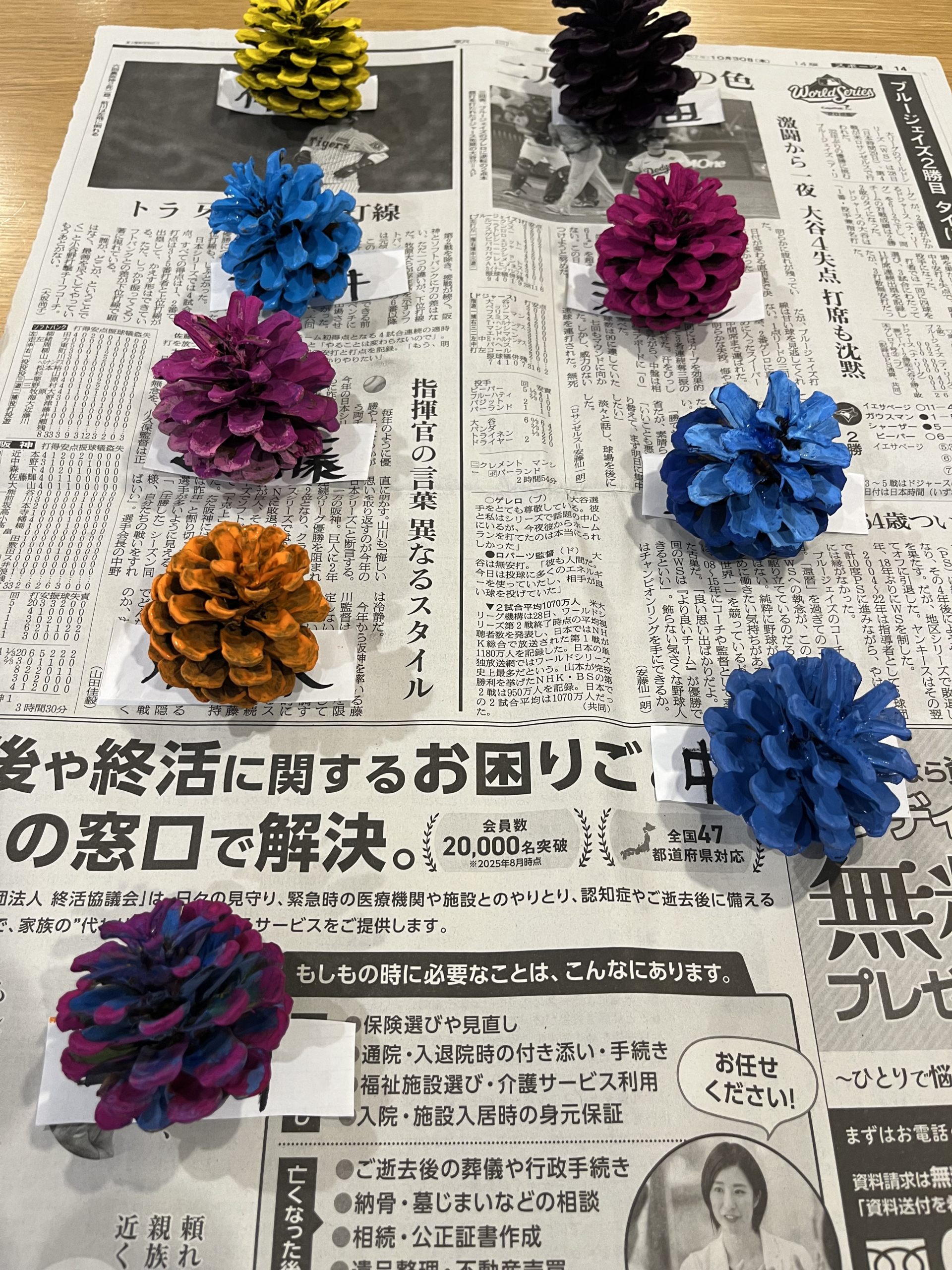 皆さん綺麗に松ぼっくりに色付け完了~~