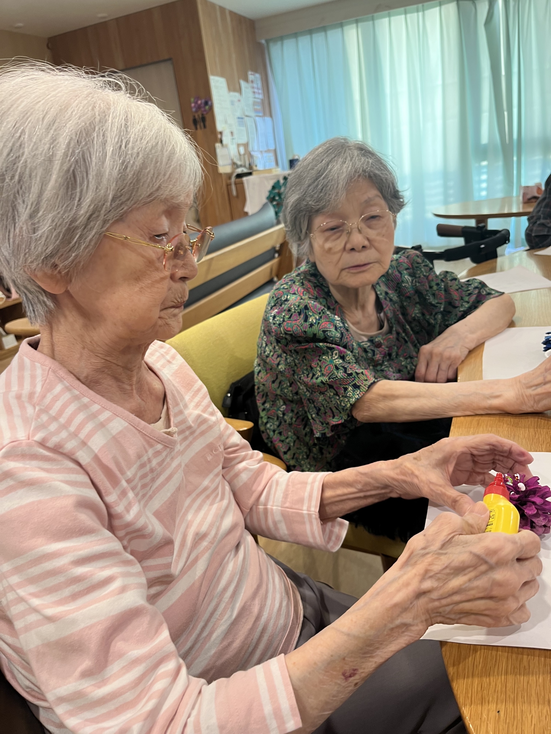 K様もボンドをつけた後は飾り付けに取り掛かります!