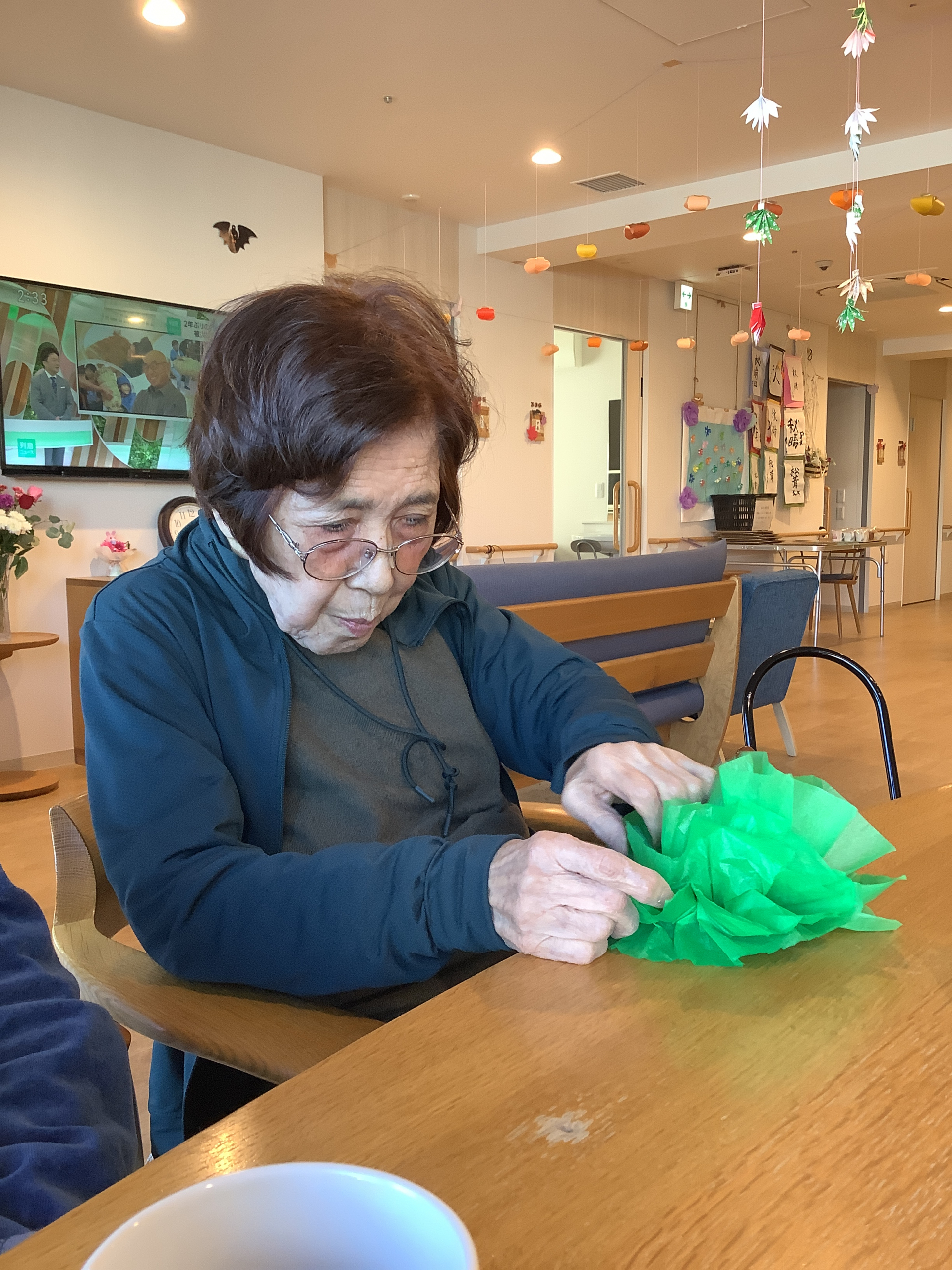 2025.11.28 活動報告 グループホームEASTフロア 壁面作り途中 Tweet シェアする 今日はグループホームの壁に貼る壁面作りの途中経過の様子です クリスマスツリーの枝の部分になる部分をペーパーフラワーで作成中です 小日向GH 稲川 前の記事 2025.11.28 活動報告 ☆WAST☆ いざ勝負です! 次の記事 2025.11.27 活動報告 ☆WAST☆ 季節を楽しむ会【クリスマスカード編④】 一覧へ戻る