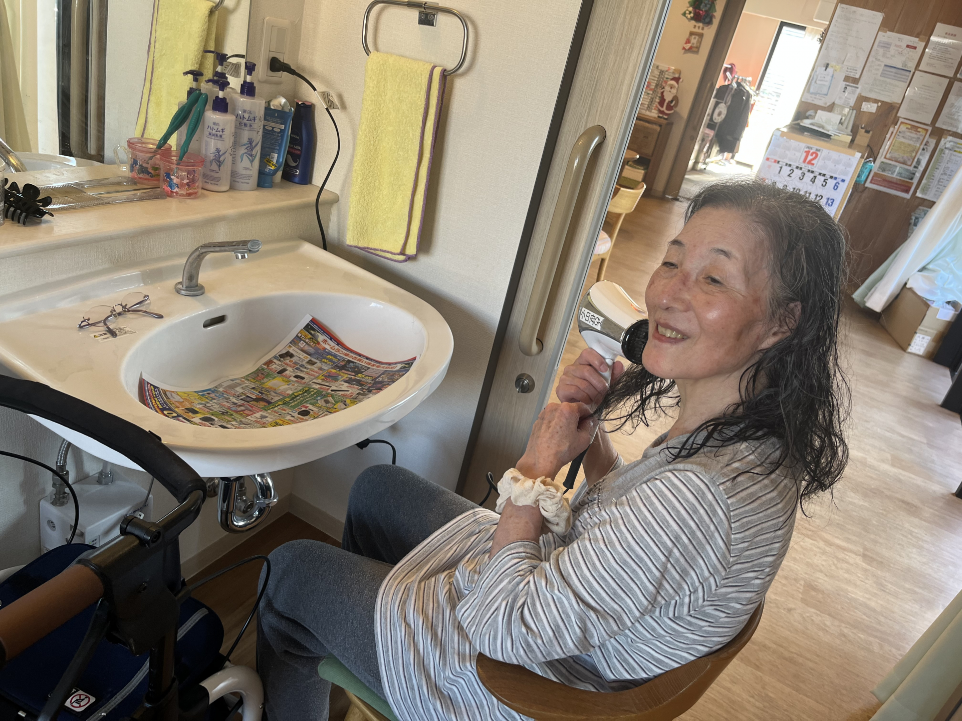 入浴は居室でご自身でドライヤーで髪を乾かすN様。。