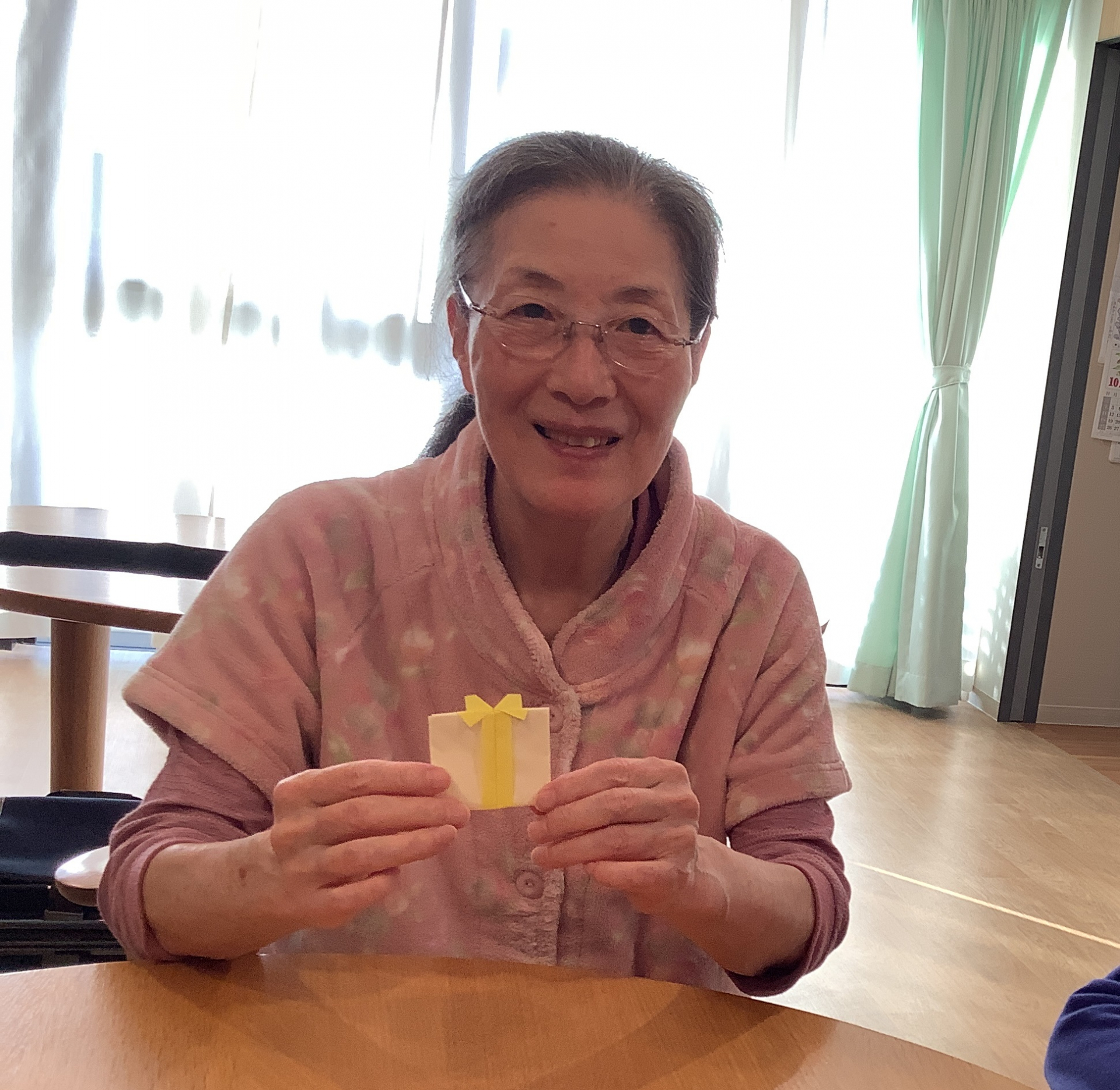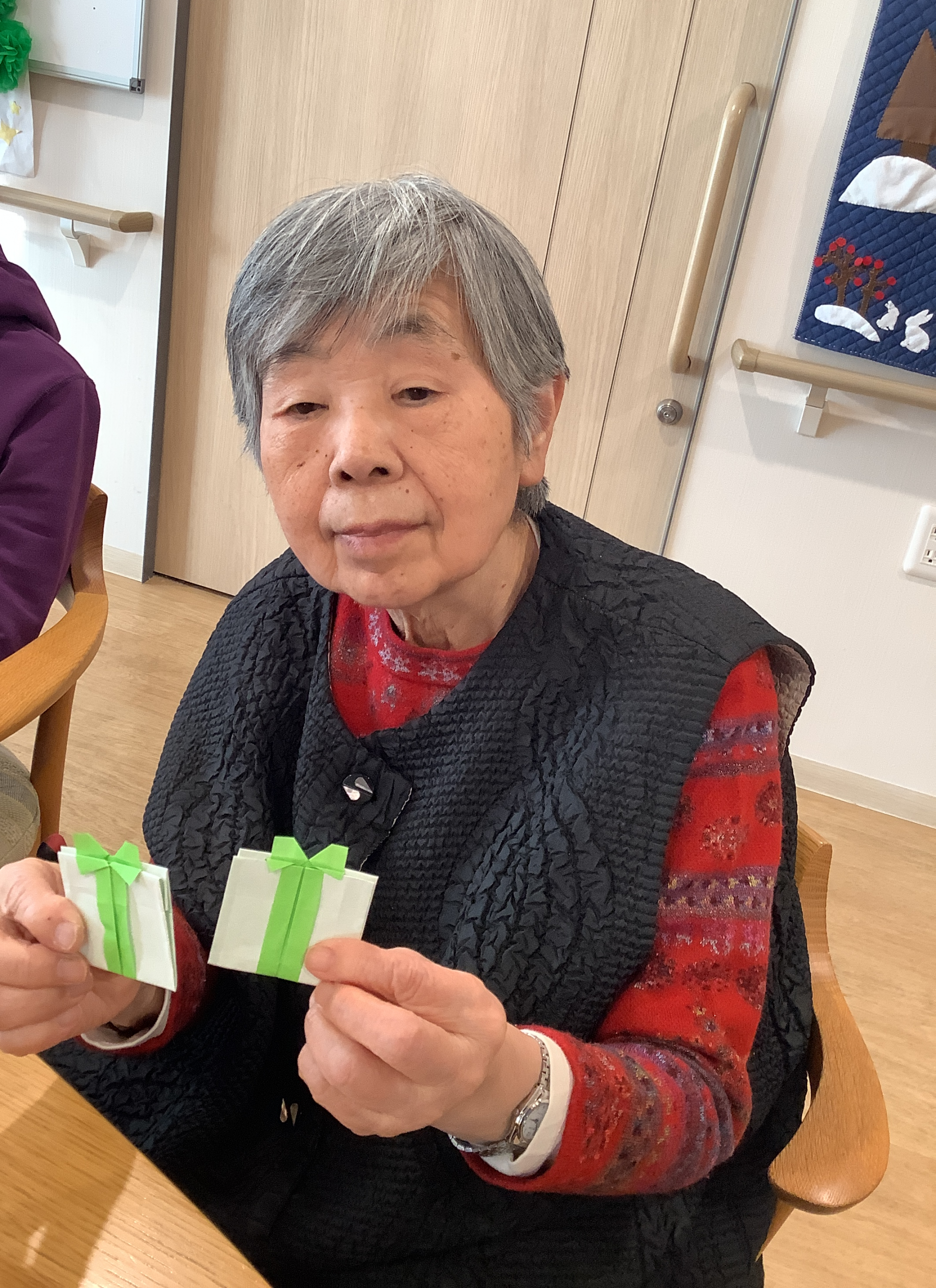 本日はレクリエーションの時間に、みんなで”プレゼント”のおりがみを作りました!