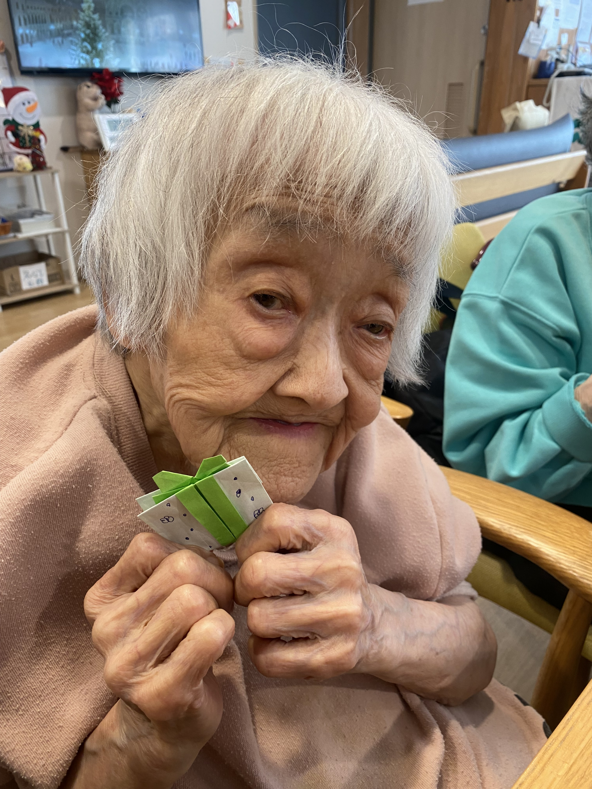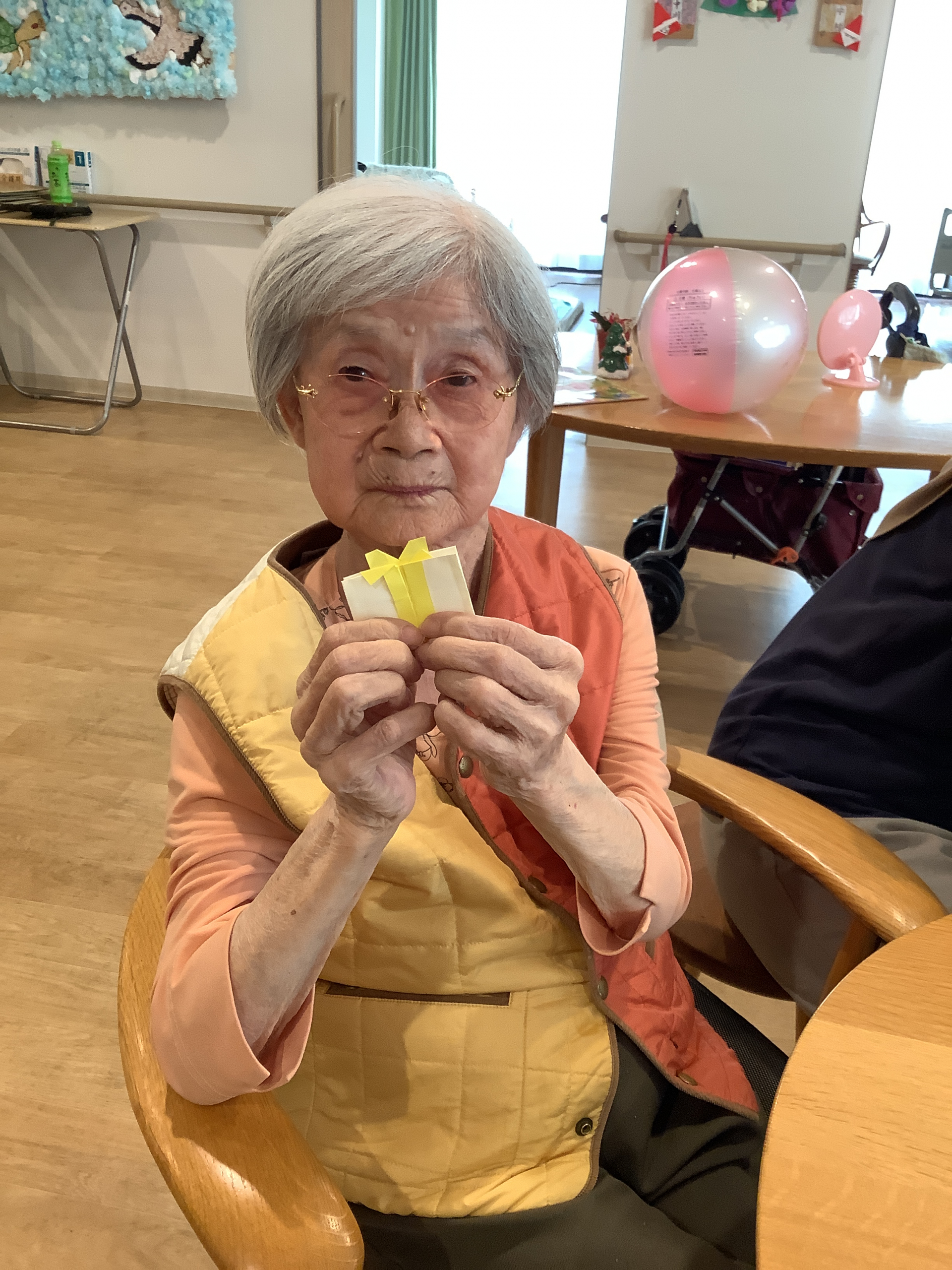 本日はレクリエーションの時間に、みんなで”プレゼント”のおりがみを作りました!