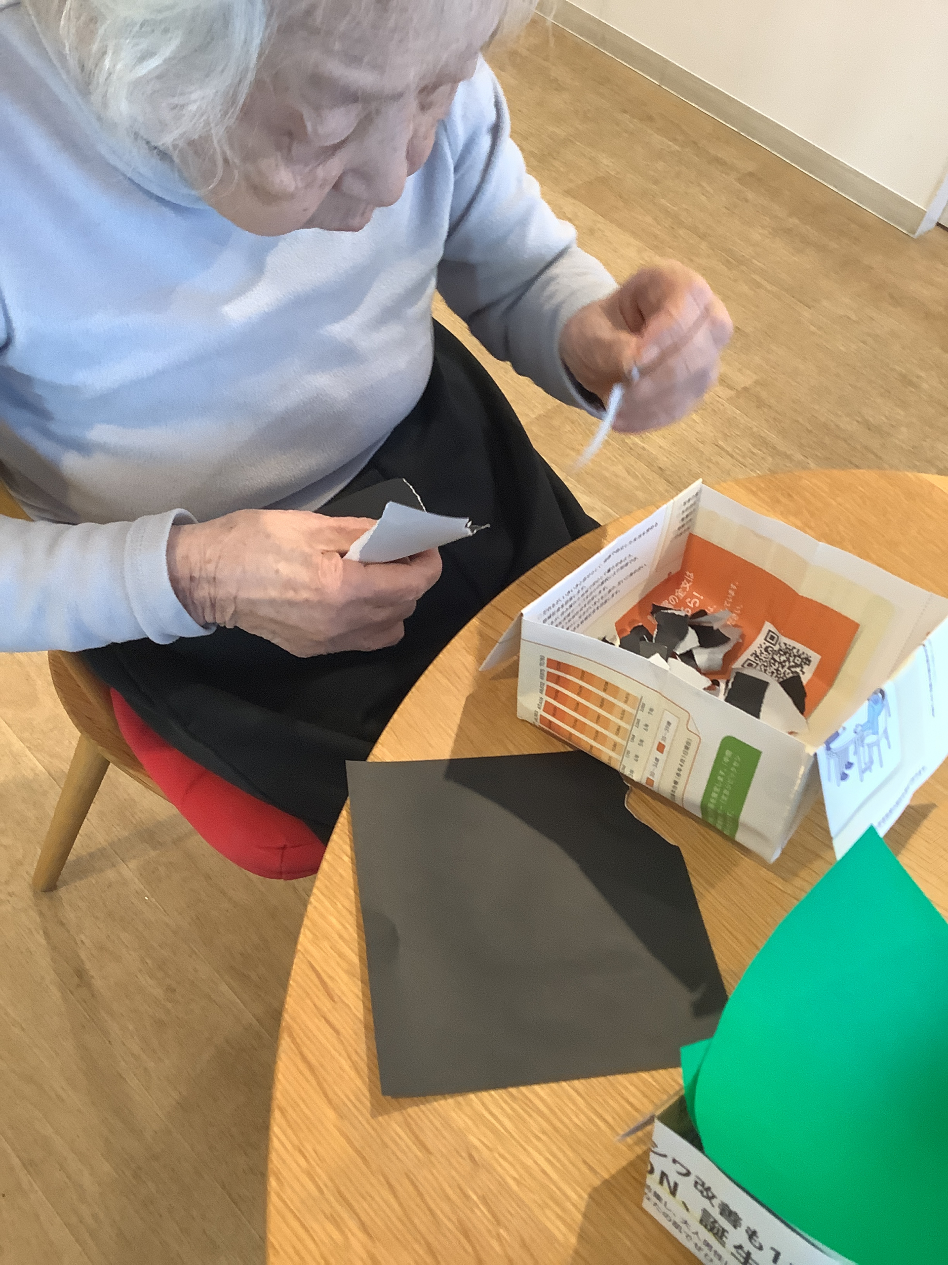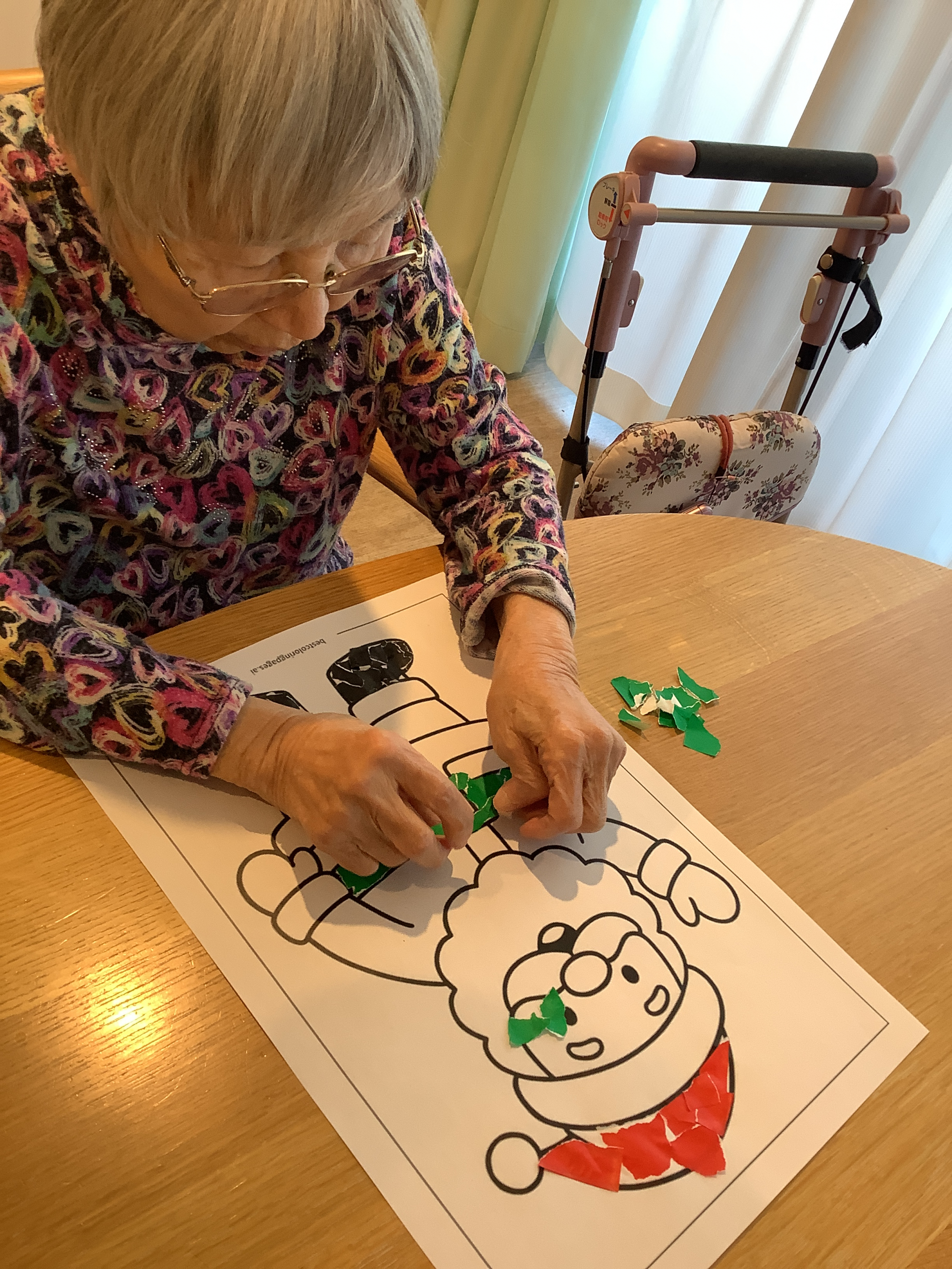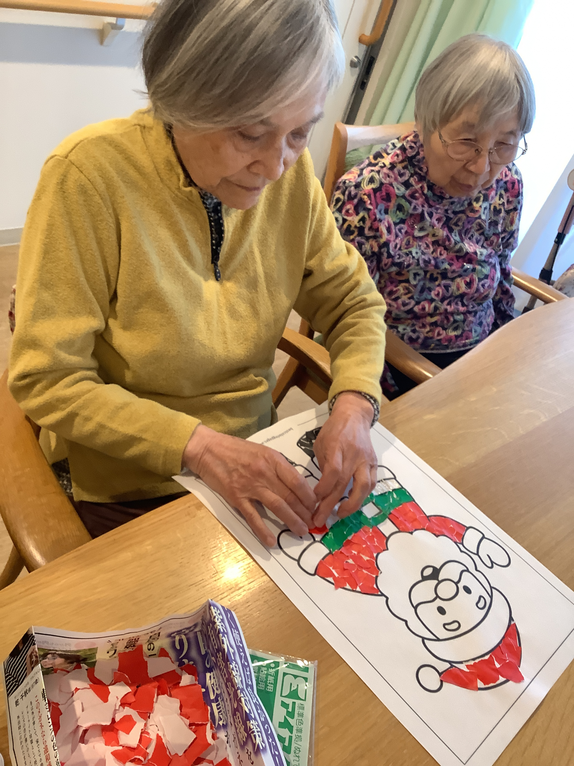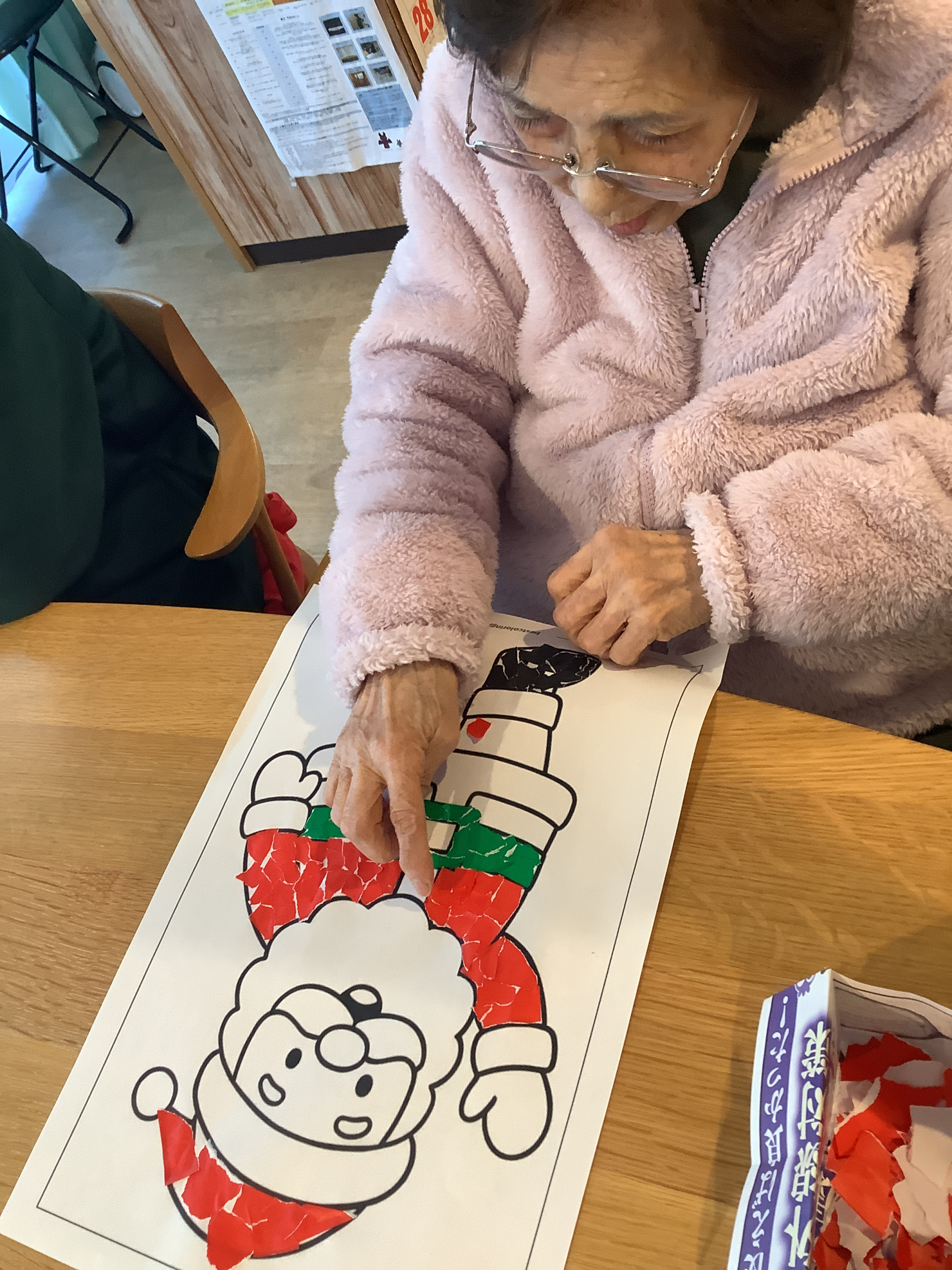 本日,折り紙を小さくちぎって,サンタクロース絵貼り付けました!